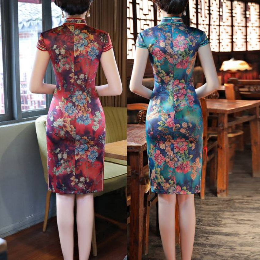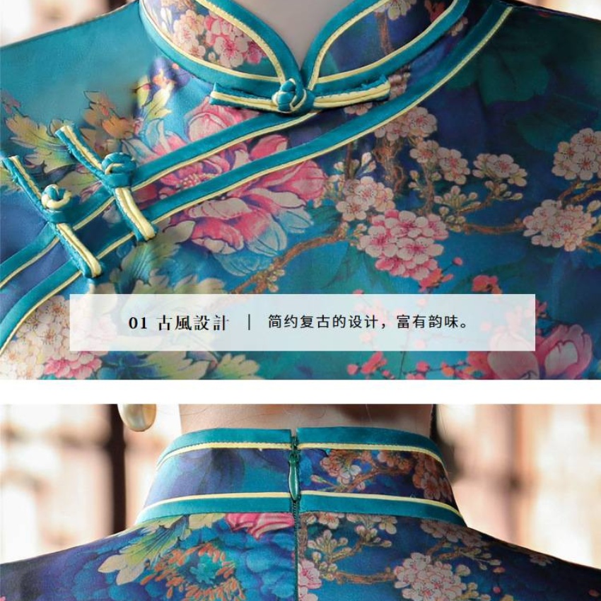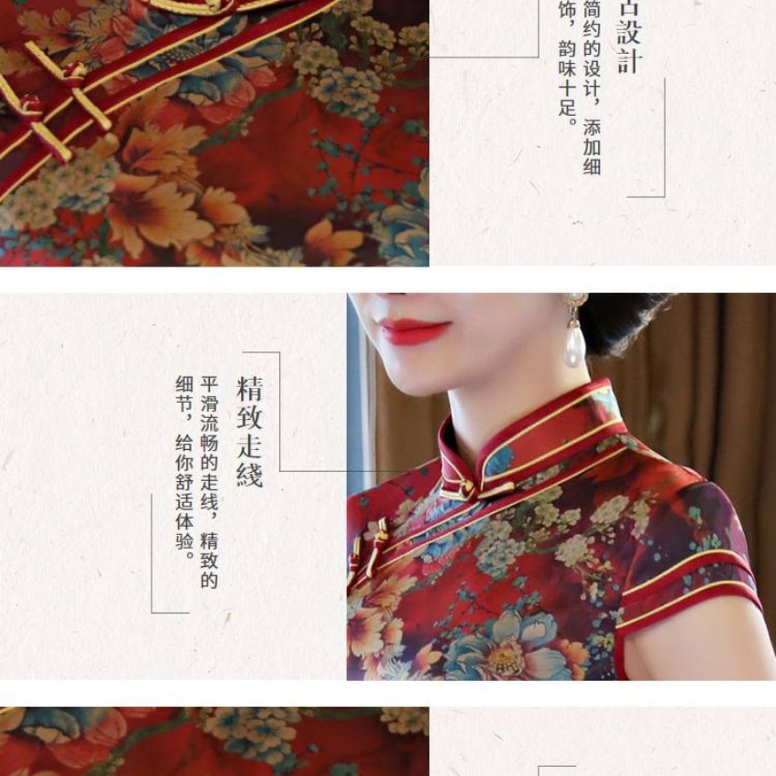 2018年新款旗袍双层中长裙中国风香云纱气质旗袍连衣裙