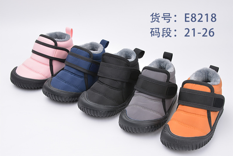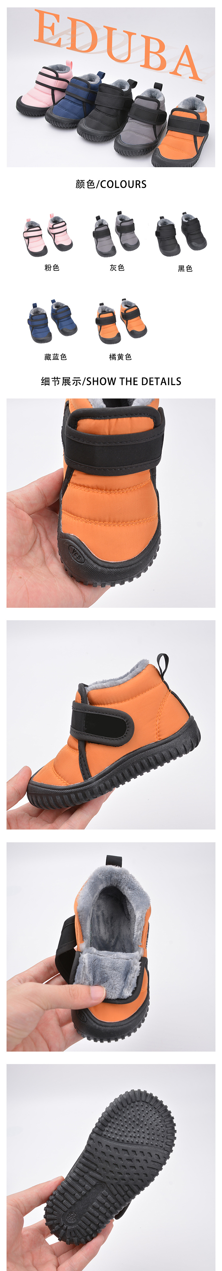 冬季外贸新品加绒儿童布鞋休闲软底保暖宝宝棉靴魔术贴男女童棉鞋
