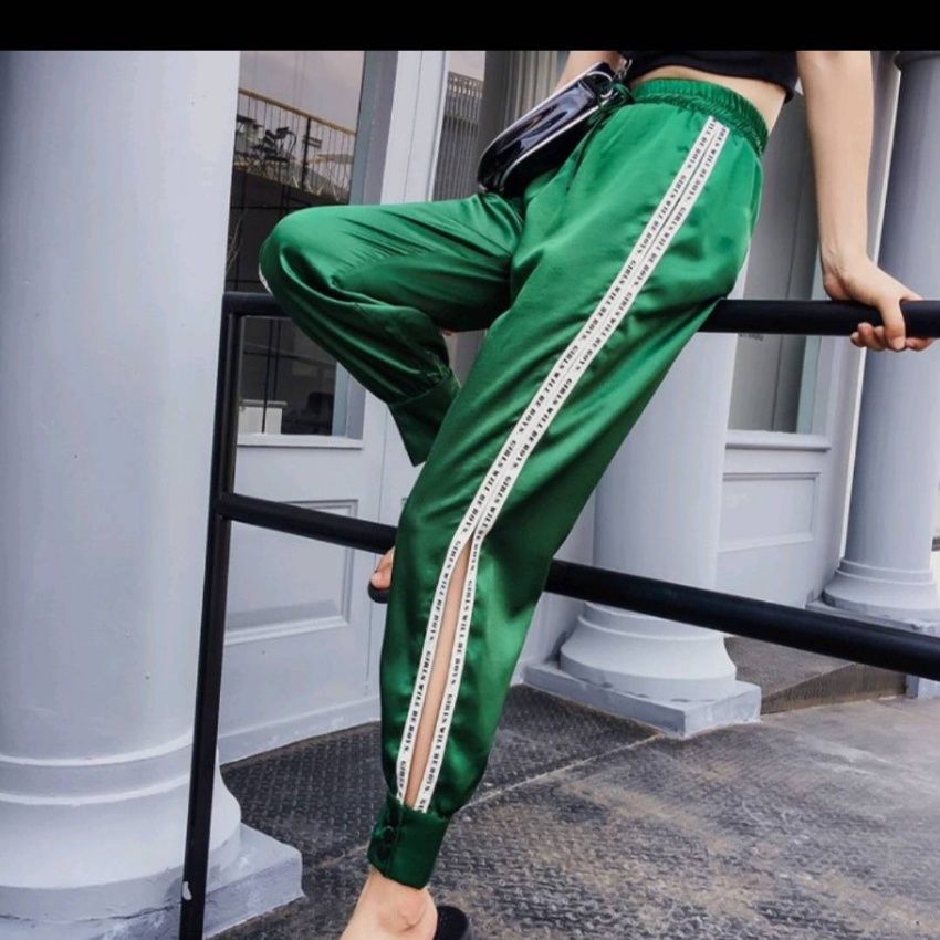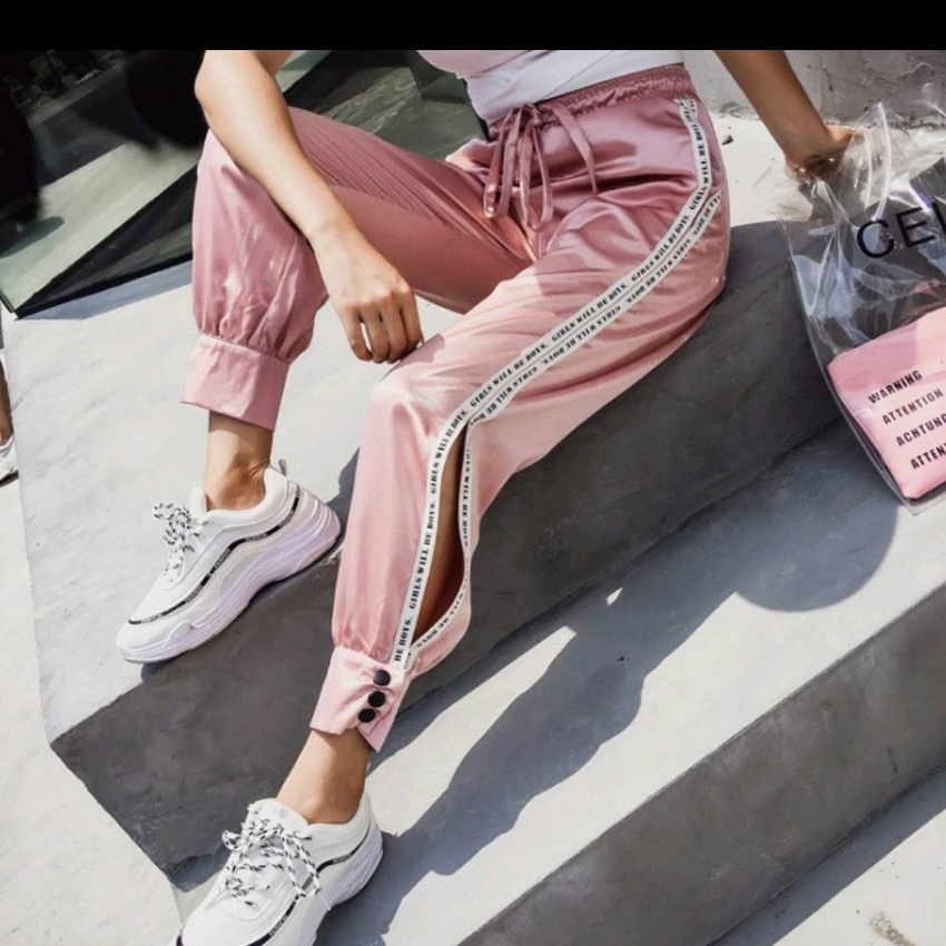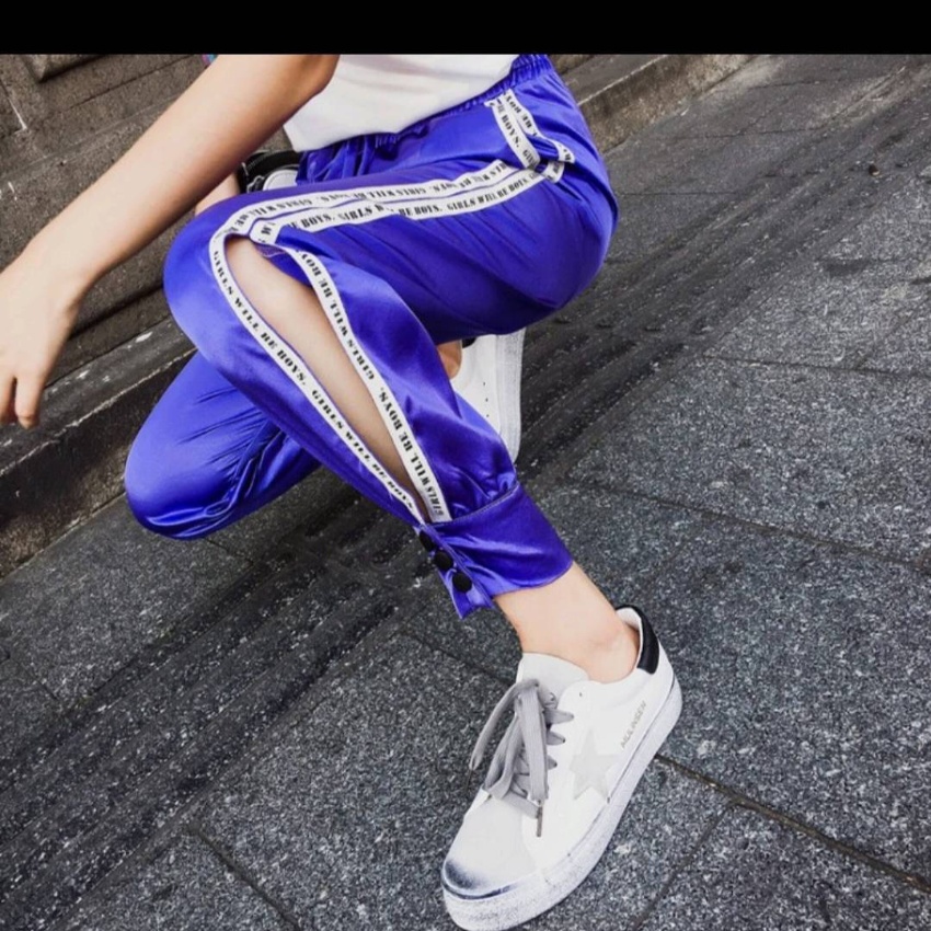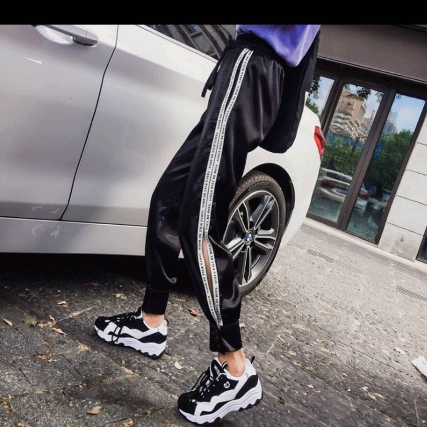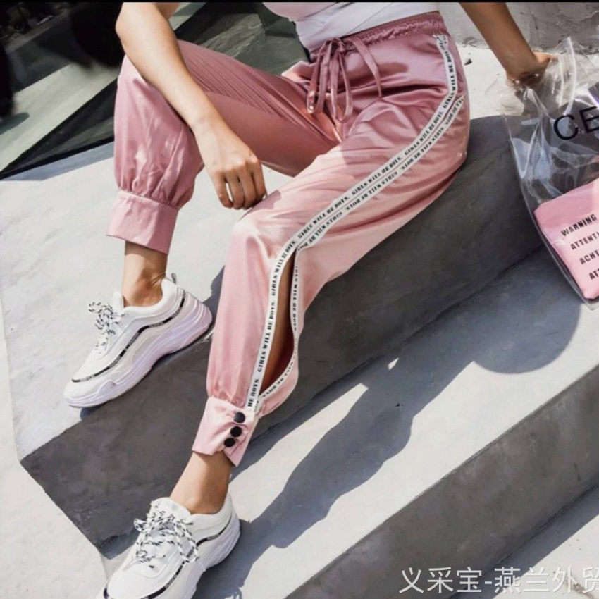 紫色运动裤女嘻哈韩版潮学生宽松原宿bf港味ins超火的裤子