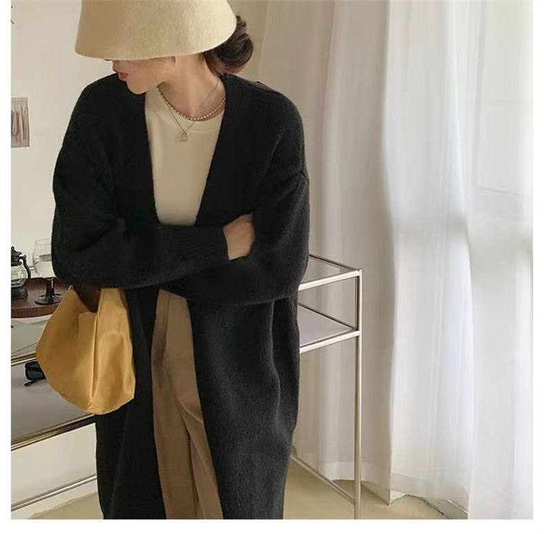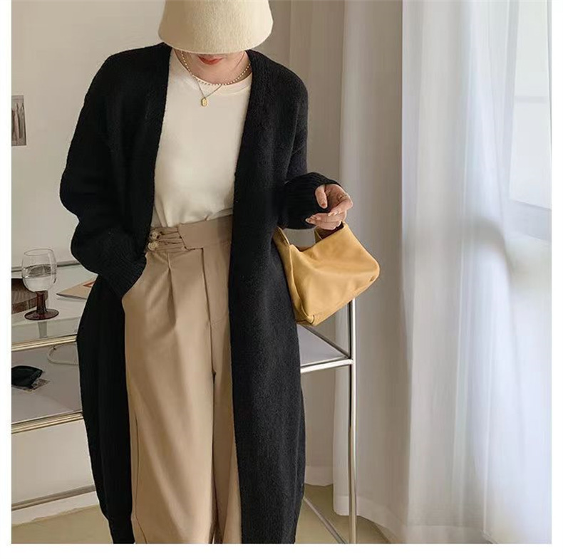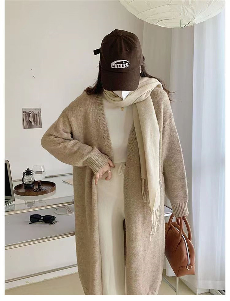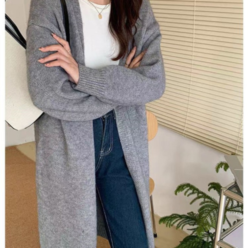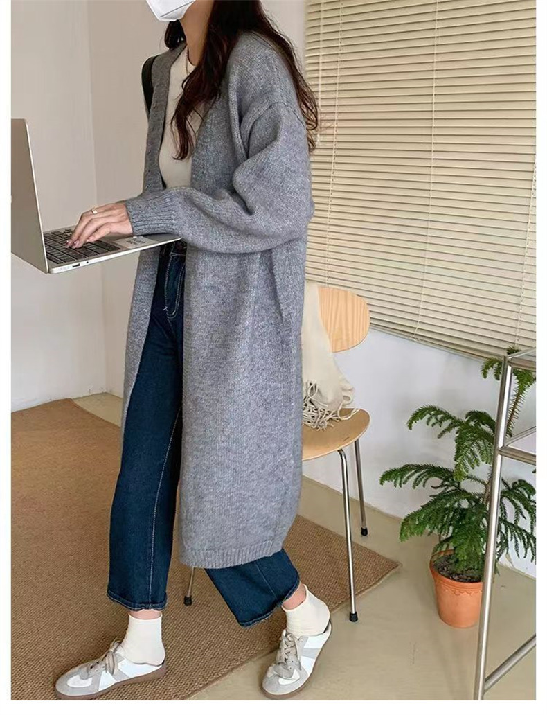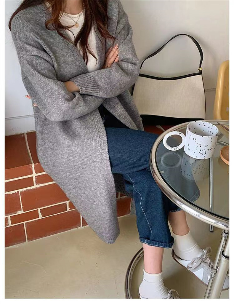 针织开衫女春秋装简约新款慵懒风宽松中长款过膝毛衣外套上衣
