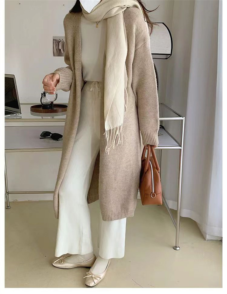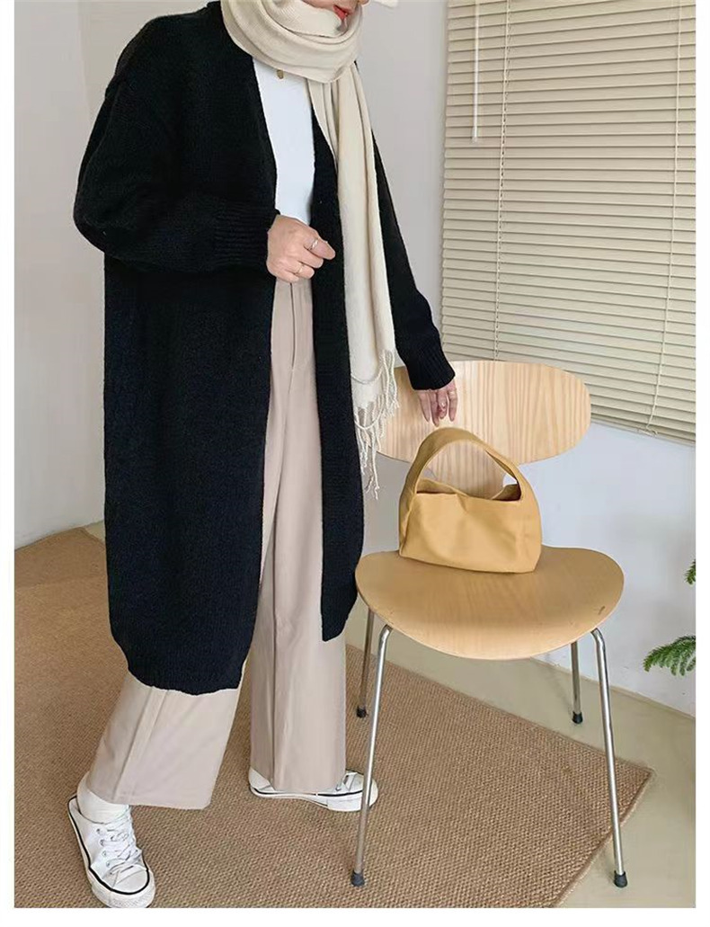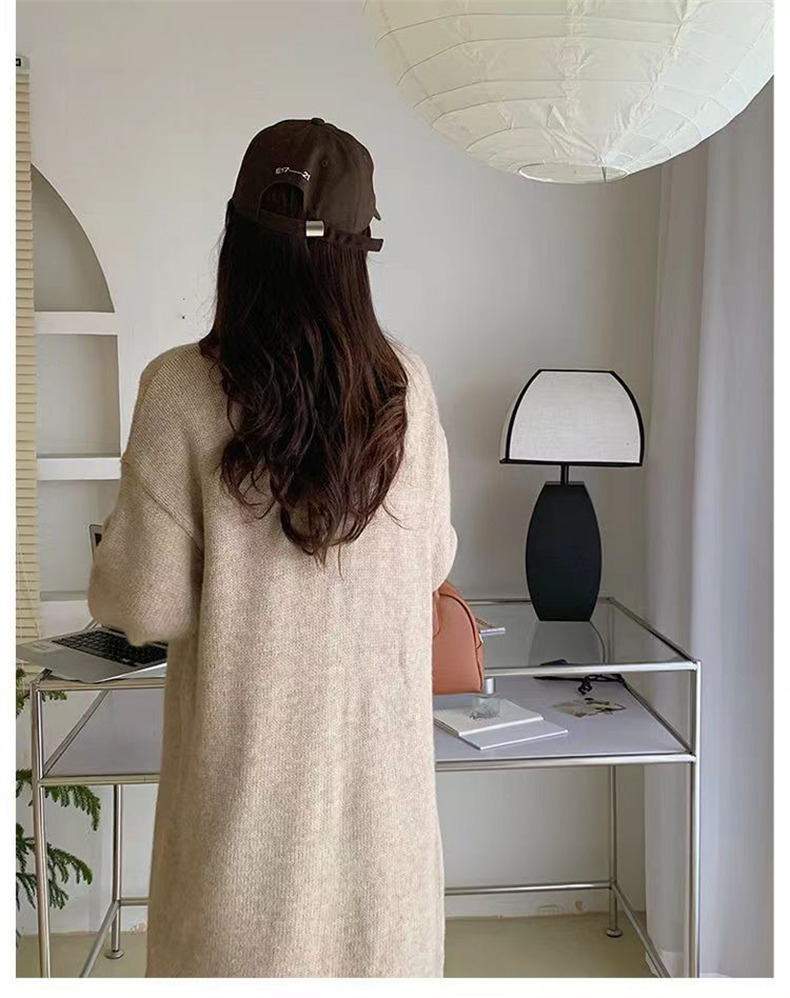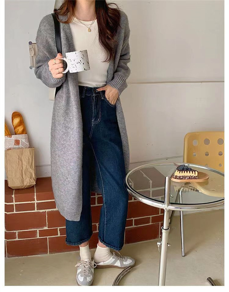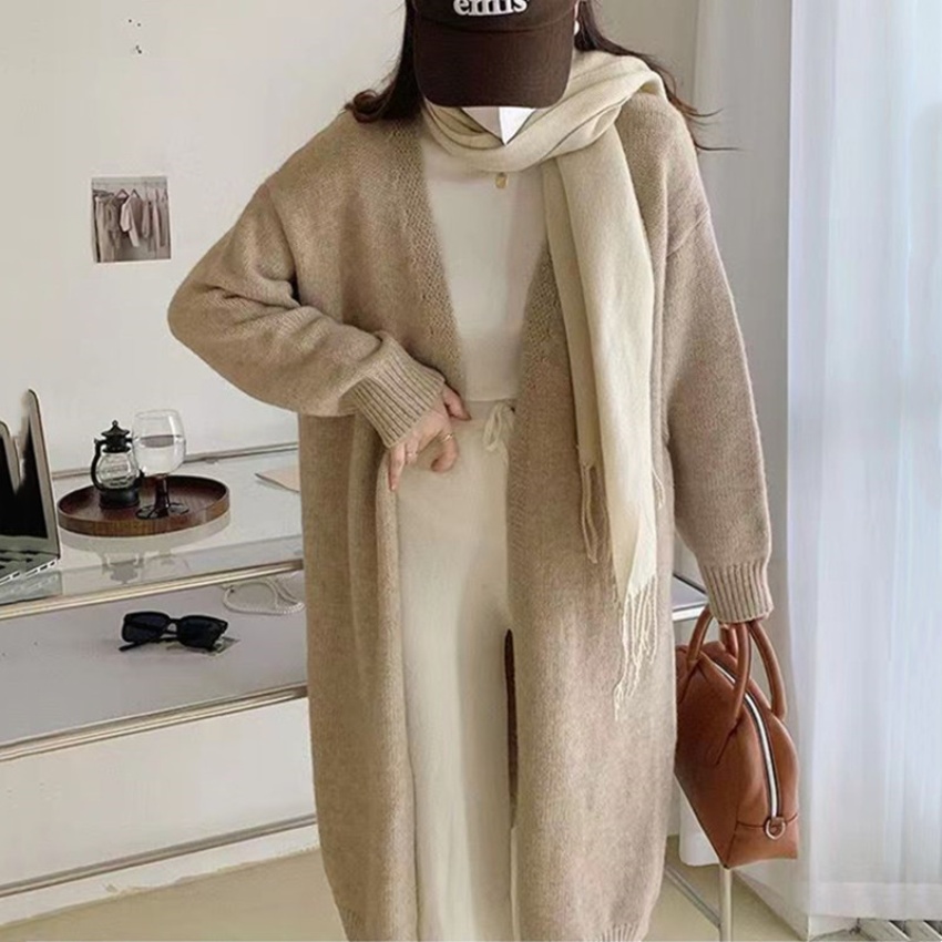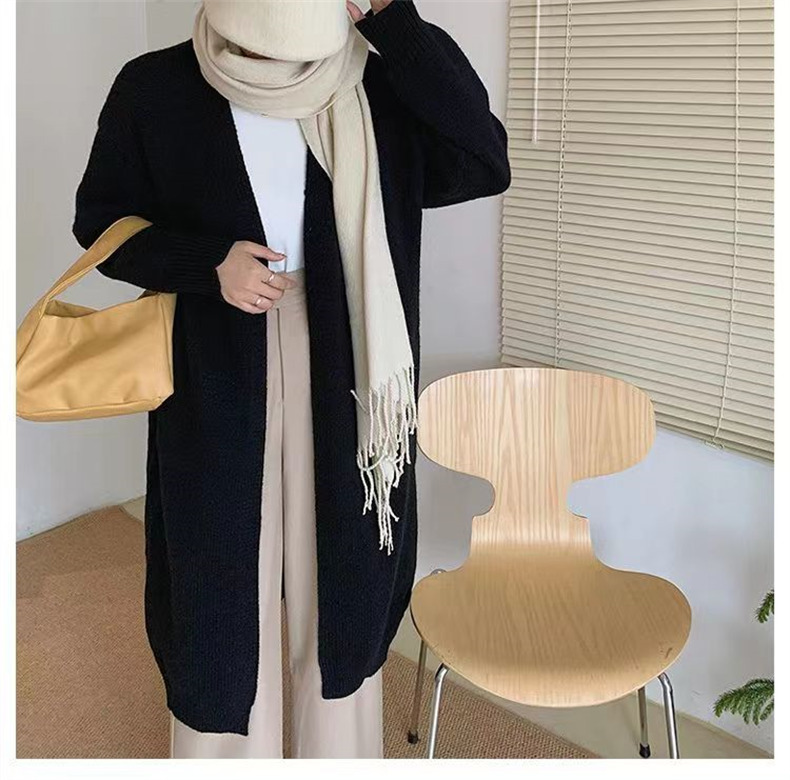 针织开衫女春秋装简约新款慵懒风宽松中长款过膝毛衣外套上衣
