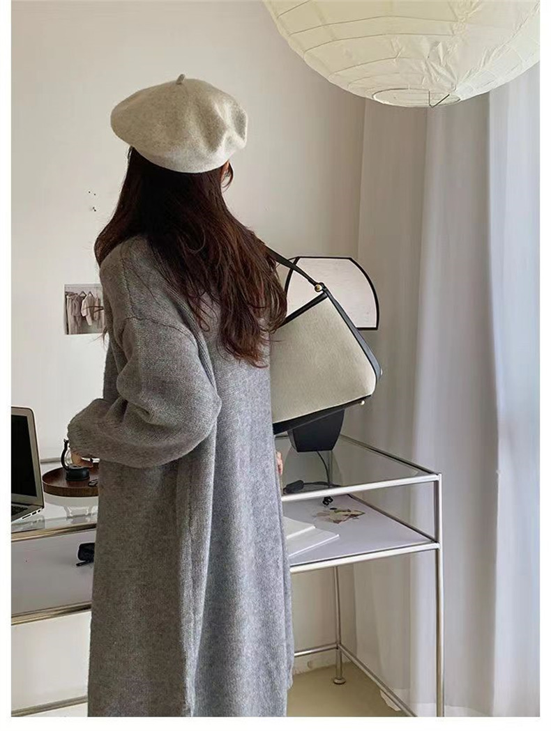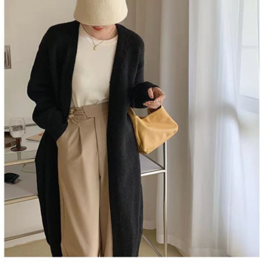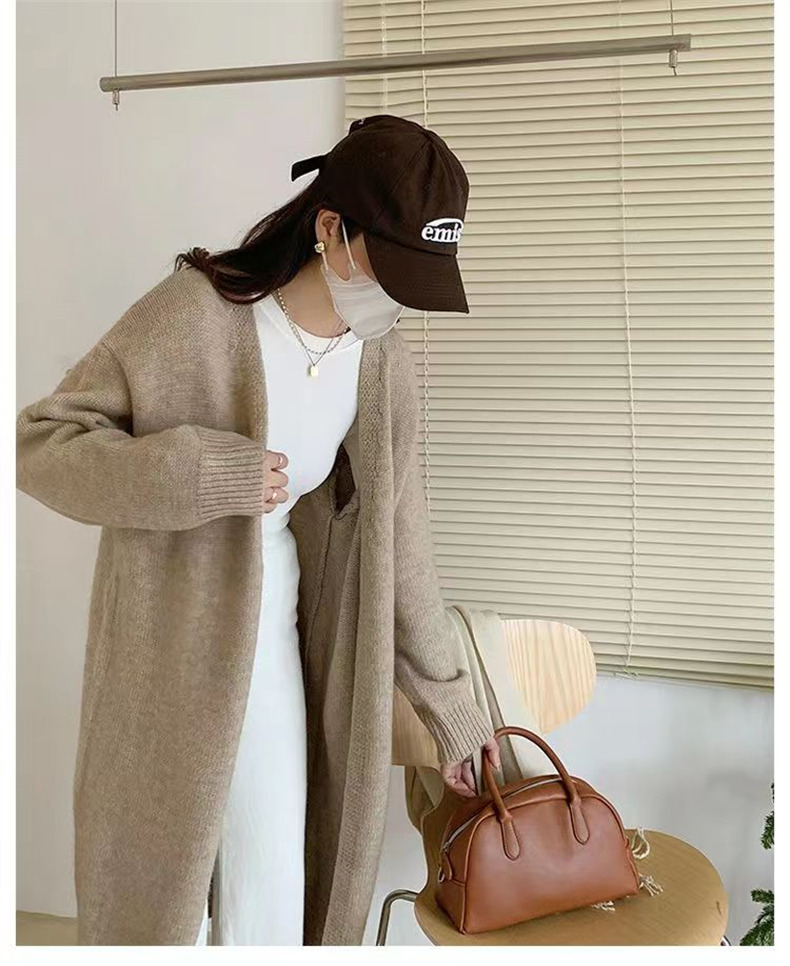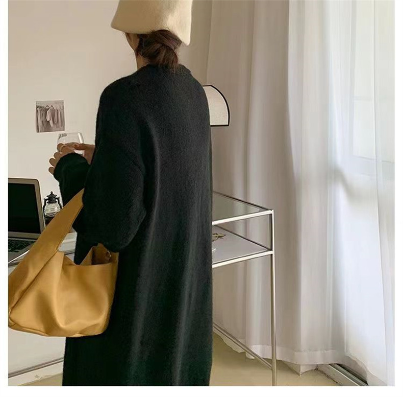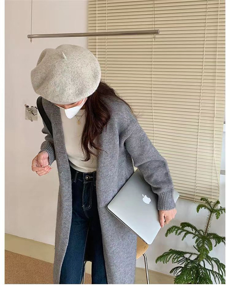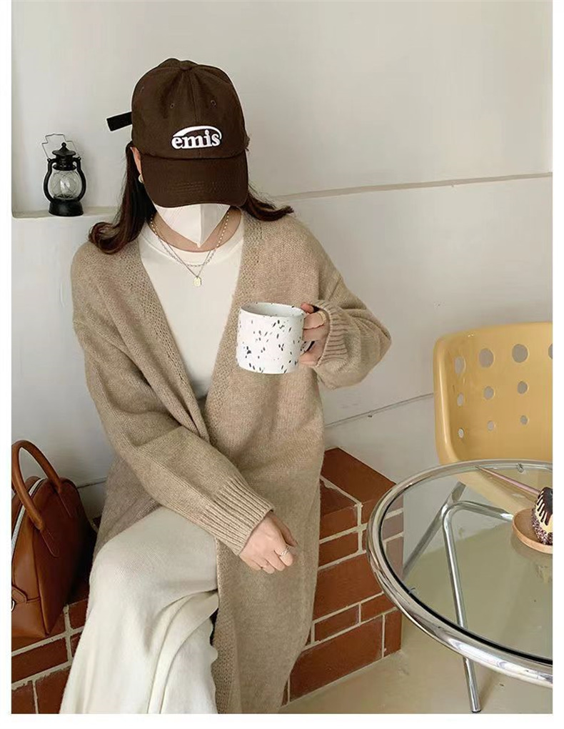 针织开衫女春秋装简约新款慵懒风宽松中长款过膝毛衣外套上衣
