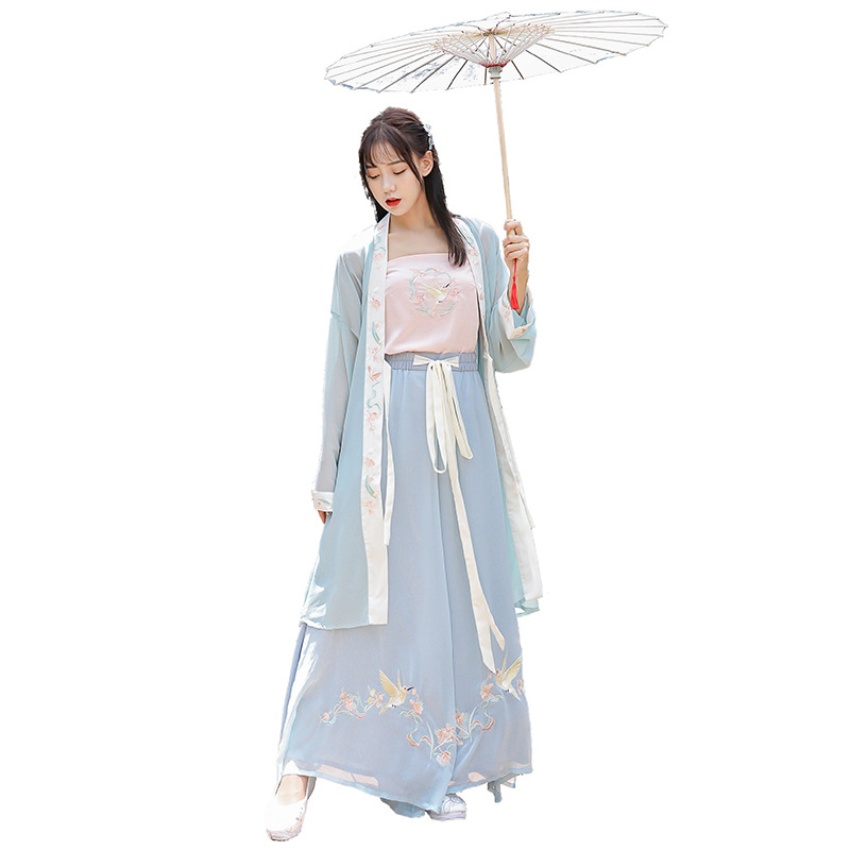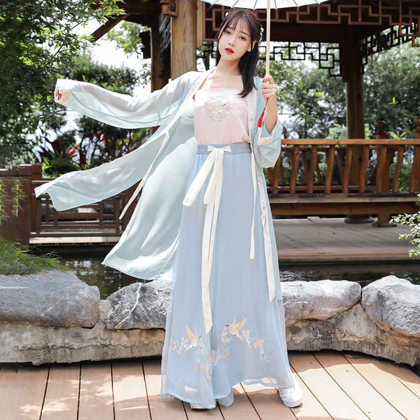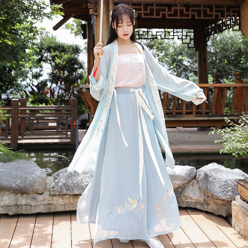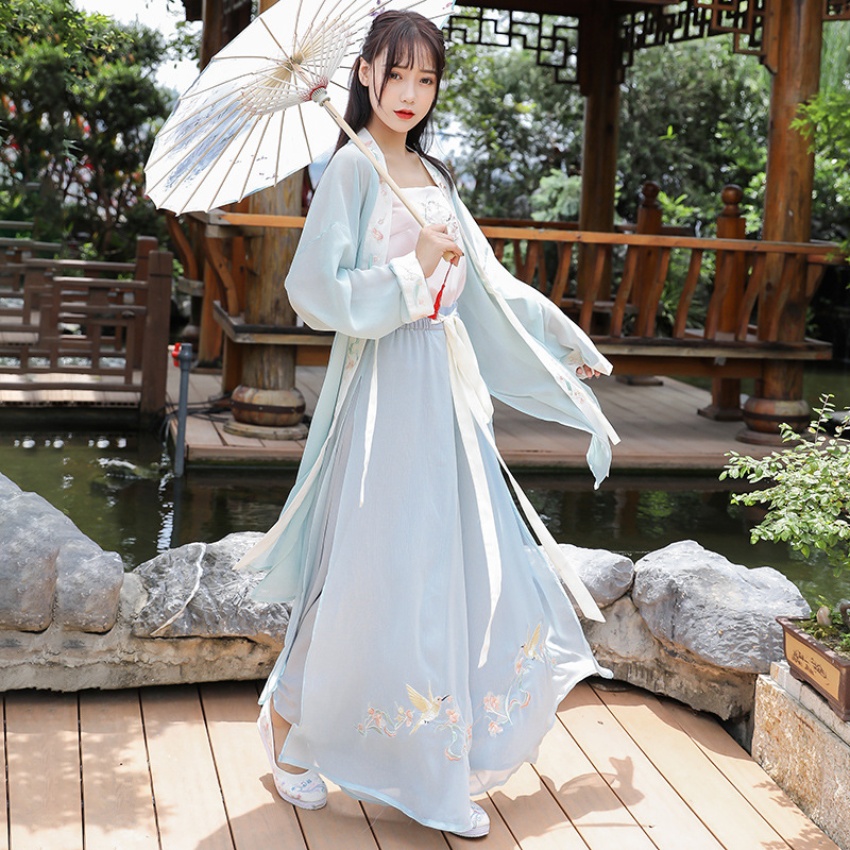 原创正品汉服复古中国风女装仙鹤汉元素少女日常两穿舞蹈表演套装