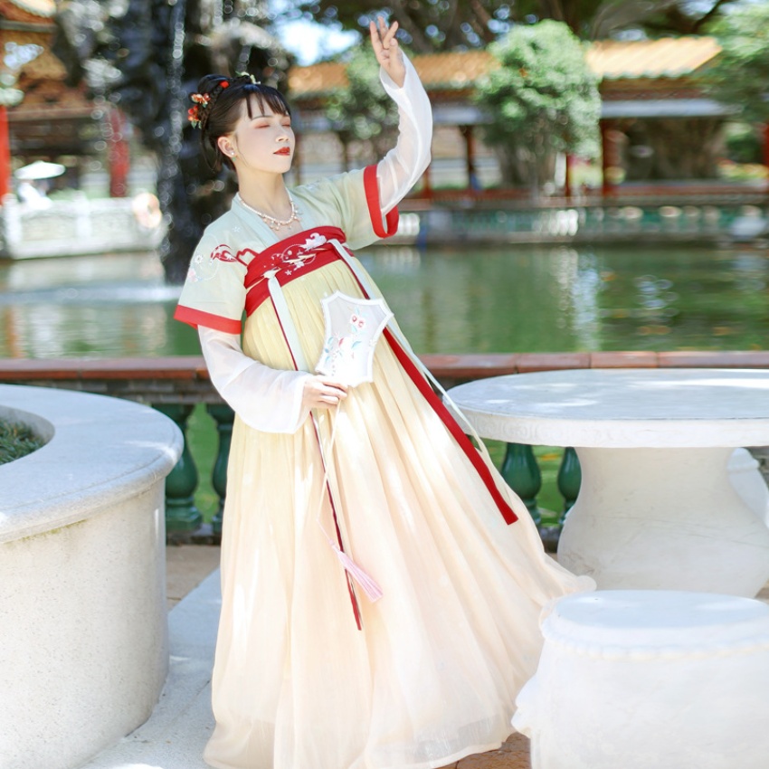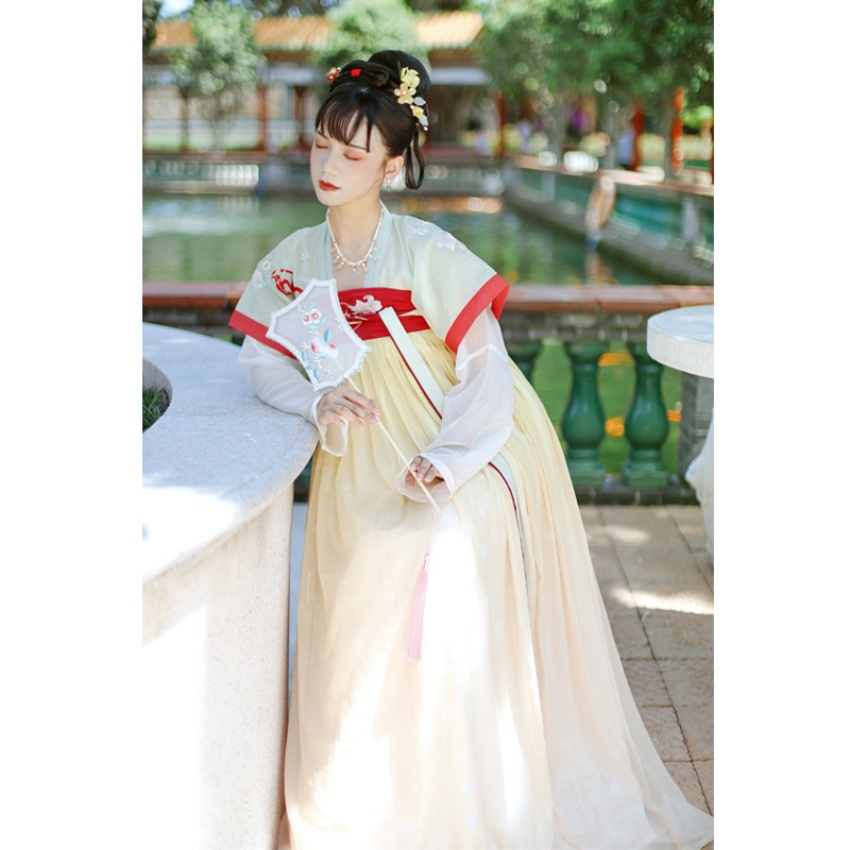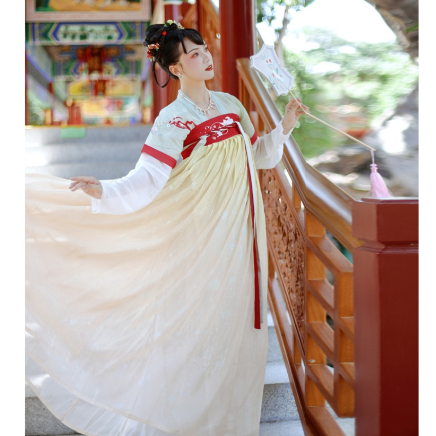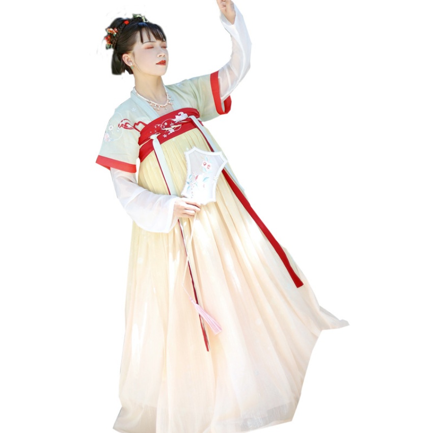 原创 刺绣花齐胸对襟汉服襦裙半臂三件套古风女装4.5米摆仙气