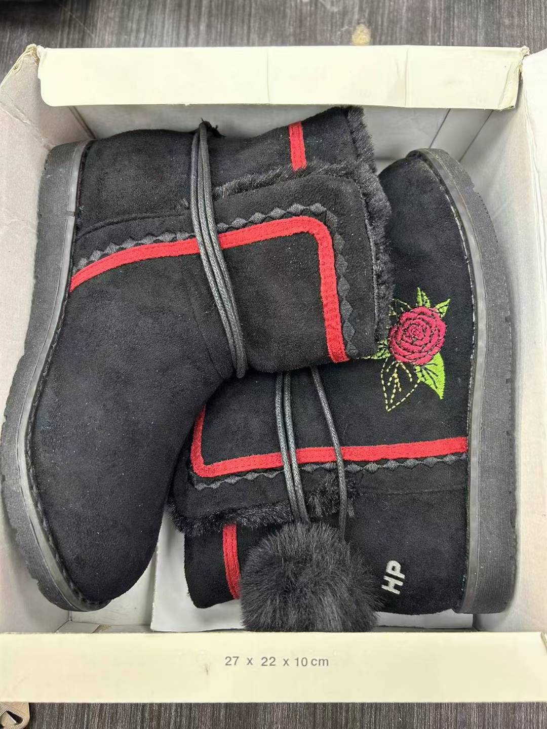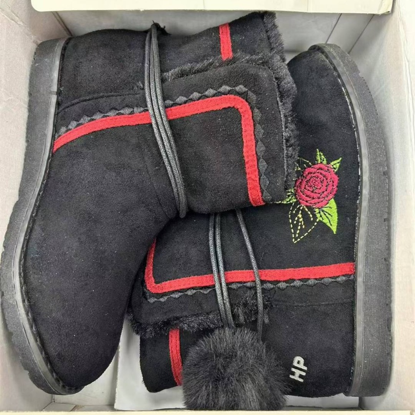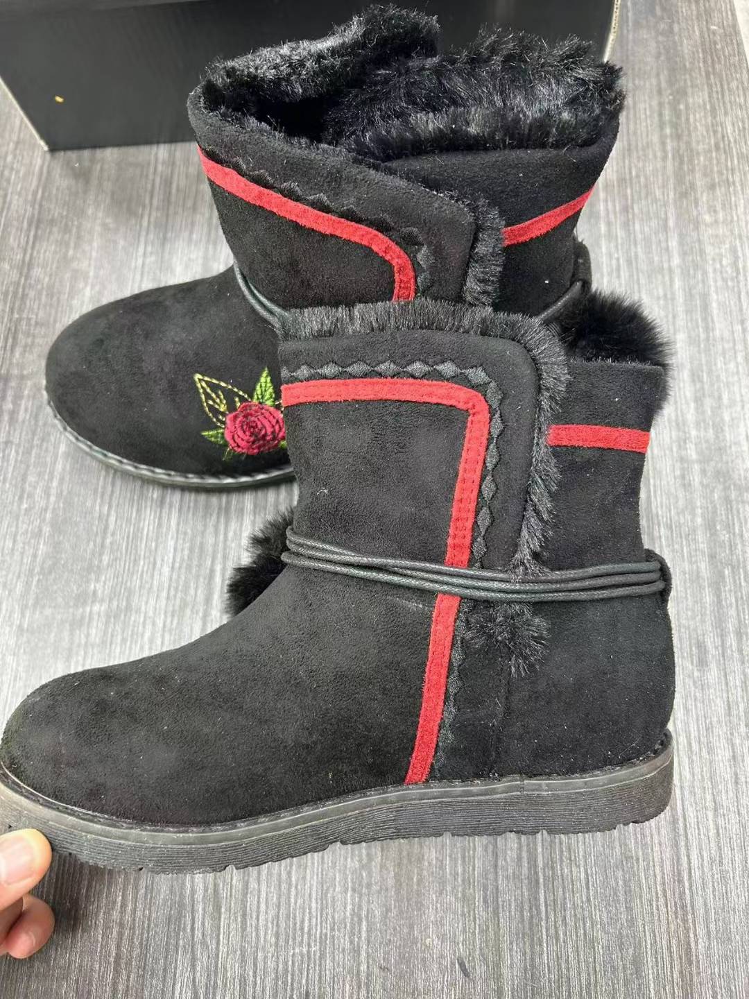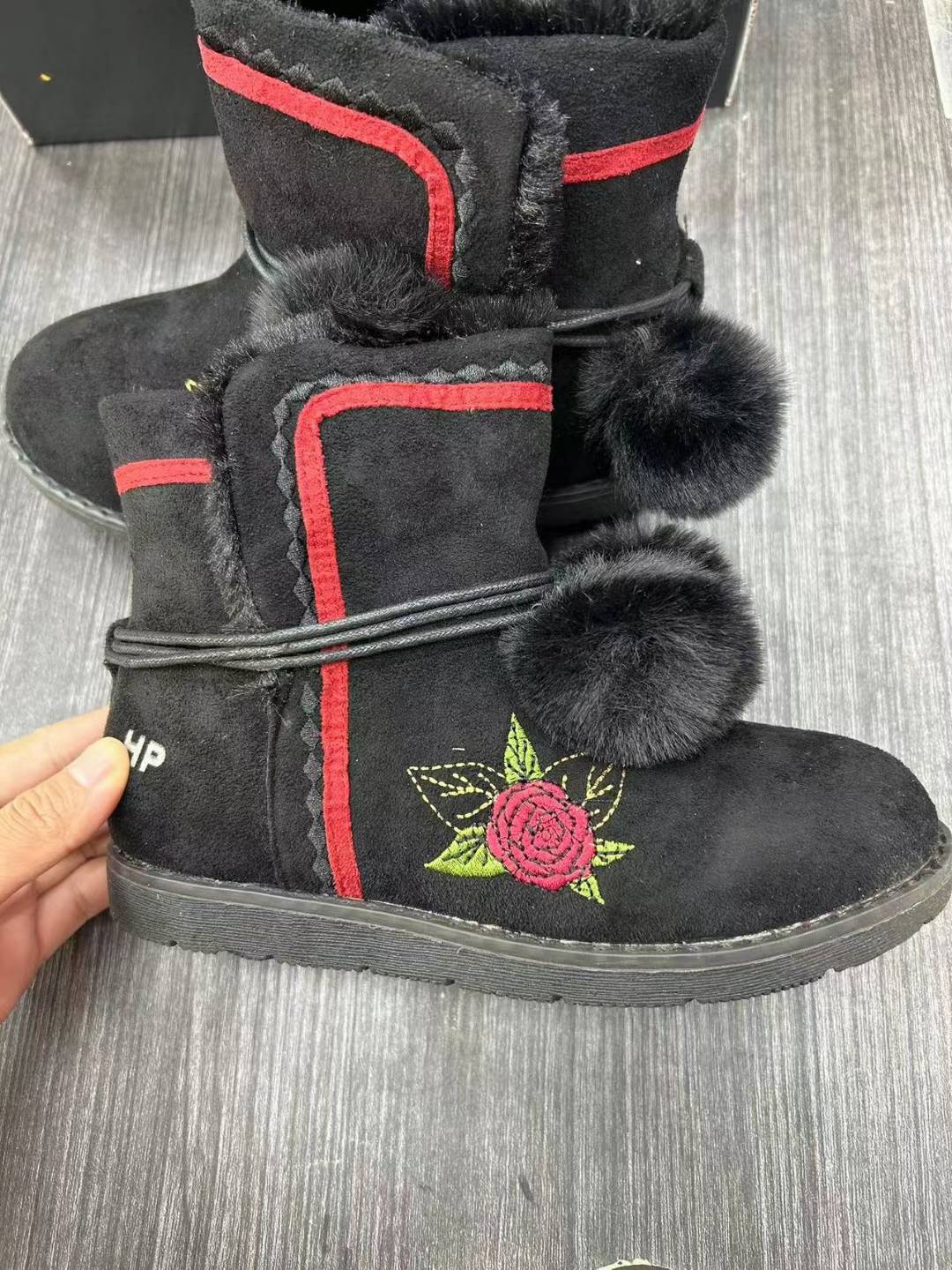 冬季儿童短靴加绒加厚毛球棉靴保暖中大童女孩,单款单色,数量:300,价格:9元
