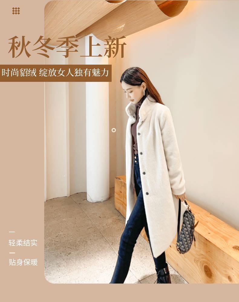2022高端大气女水貂绒大衣时尚都市休闲中长款水貂绒