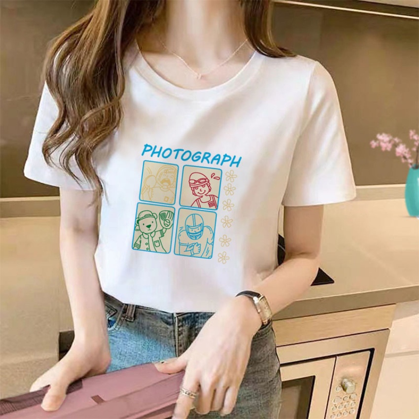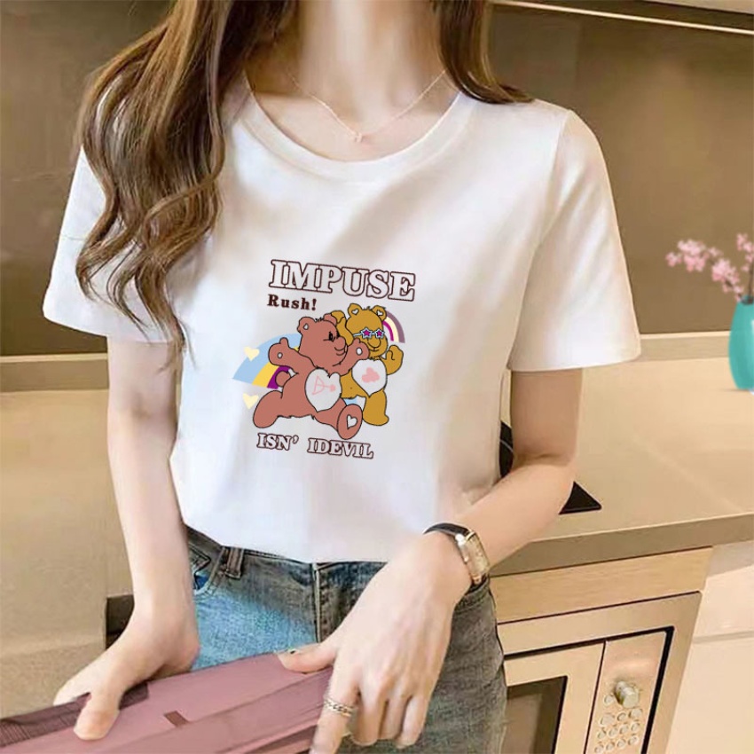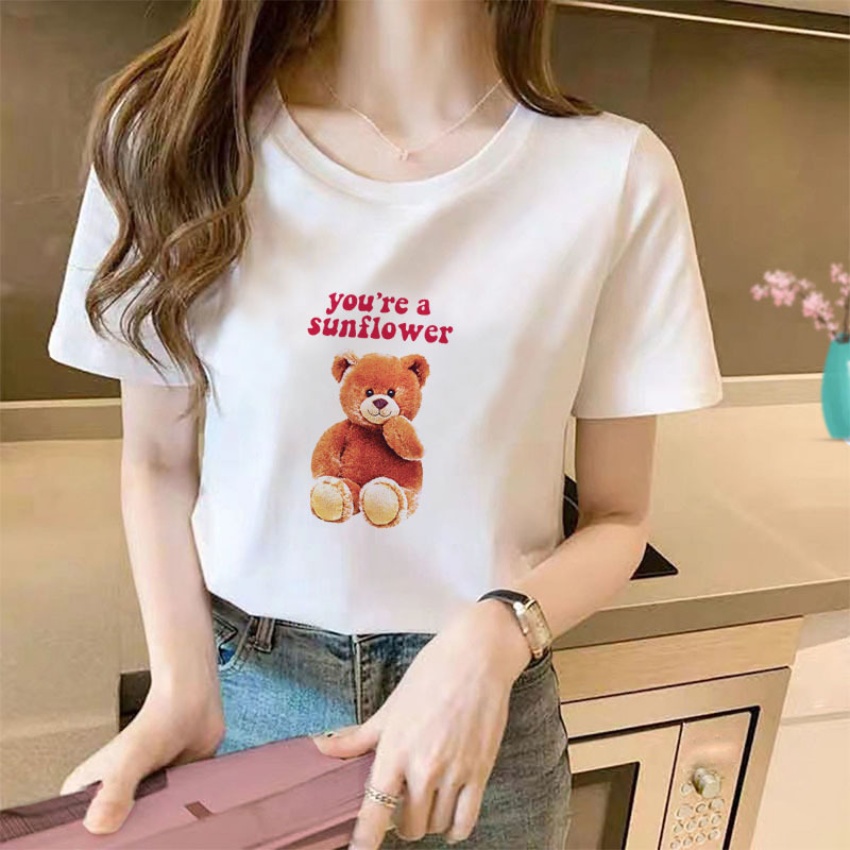 白色短袖t恤女小熊上衣夏季韩版外贸女装半袖打底衫地摊批发