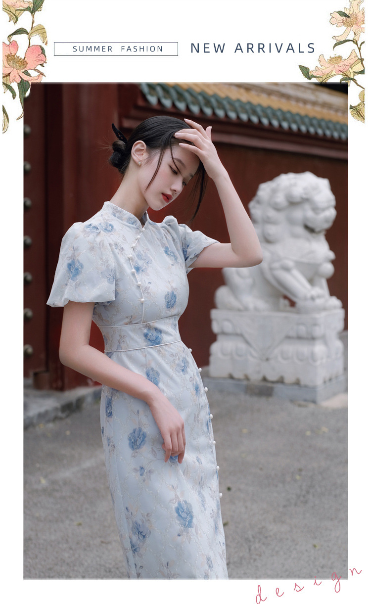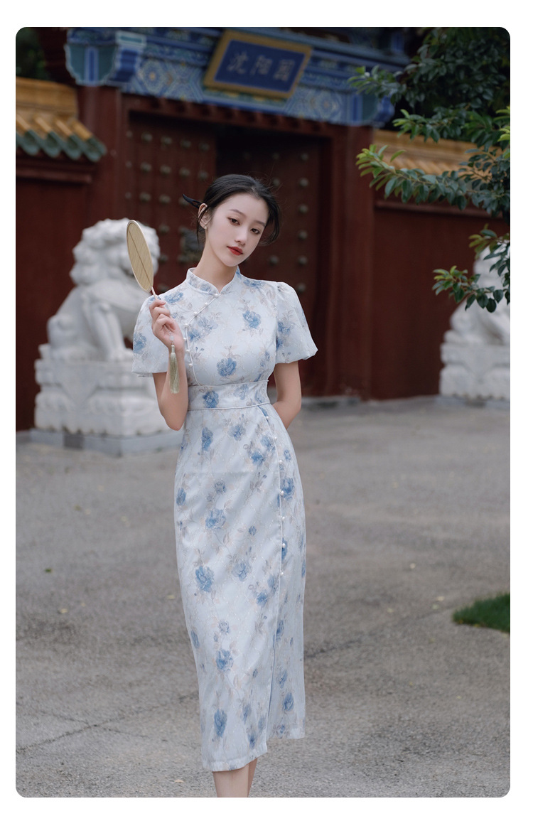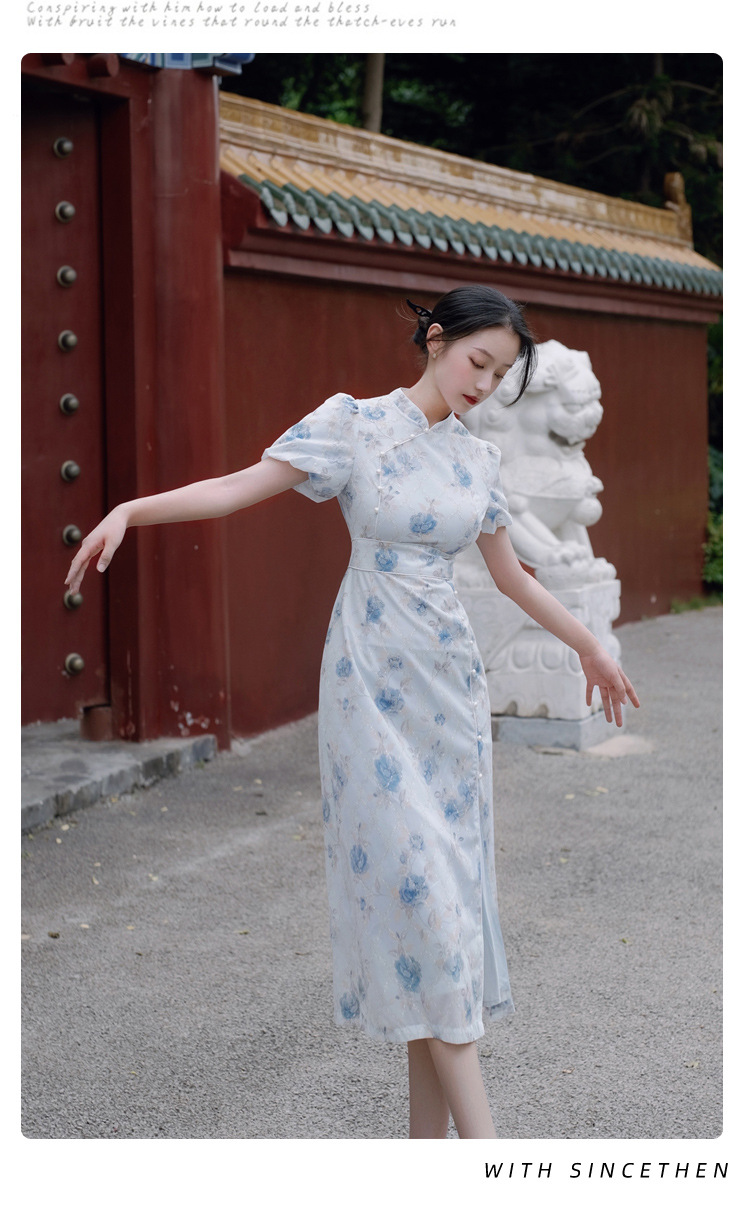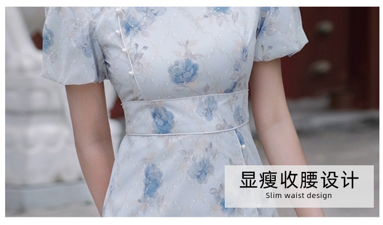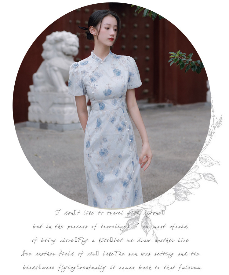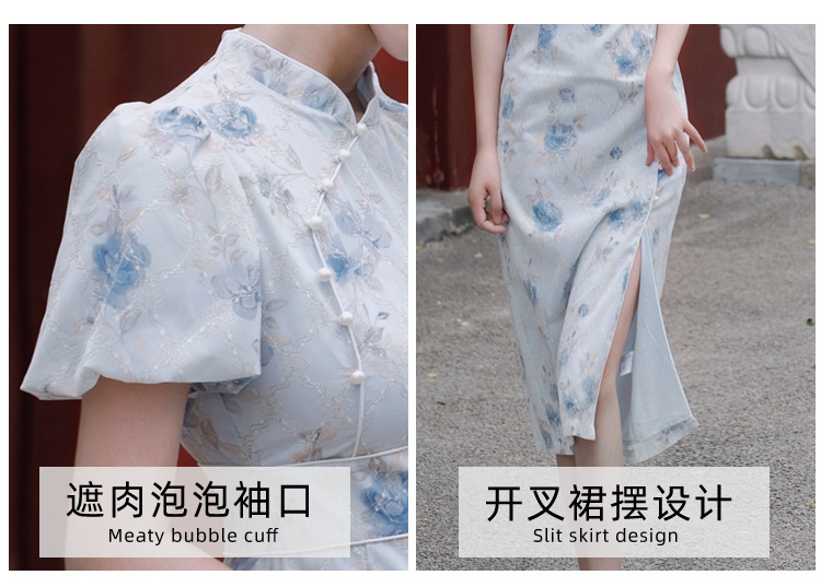 2017秋季新款丝绒绣花旗袍女装 日常复古女式斜襟旗袍连衣裙