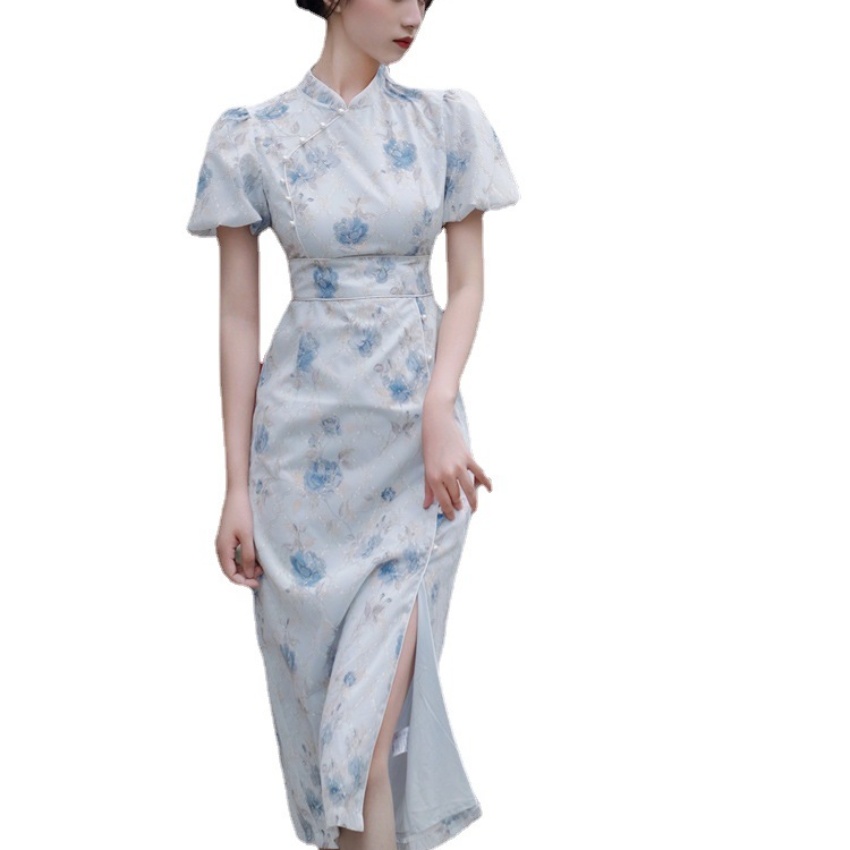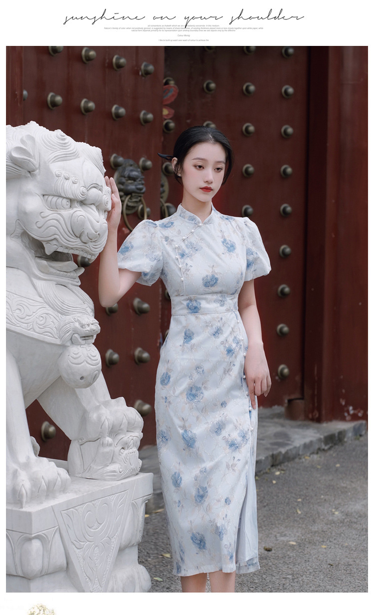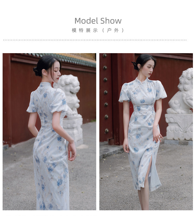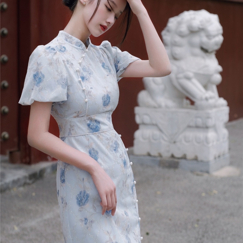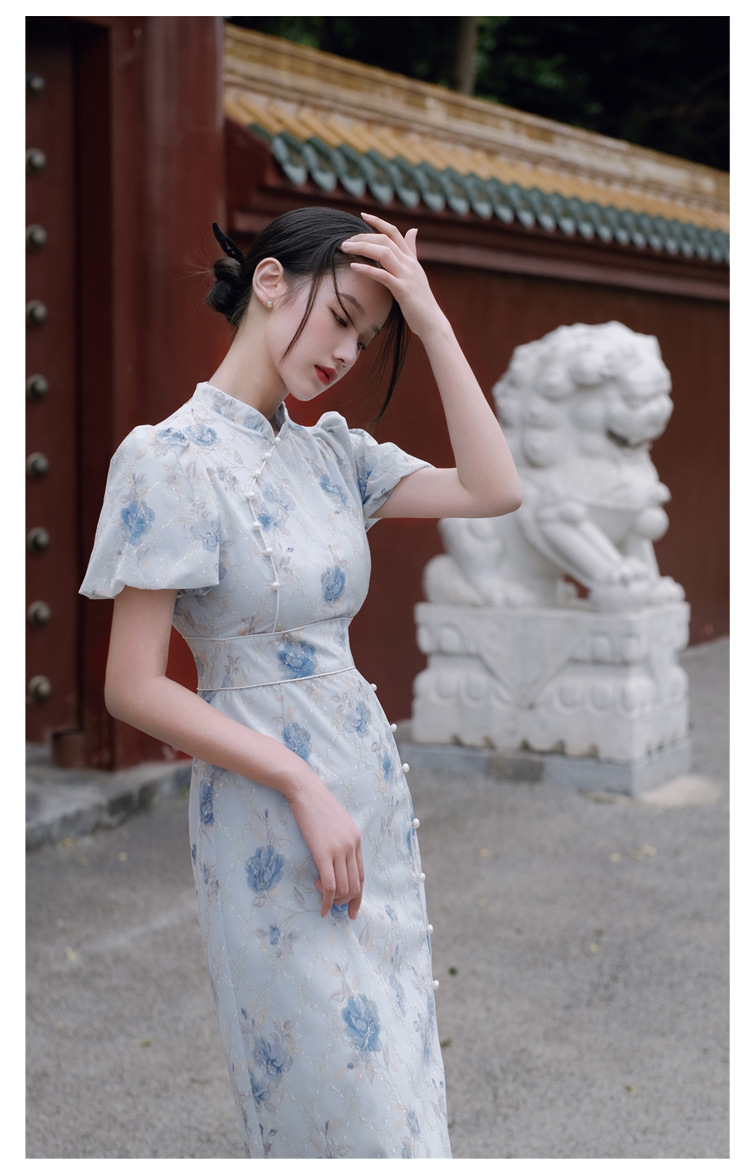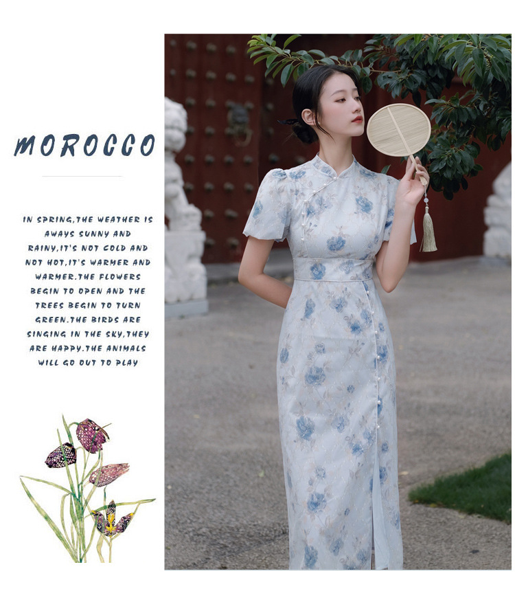 2017秋季新款丝绒绣花旗袍女装 日常复古女式斜襟旗袍连衣裙