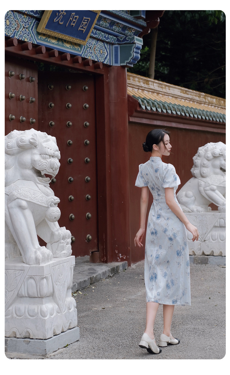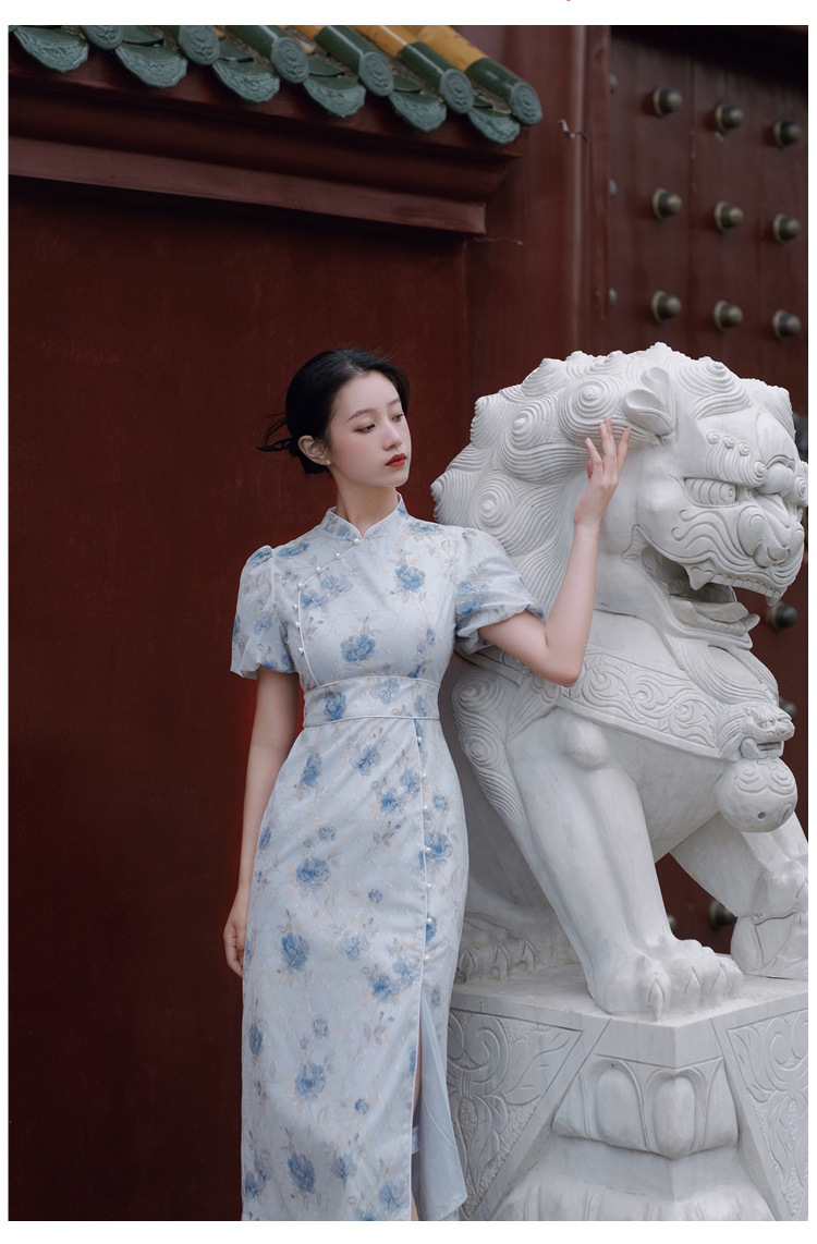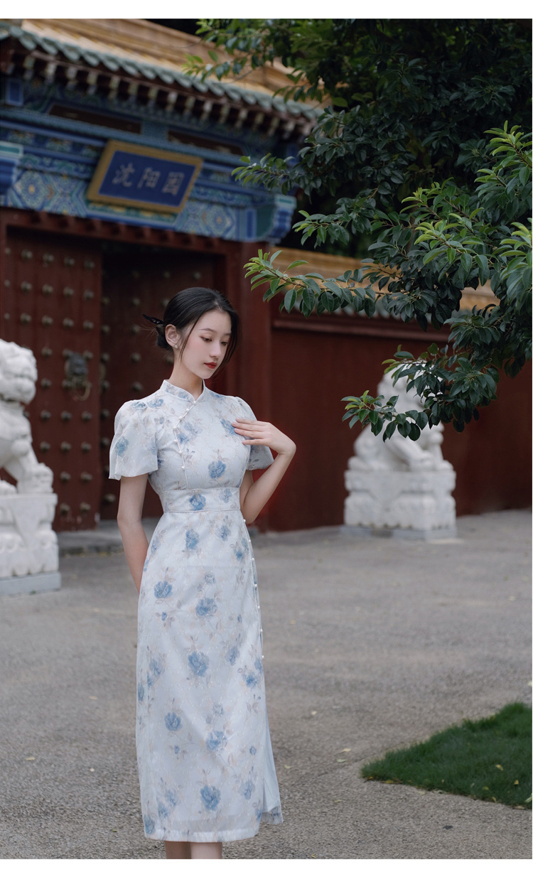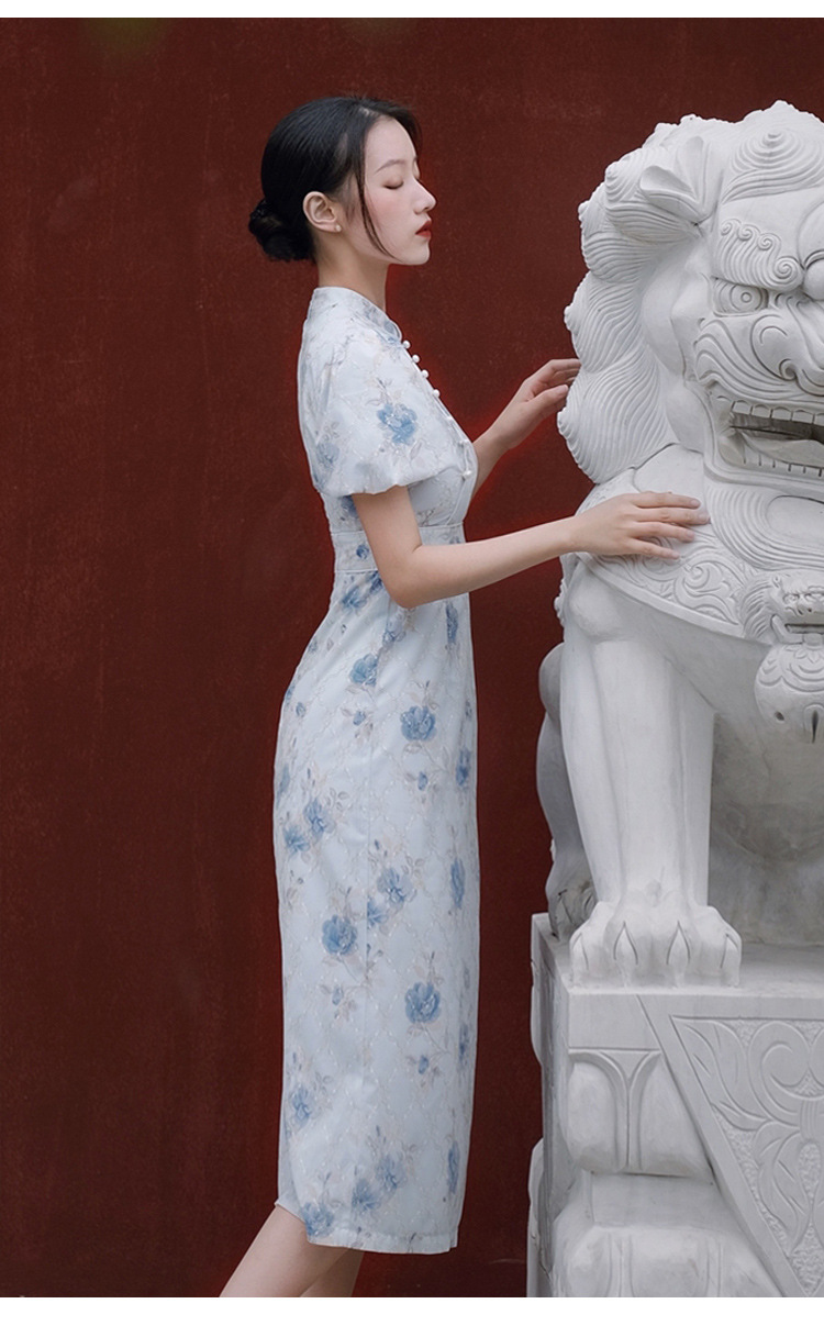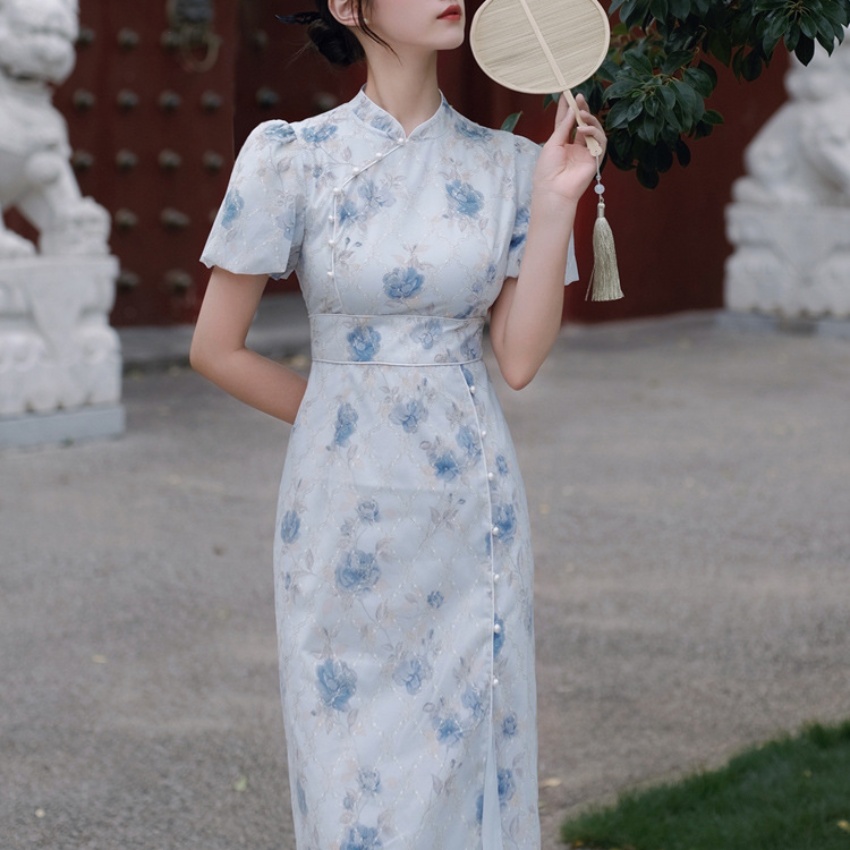 2017秋季新款丝绒绣花旗袍女装 日常复古女式斜襟旗袍连衣裙
