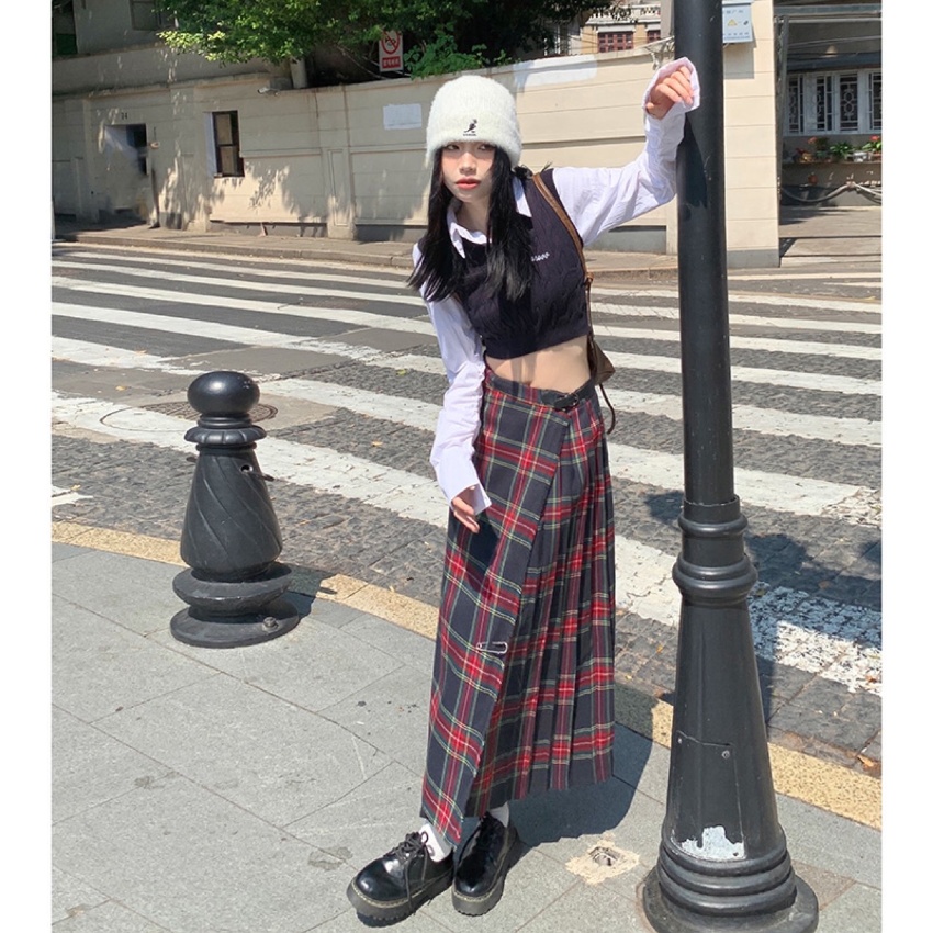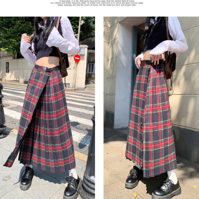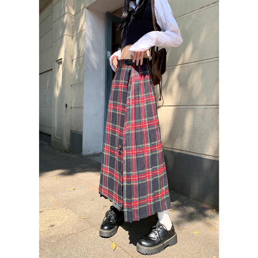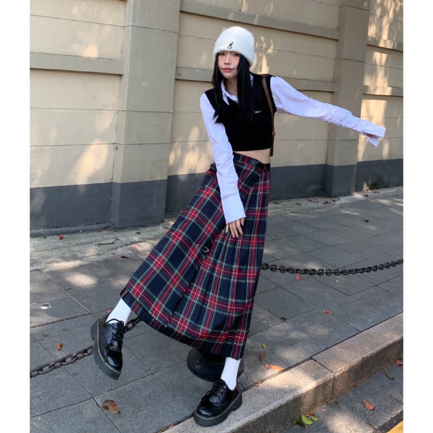 苏格兰格纹半身裙女秋季新款设计感小众高腰a字长裙(赠送别针)038KA