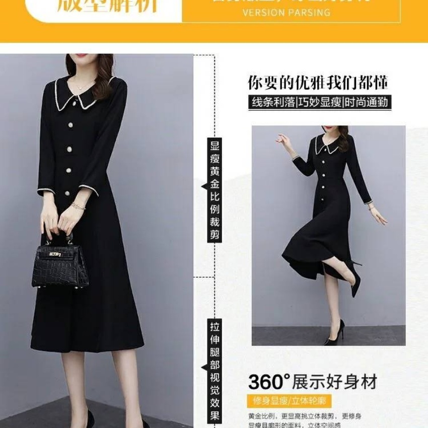 大码胖妹妹显瘦连衣裙2026女装收腰法式减龄洋气黑色套装裙子