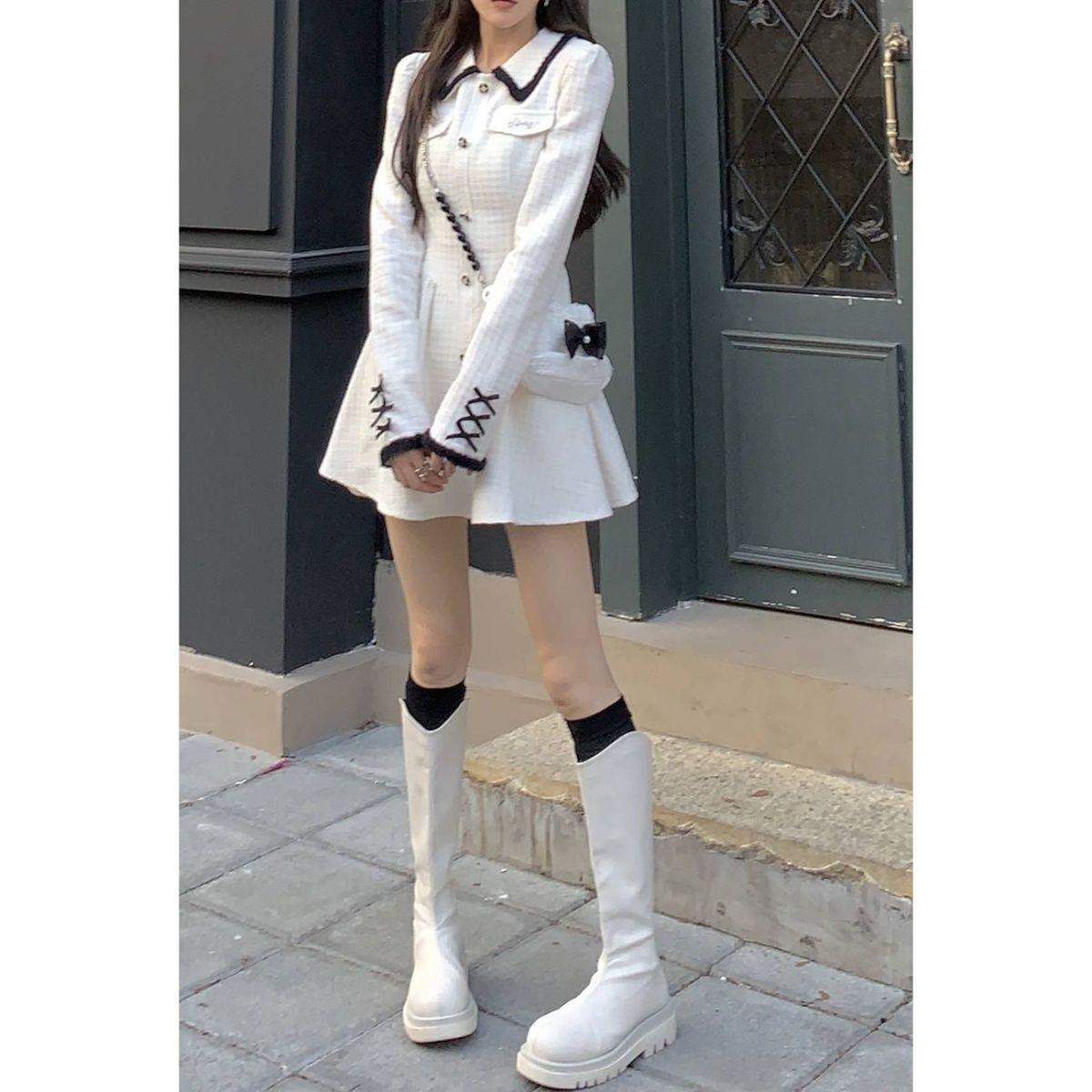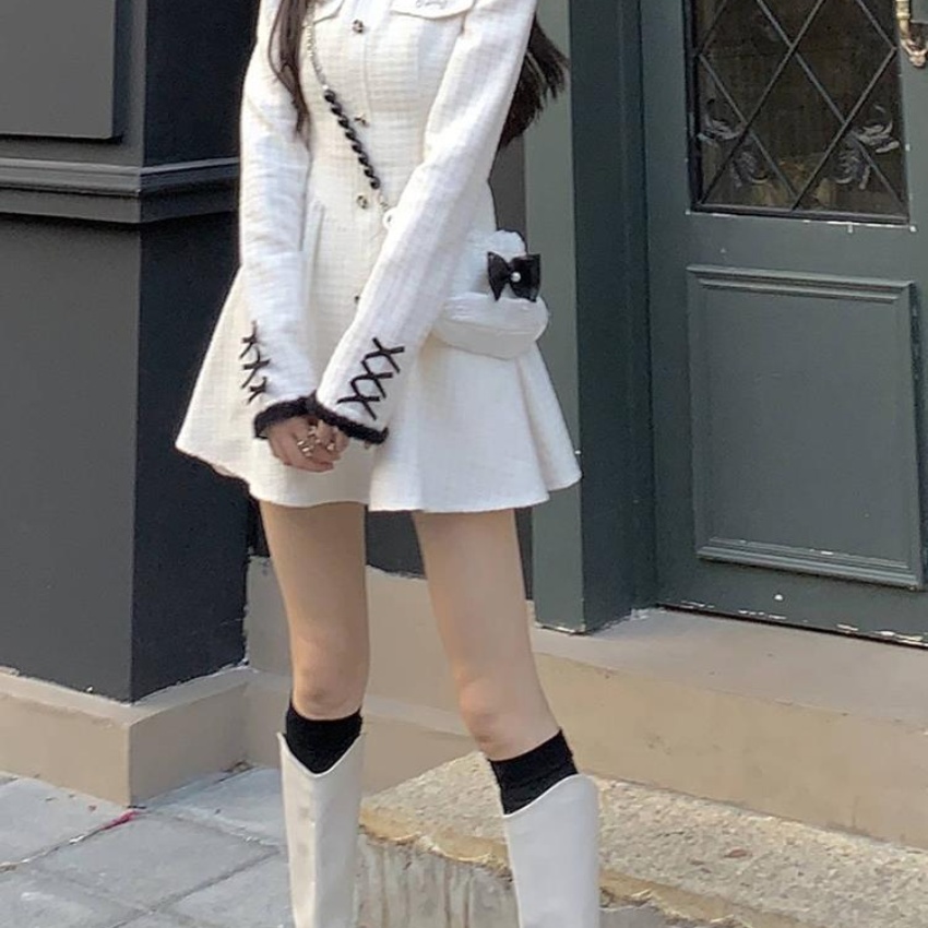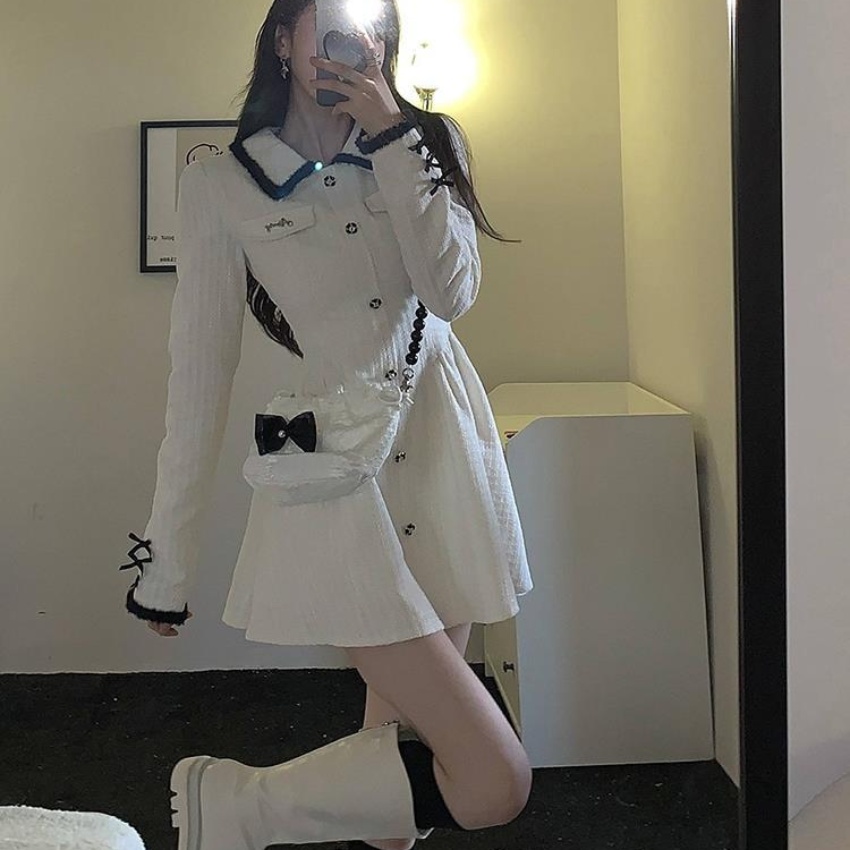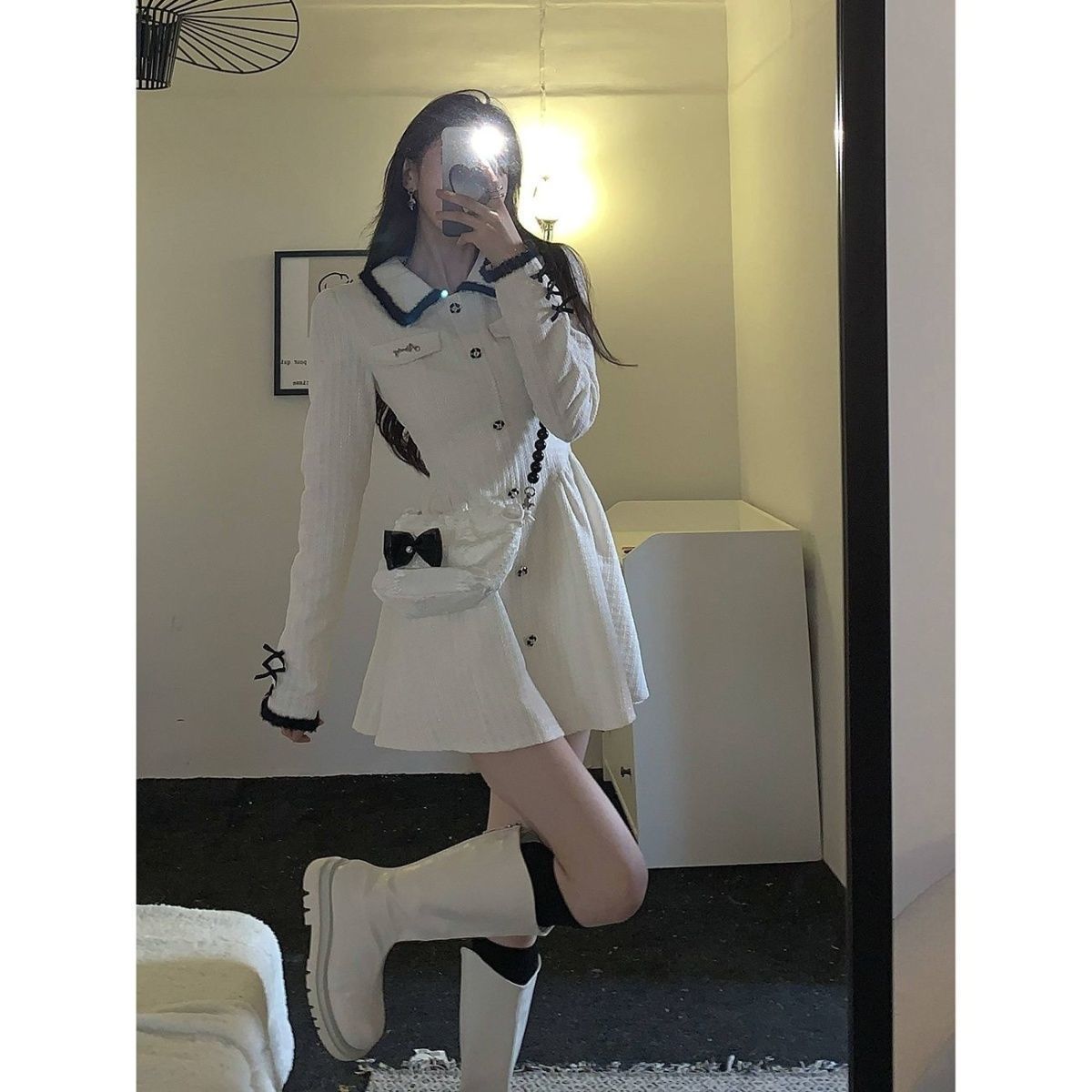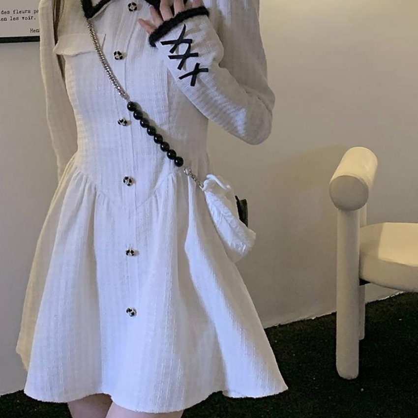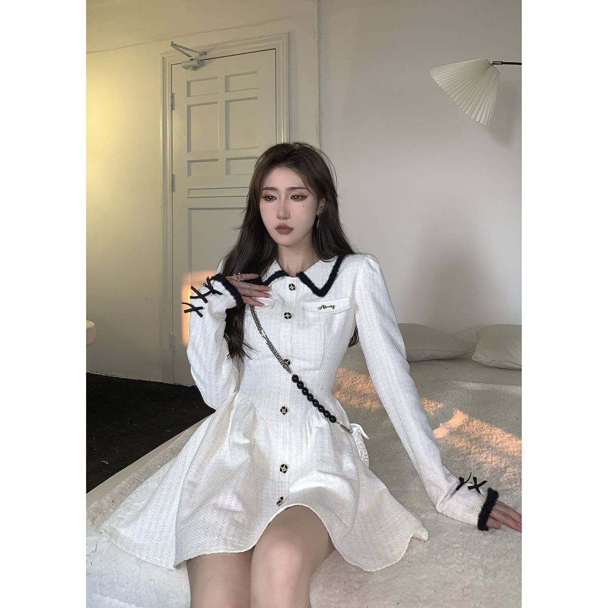 2023春秋季新款裹身包臀白色短裙法式方领紧身显瘦性感连衣裙纯色皱褶裙装