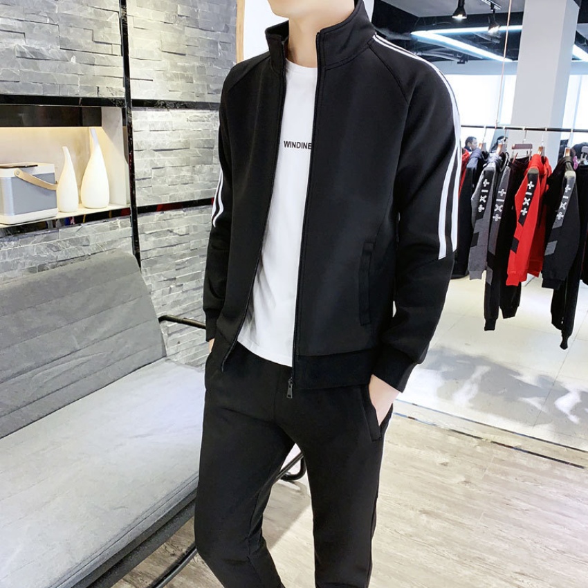 【代发 包邮】2020春季新款卫衣两件套休闲男装韩版潮流春秋款运动套装男士外套