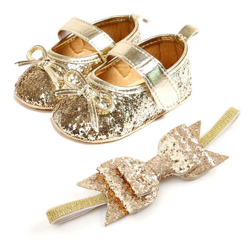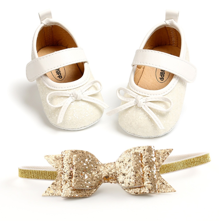 春秋0-1岁婴儿公主鞋宝宝鞋学步鞋2件套发带婴儿鞋1950