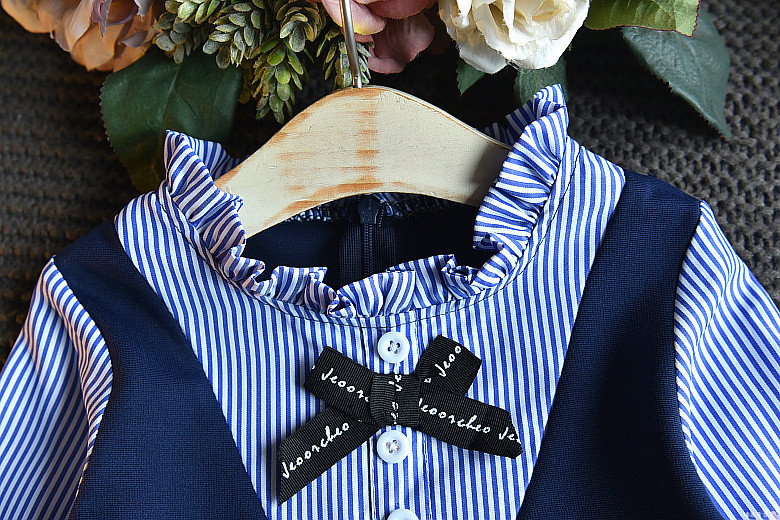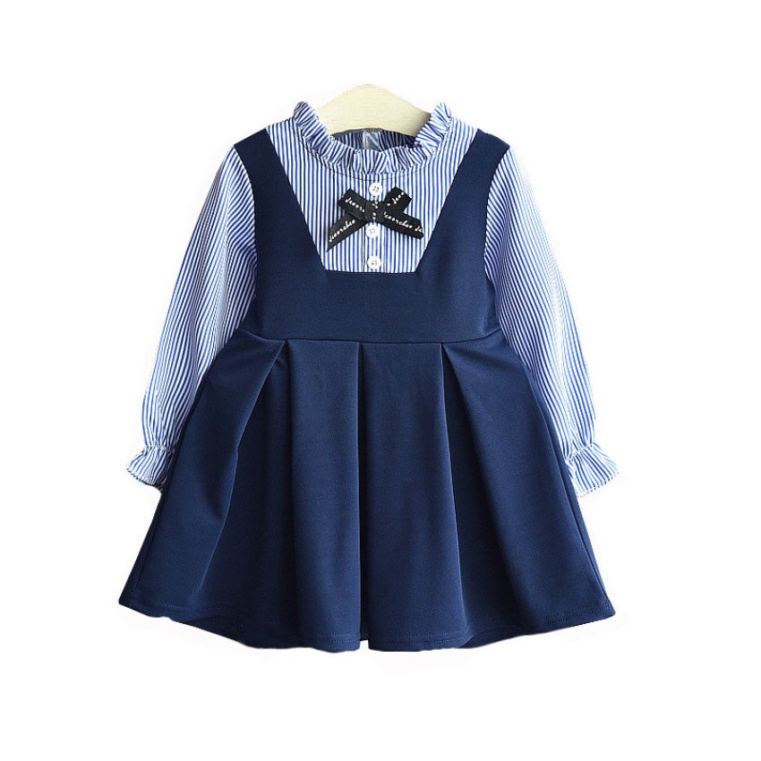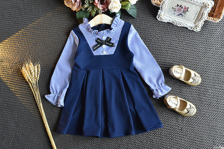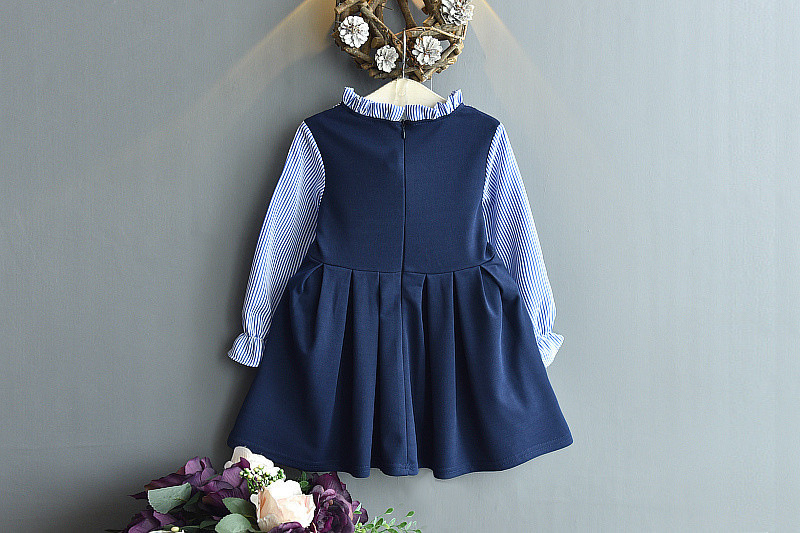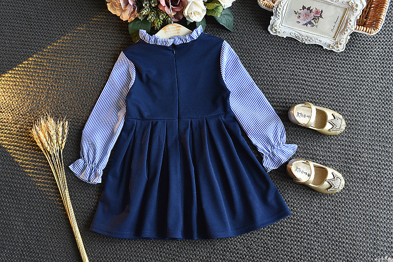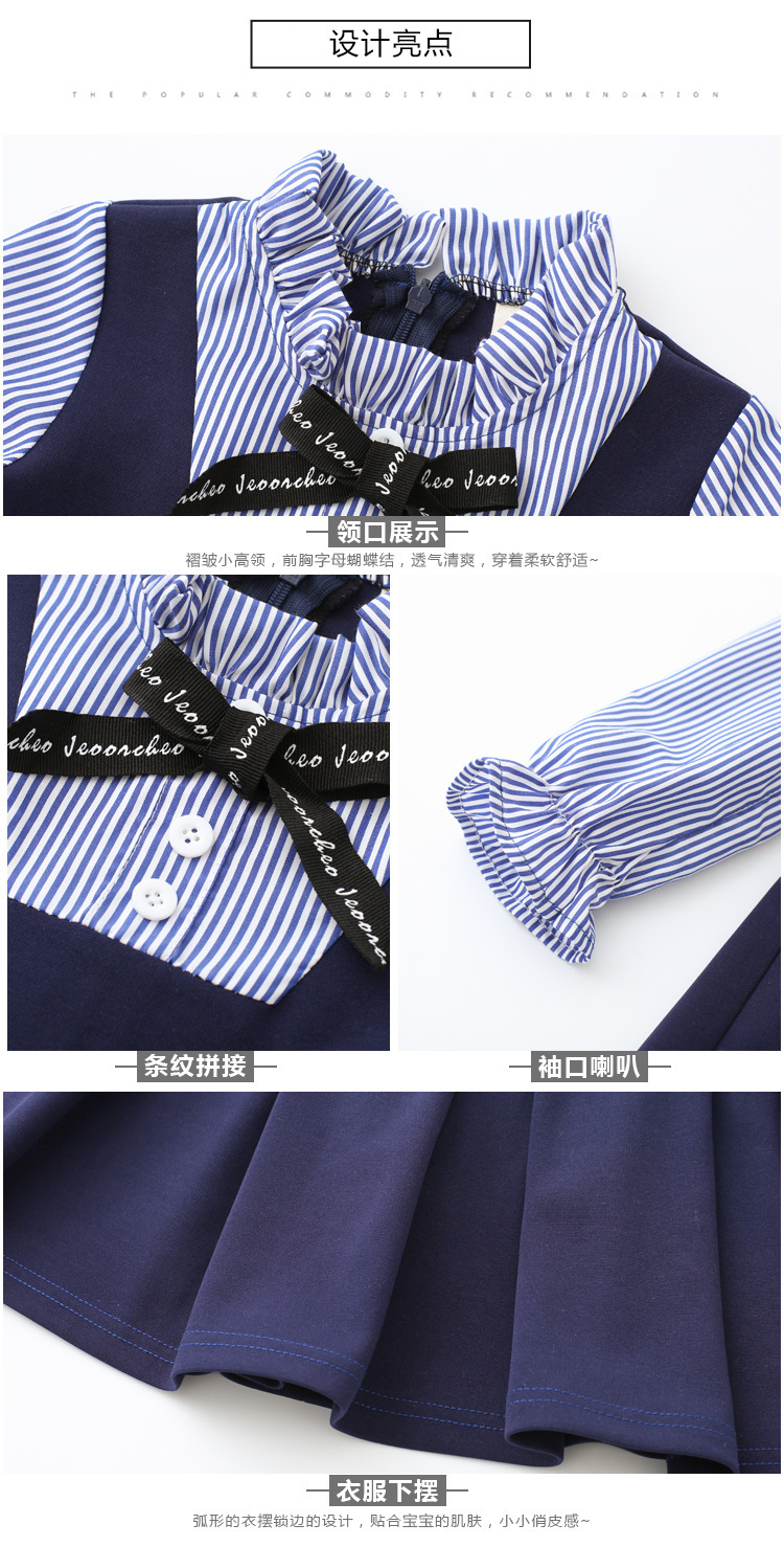 【代发 包邮】韩版女童气质小清新连衣裙2020秋条纹长袖裙