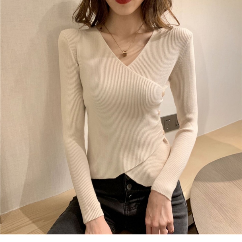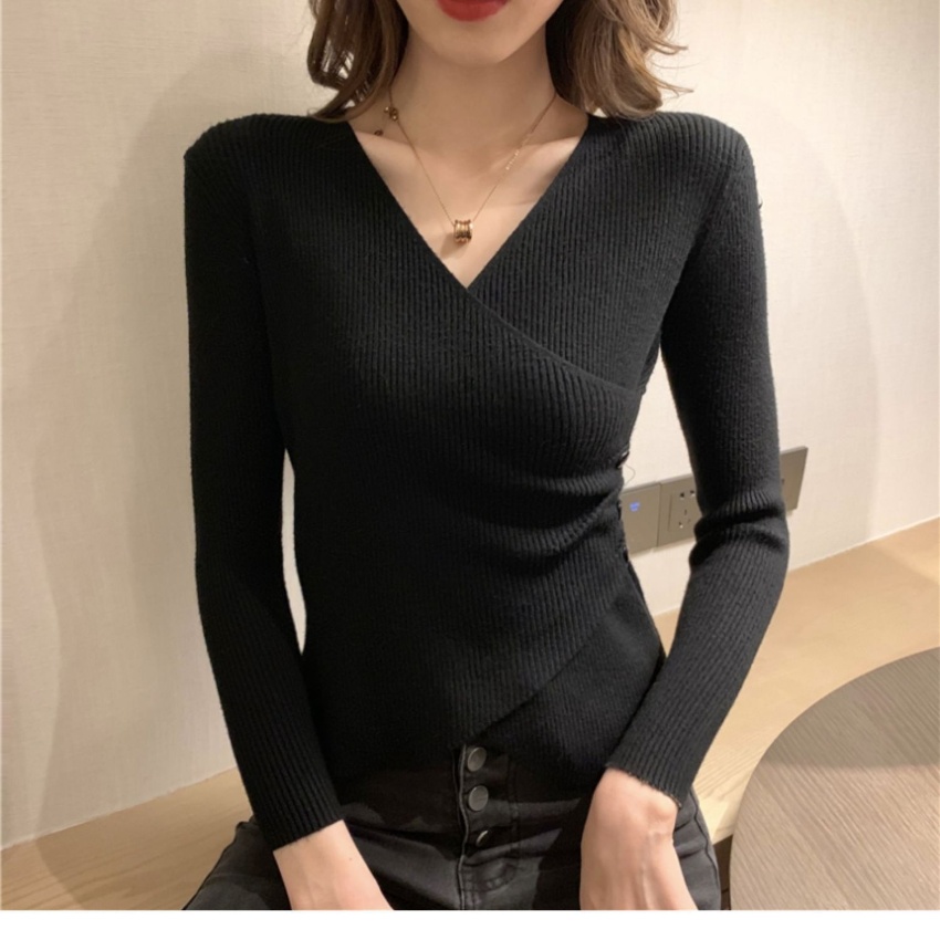 2023秋冬季韩版新款V领套头长袖毛衣纯色修身显瘦性感辣妹内搭打底衫网红外穿女上衣