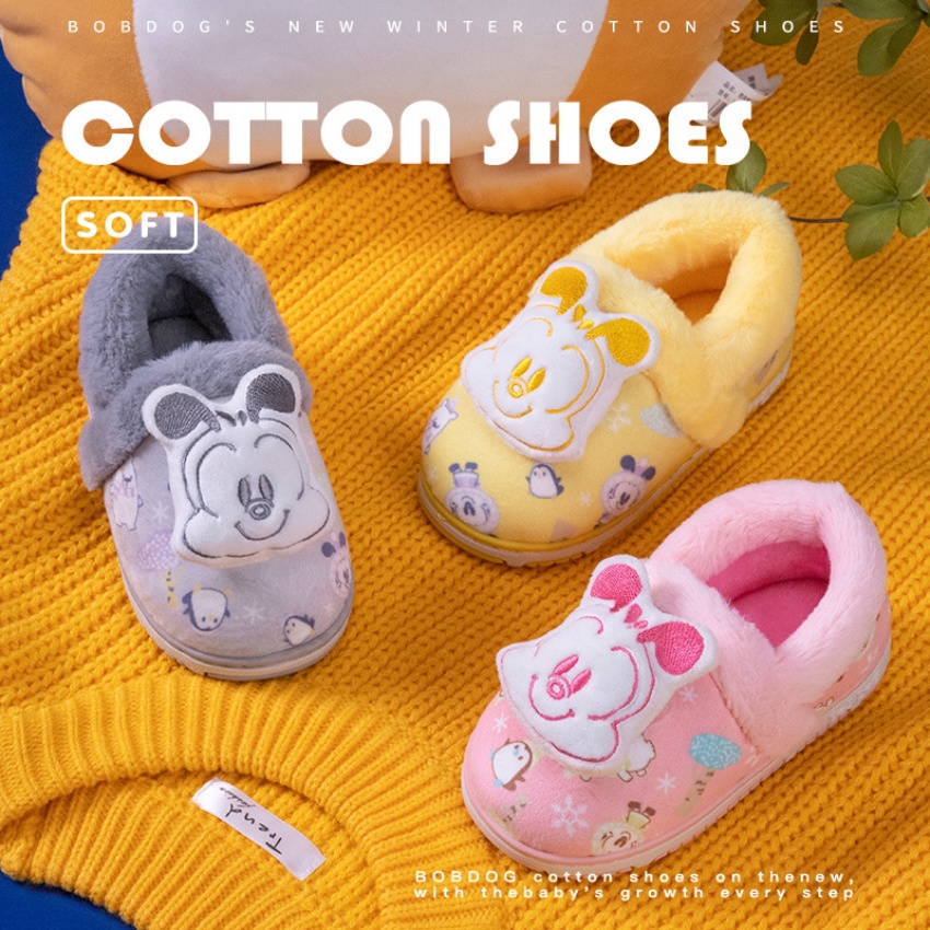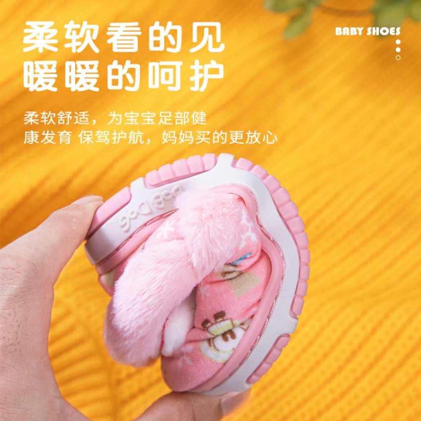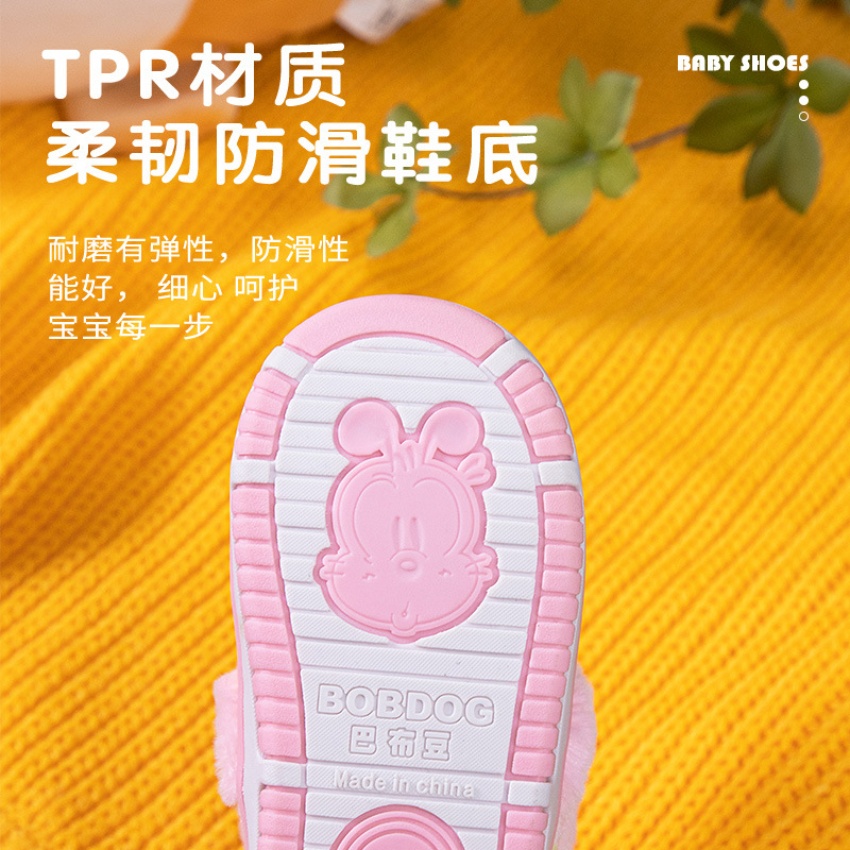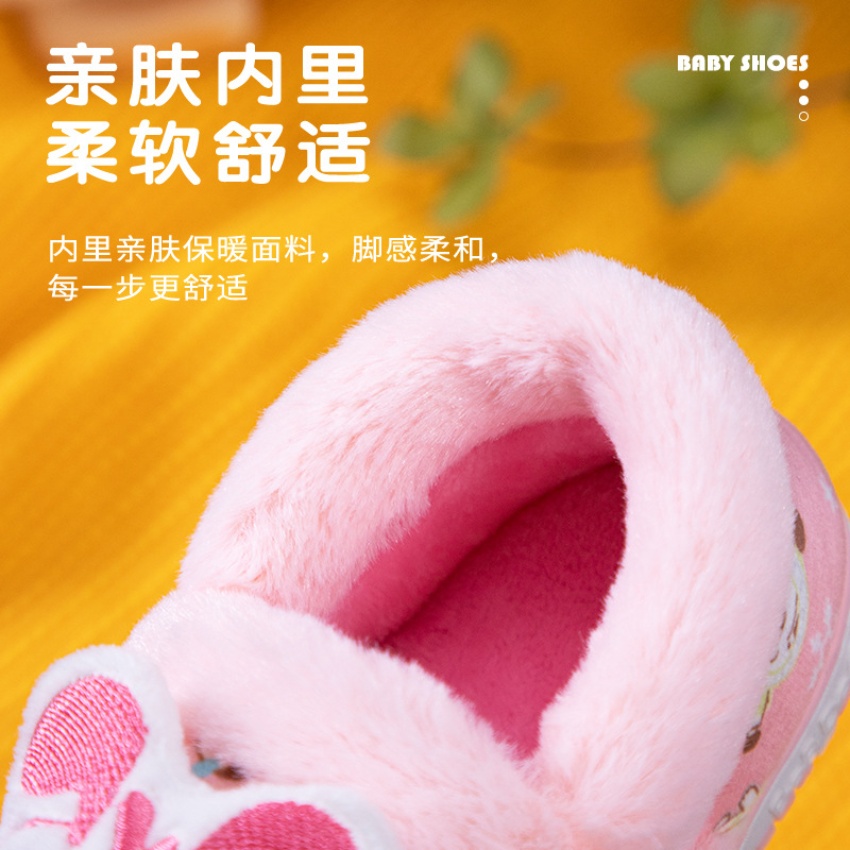 巴布豆儿童棉鞋女童宝宝公主可爱包跟家居棉鞋立体头像1-3岁-4