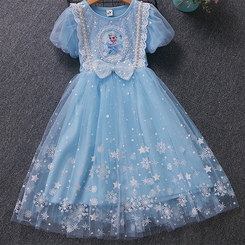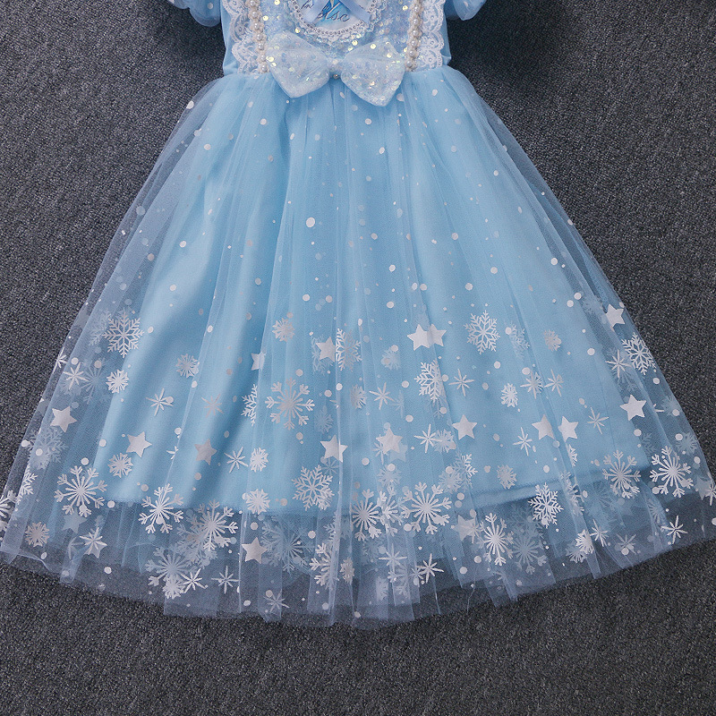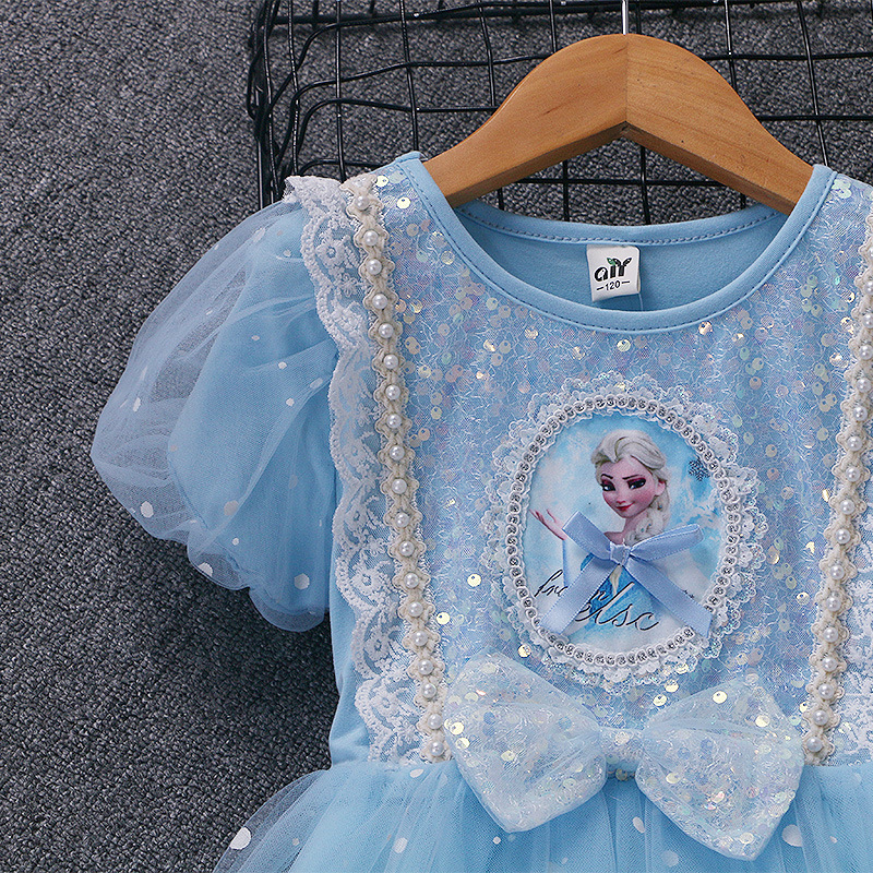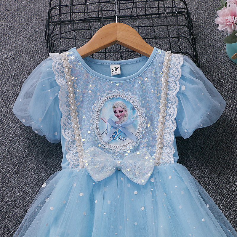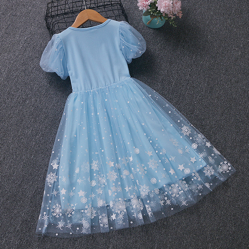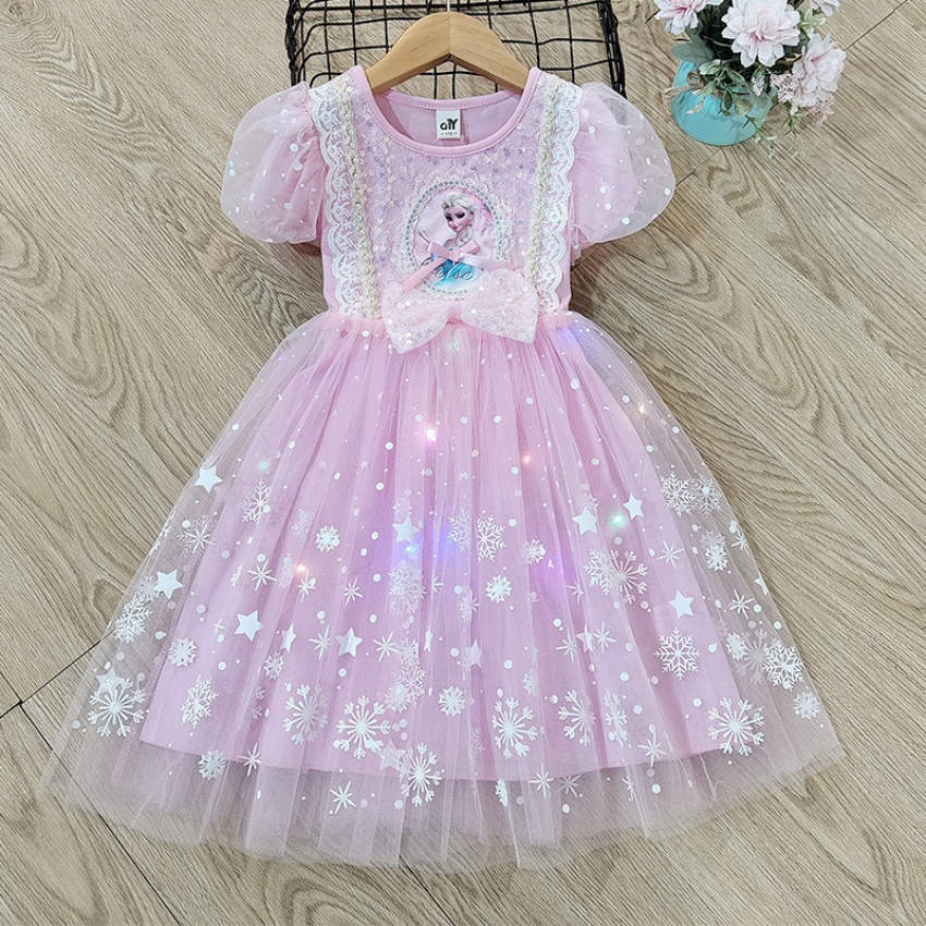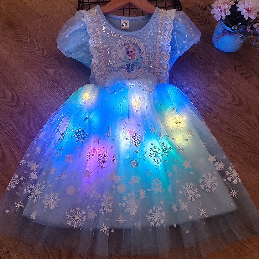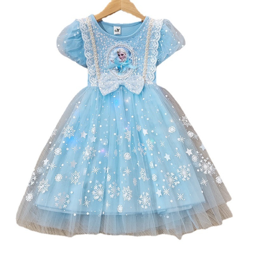 新款夏季女童连衣裙冰雪奇缘公主裙儿童发光爱莎短袖六一礼服童裙