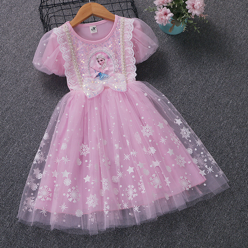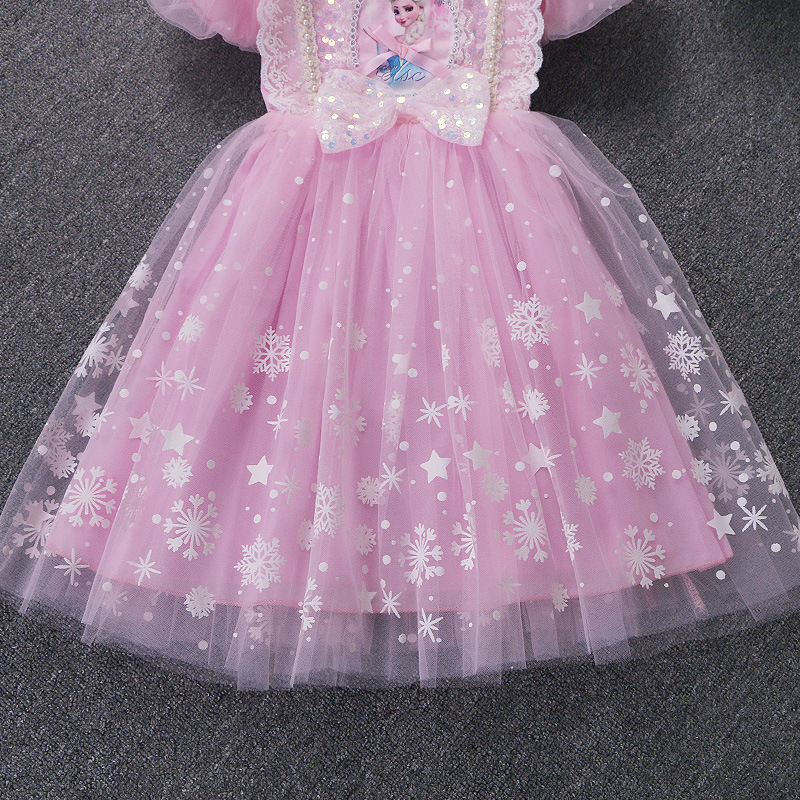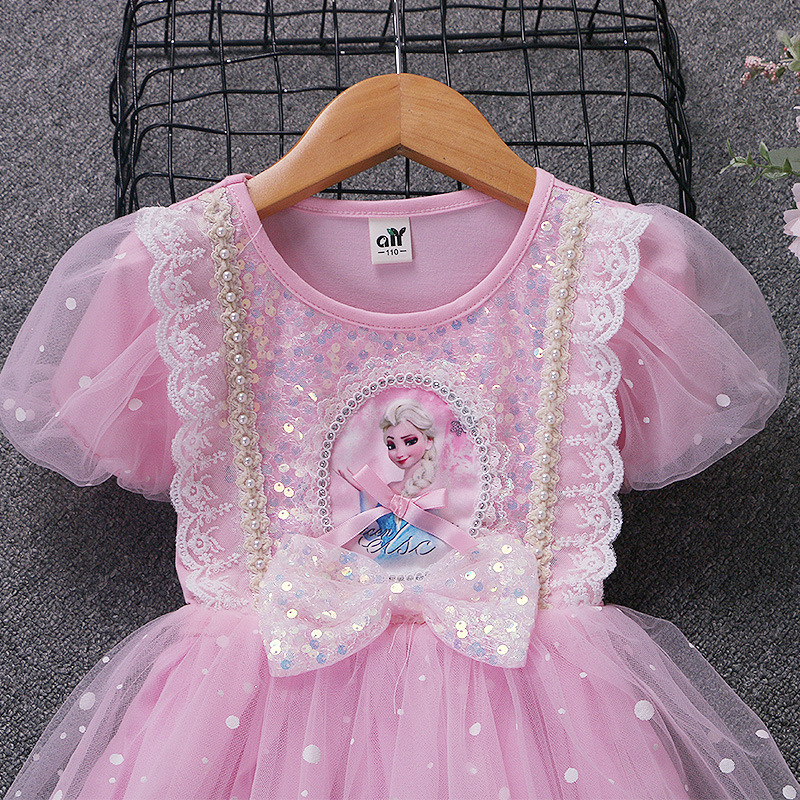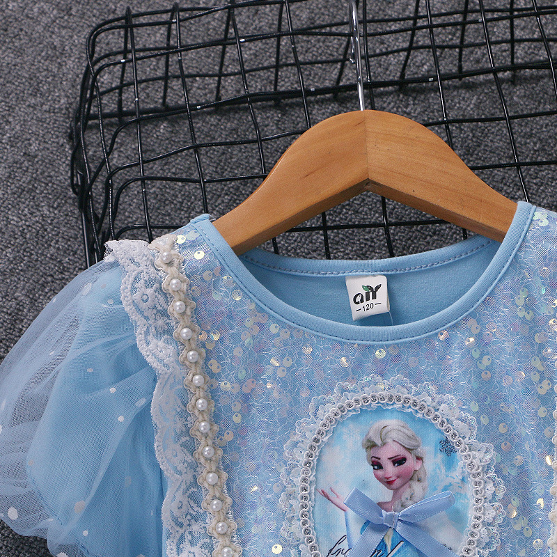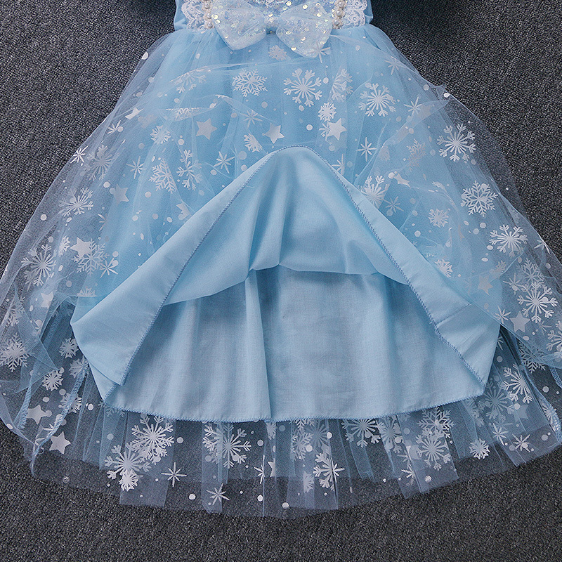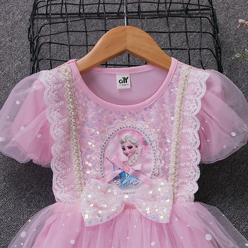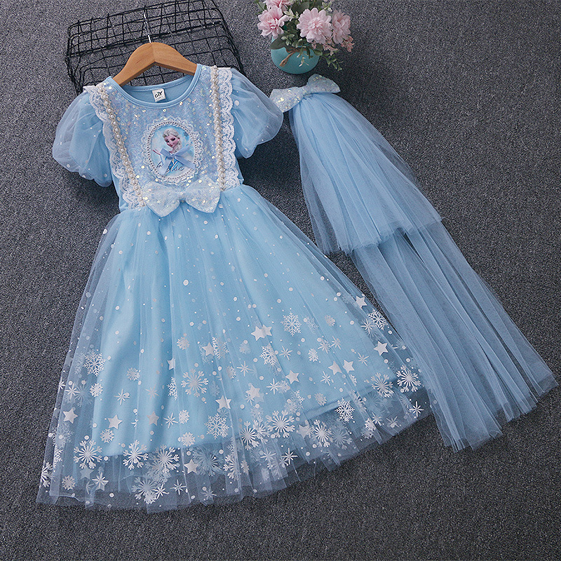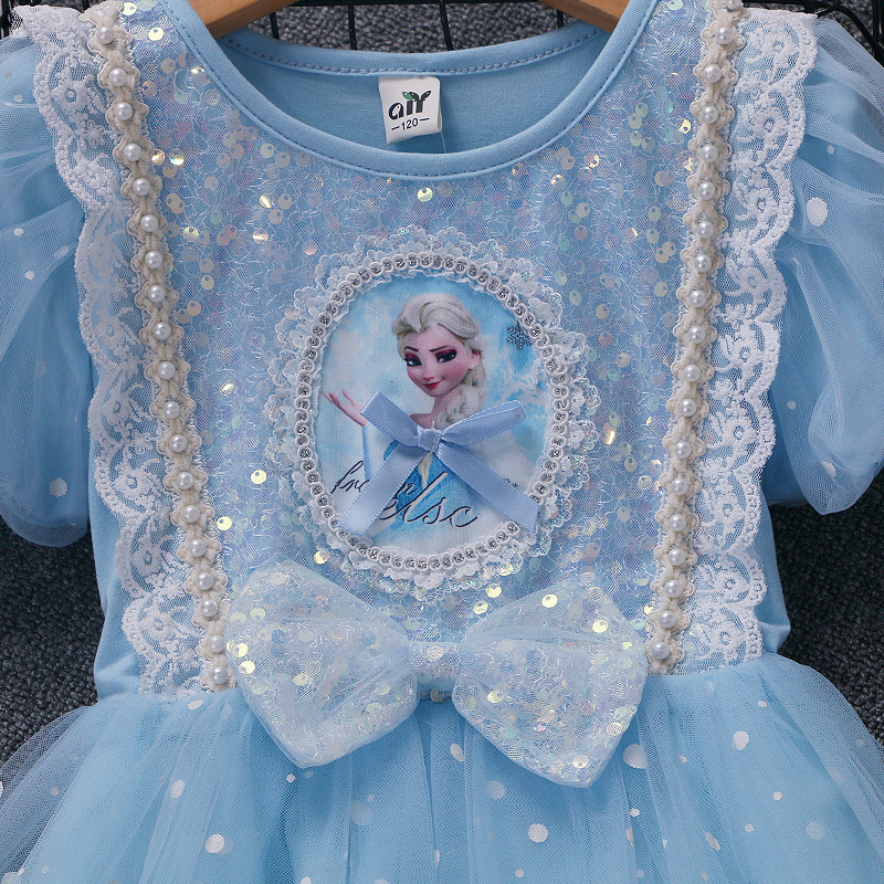 新款夏季女童连衣裙冰雪奇缘公主裙儿童发光爱莎短袖六一礼服童裙