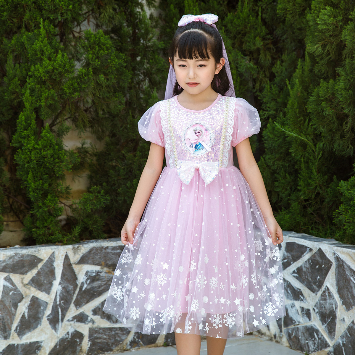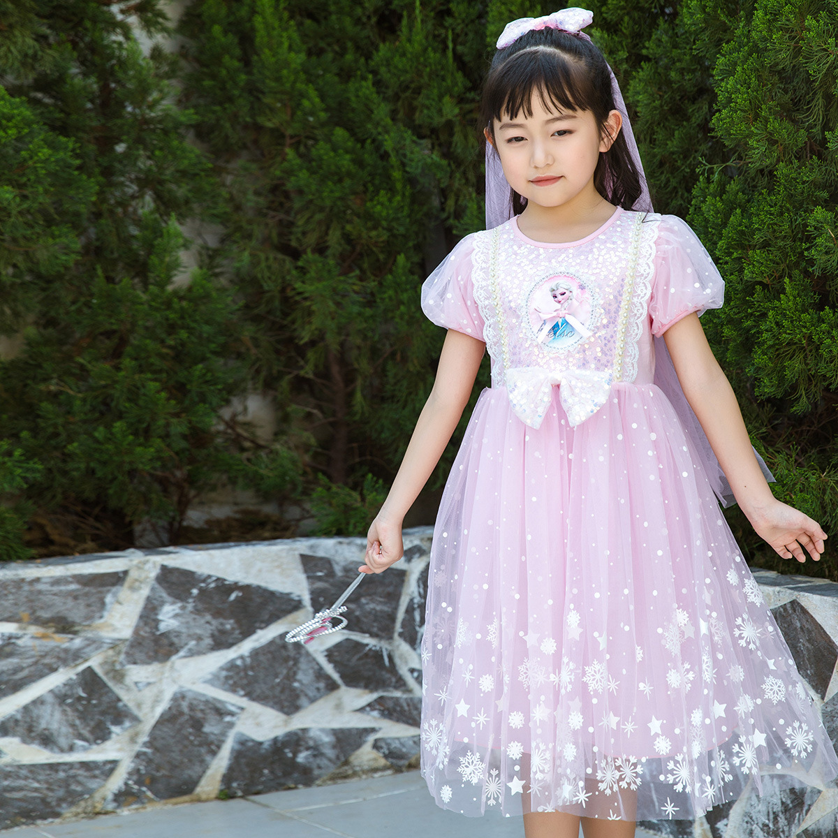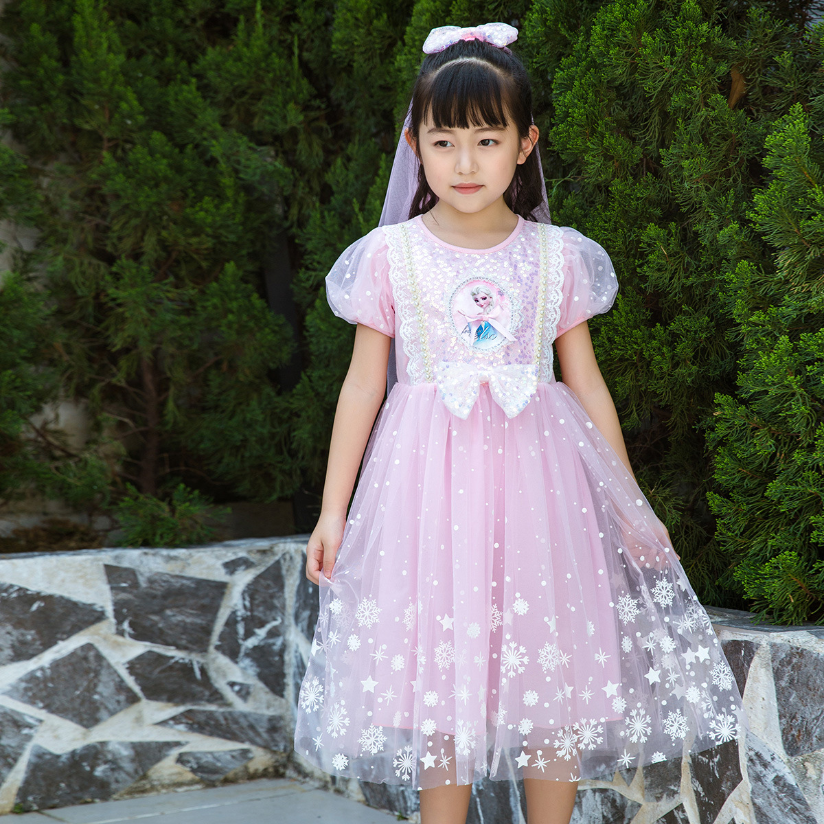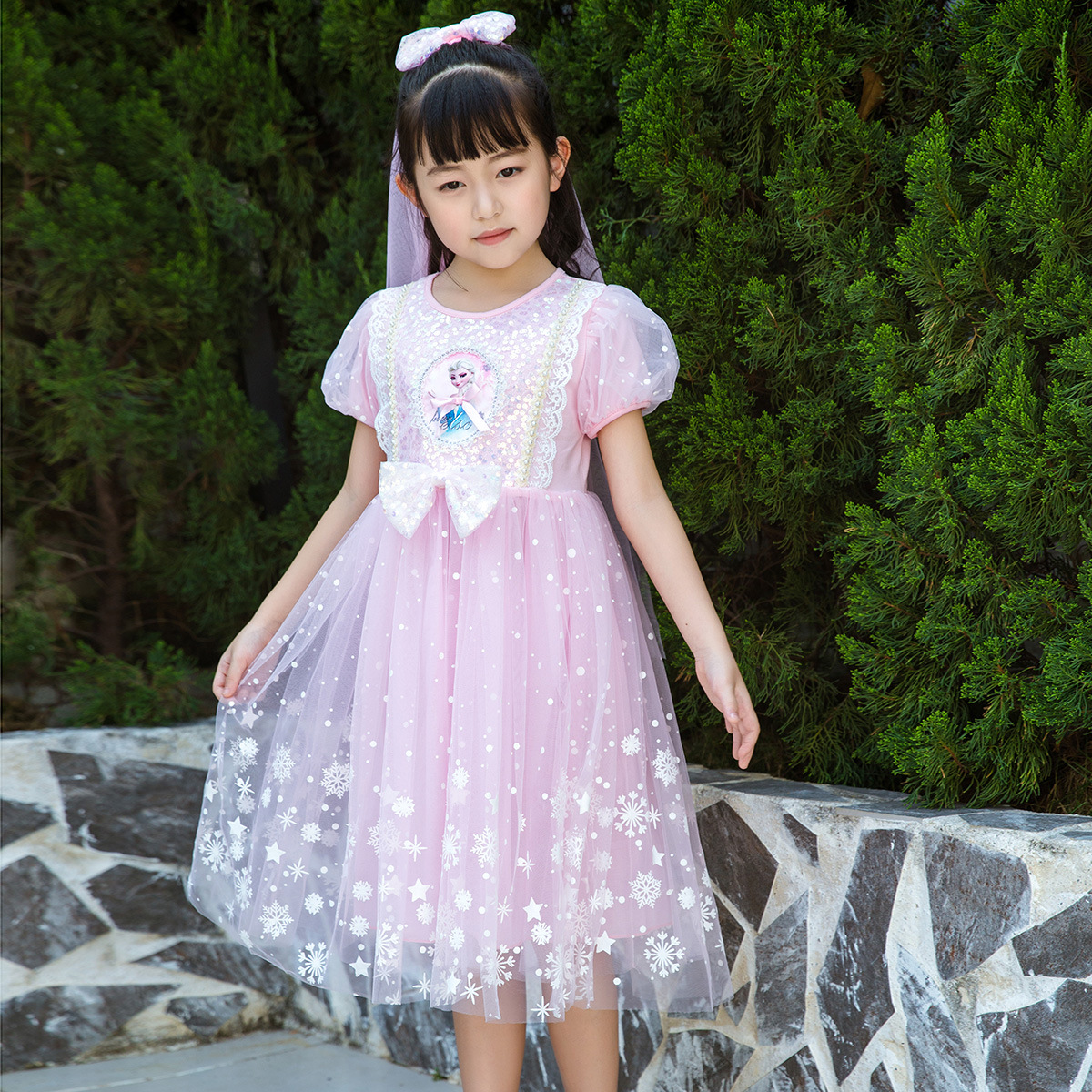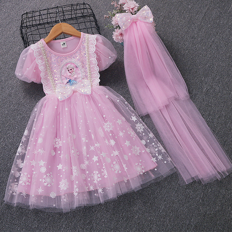 新款夏季女童连衣裙冰雪奇缘公主裙儿童发光爱莎短袖六一礼服童裙