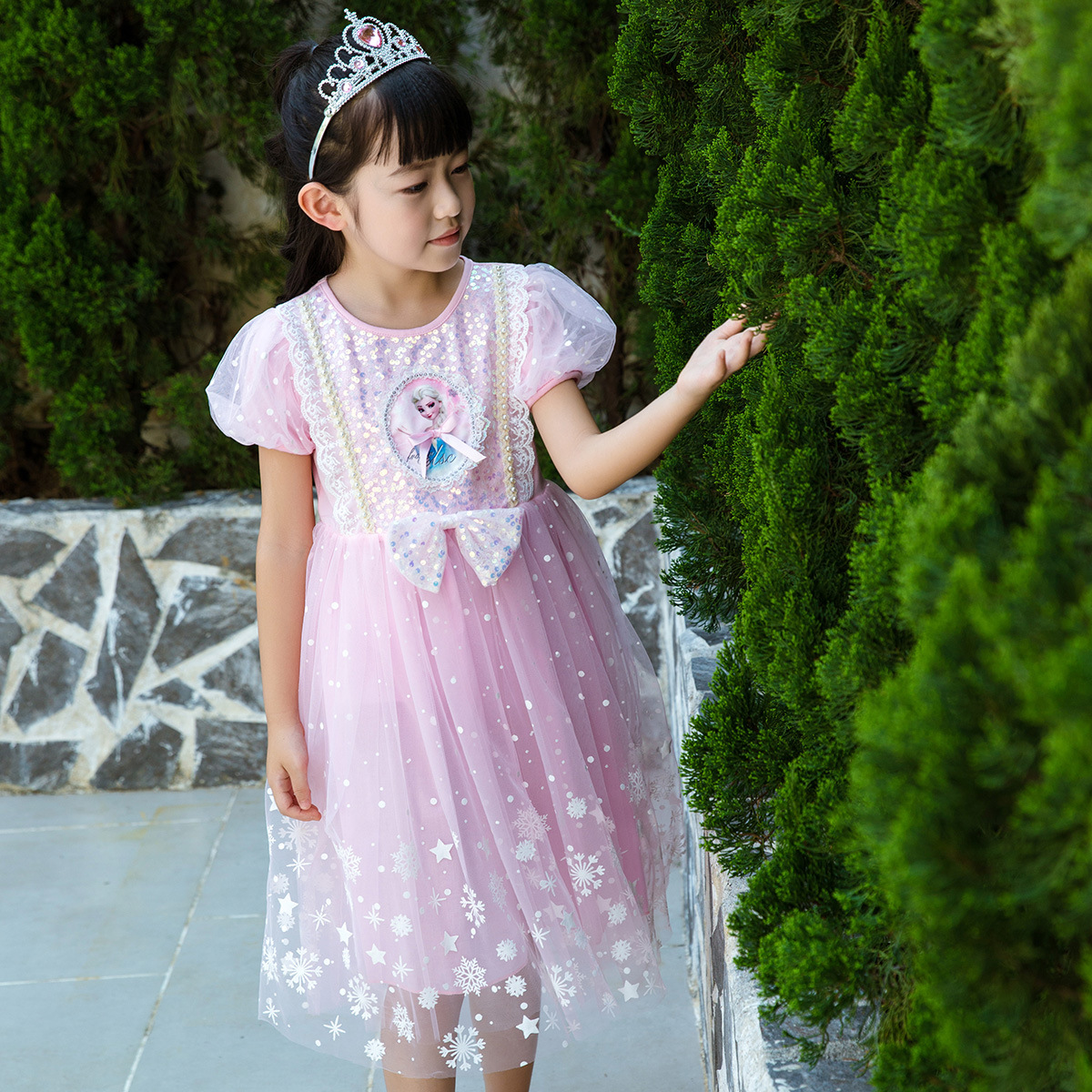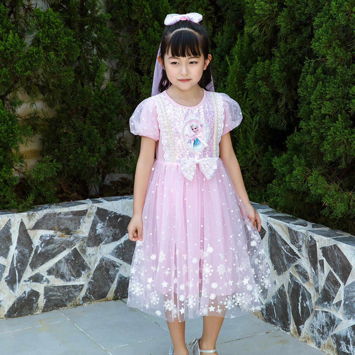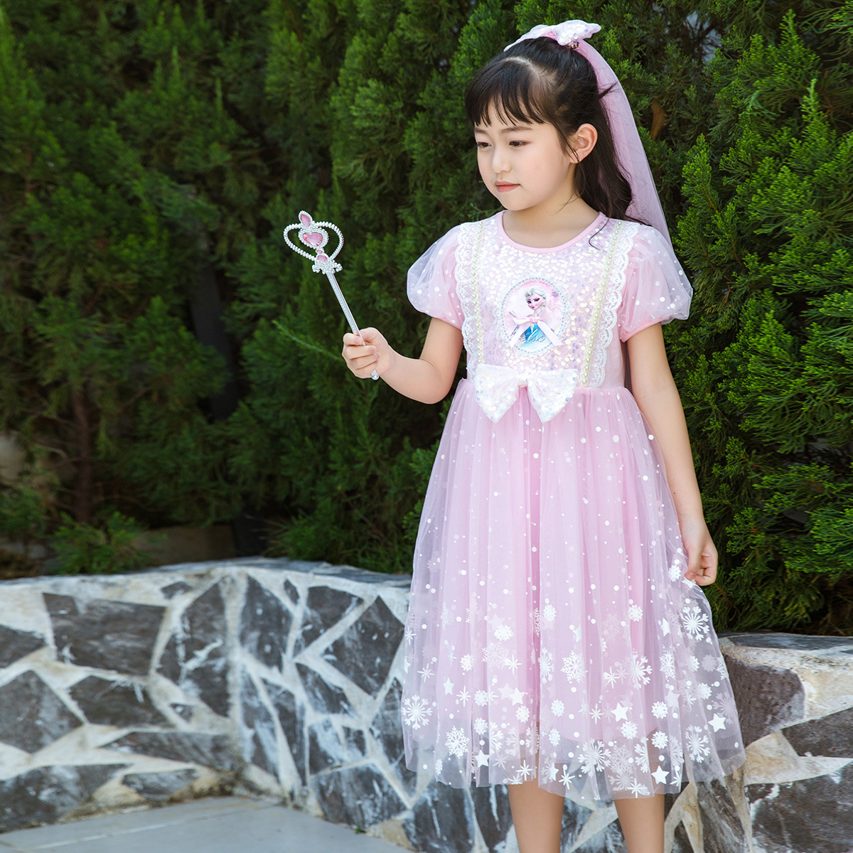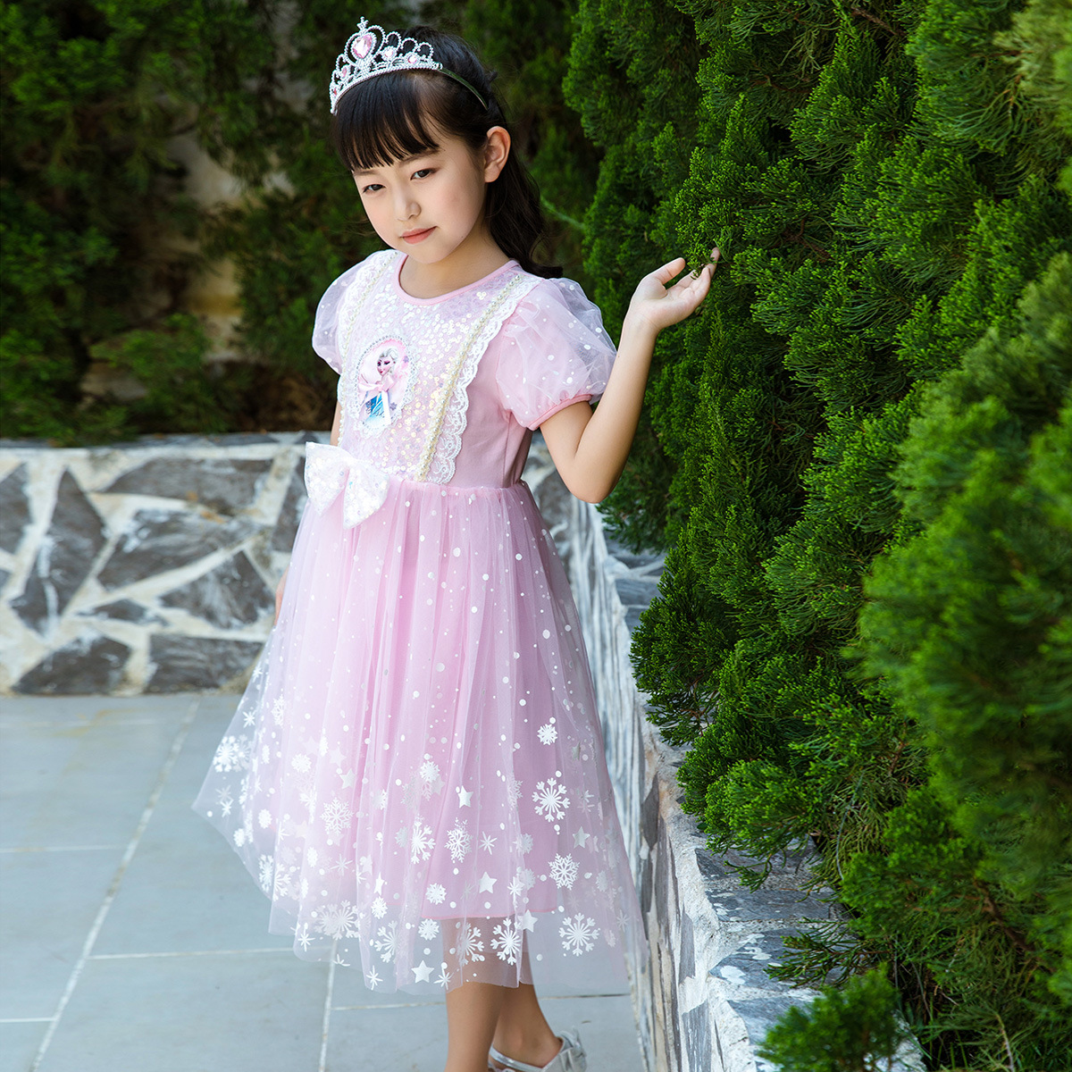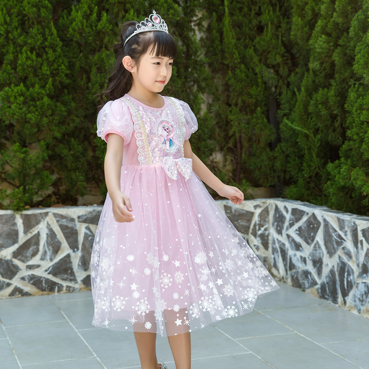 新款夏季女童连衣裙冰雪奇缘公主裙儿童发光爱莎短袖六一礼服童裙