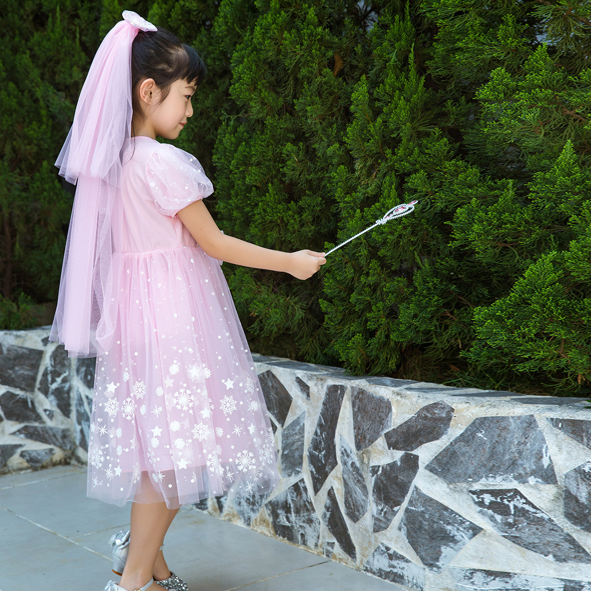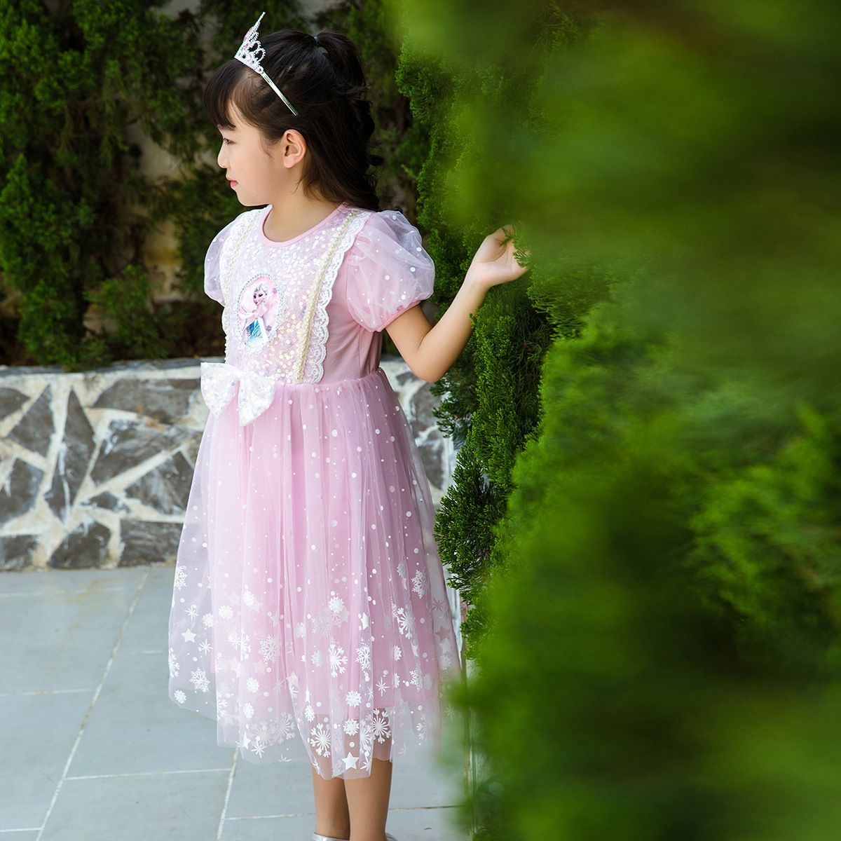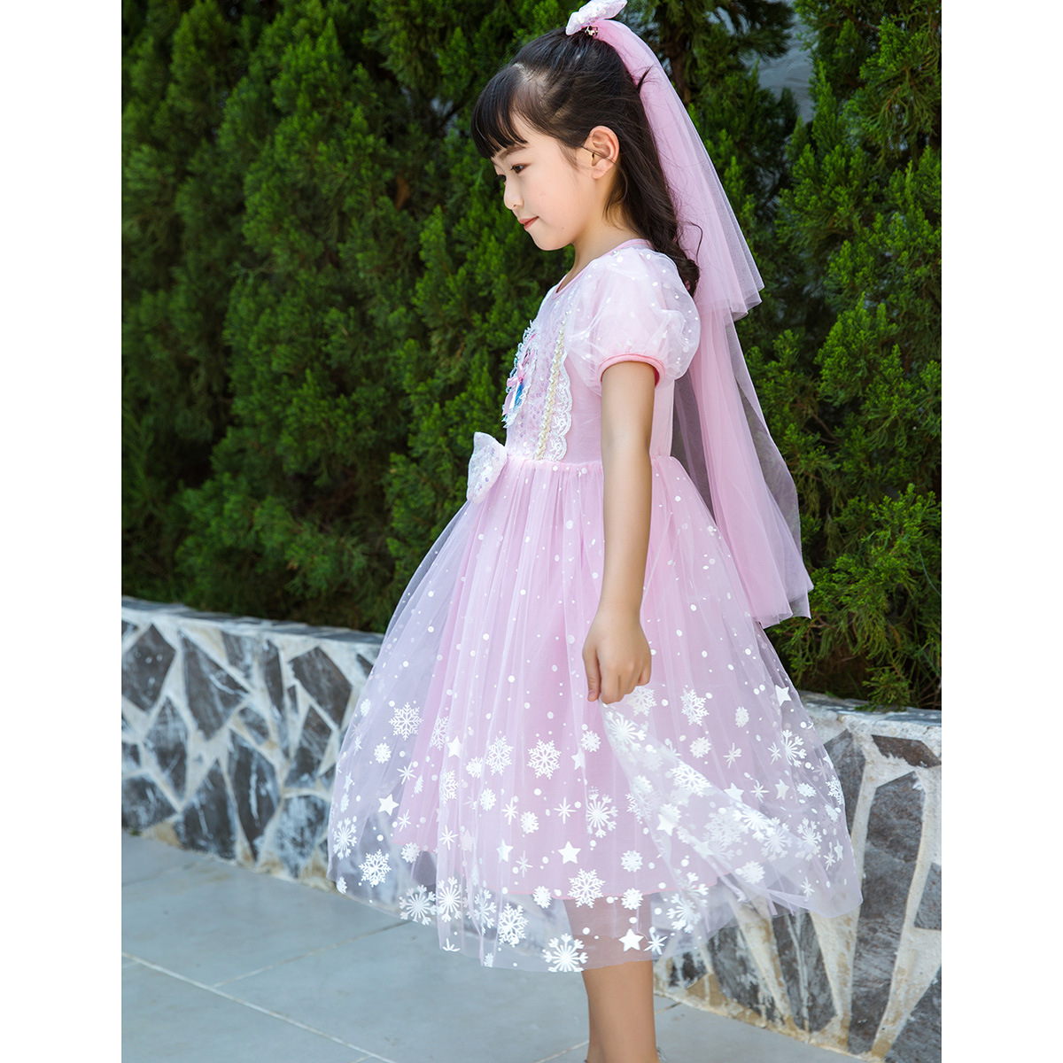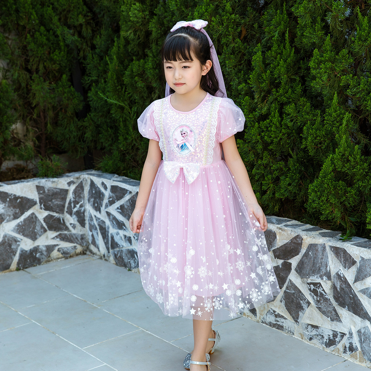 新款夏季女童连衣裙冰雪奇缘公主裙儿童发光爱莎短袖六一礼服童裙