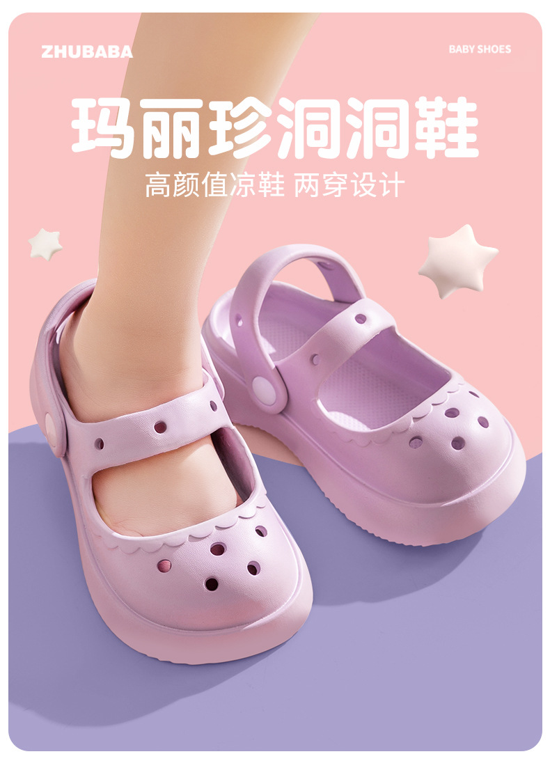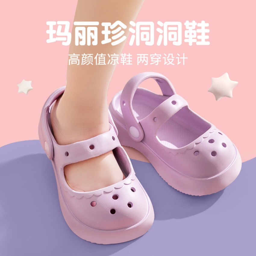 玛丽珍儿童拖鞋女童夏季可爱洞洞鞋室内凉拖鞋女孩亲子包头凉鞋