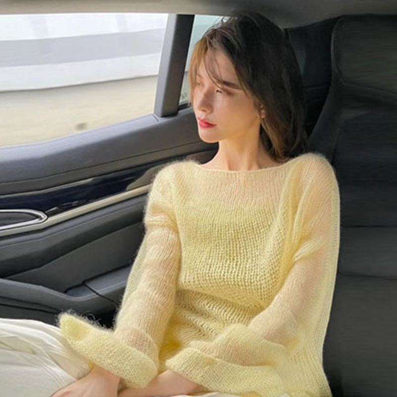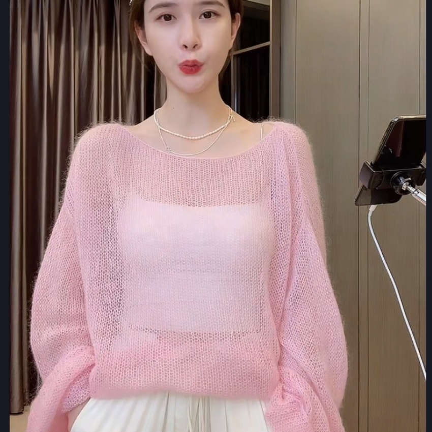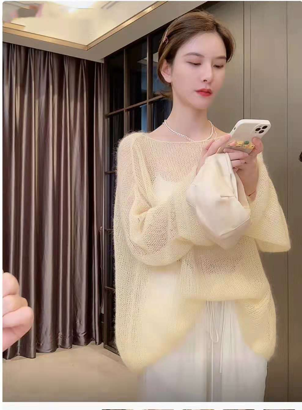 2026早秋新款纯色薄款简约宽松大码针织衫长袖毛衣上衣百搭潮外穿内搭打底衫