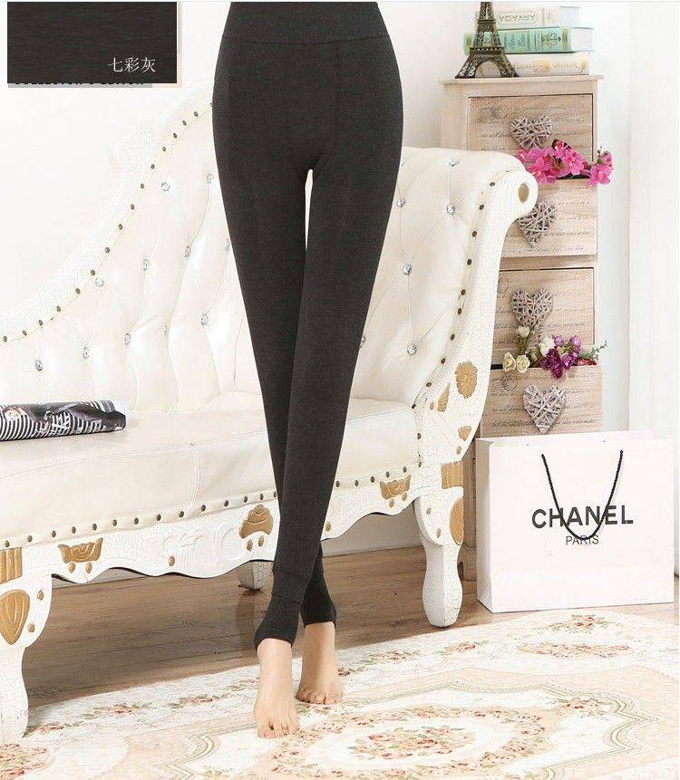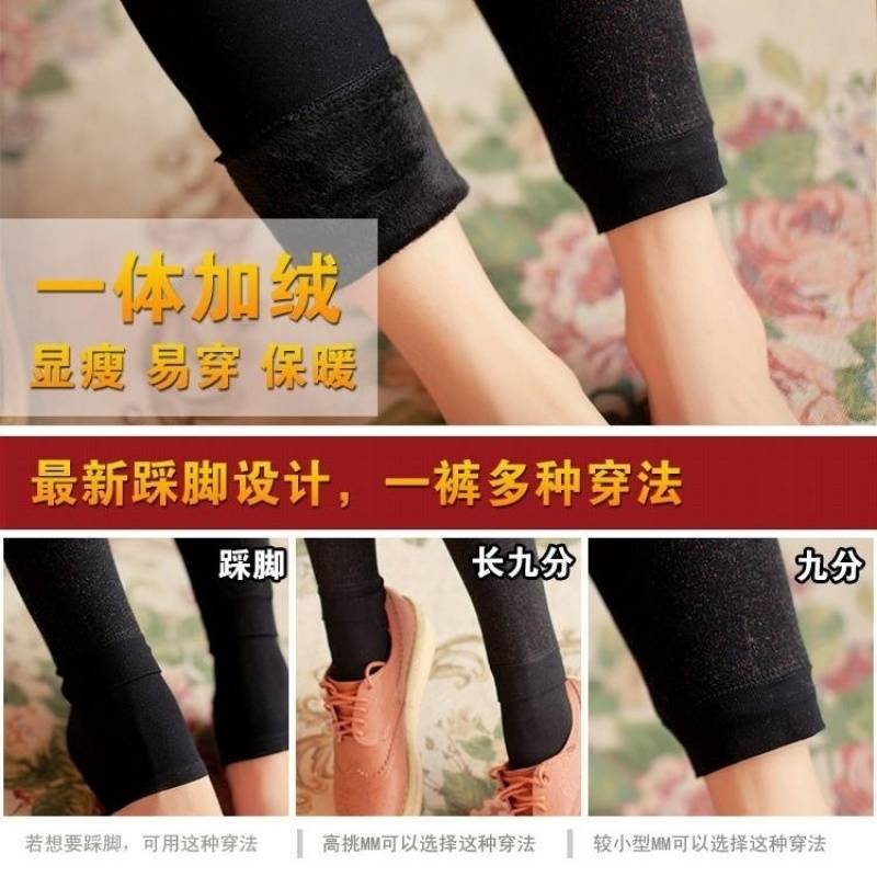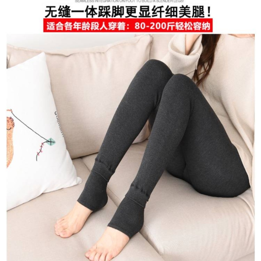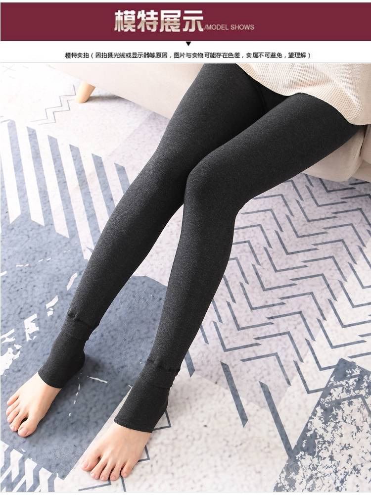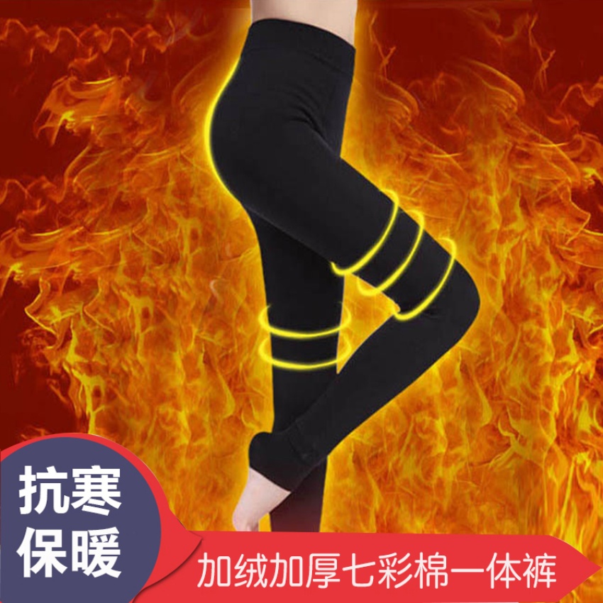 果真红黑色320克冬季七彩棉裤加绒加厚打底裤女保暖踩脚一体裤