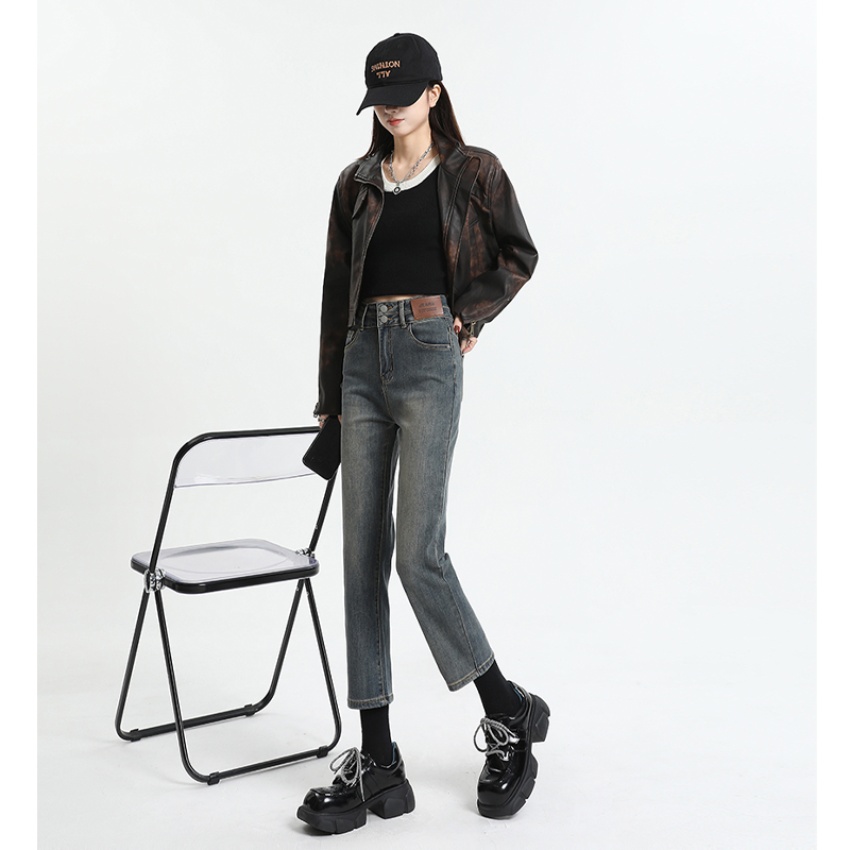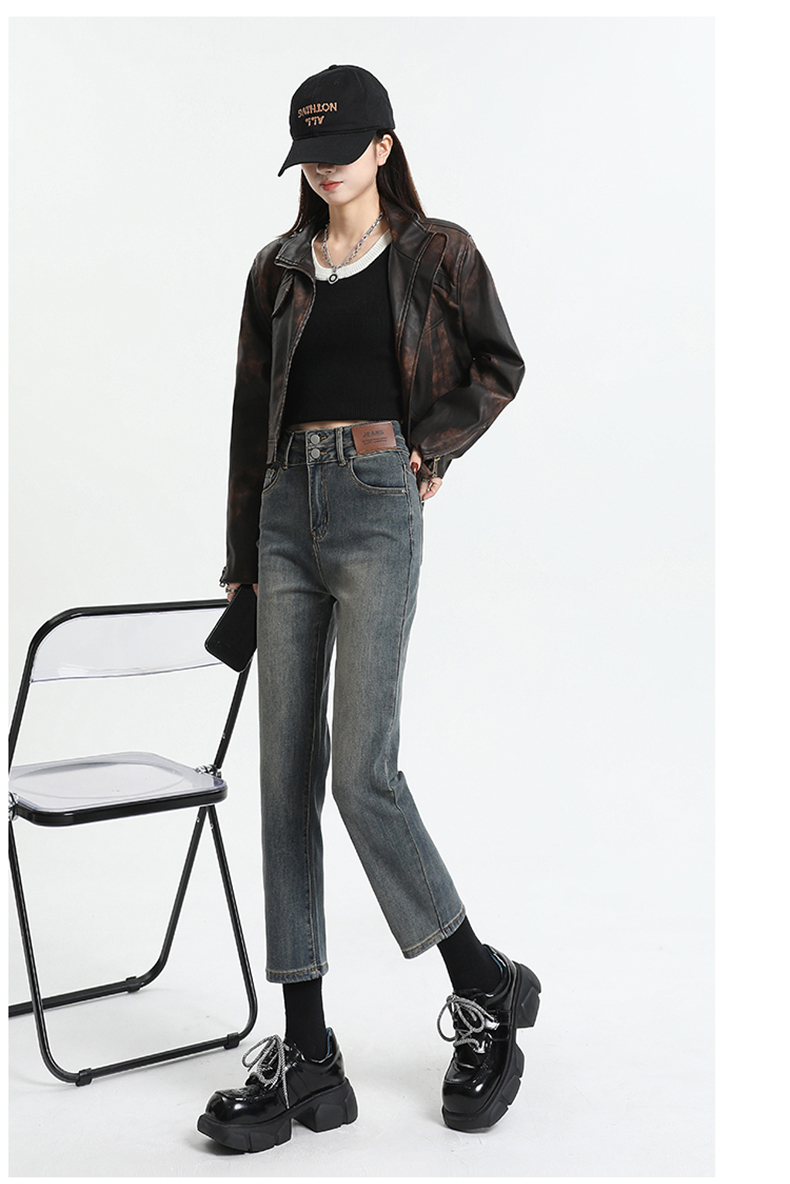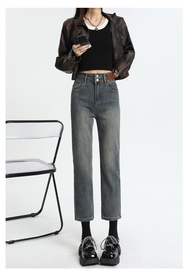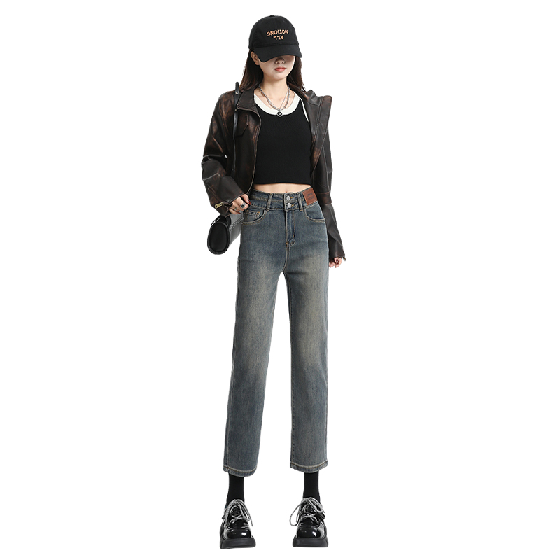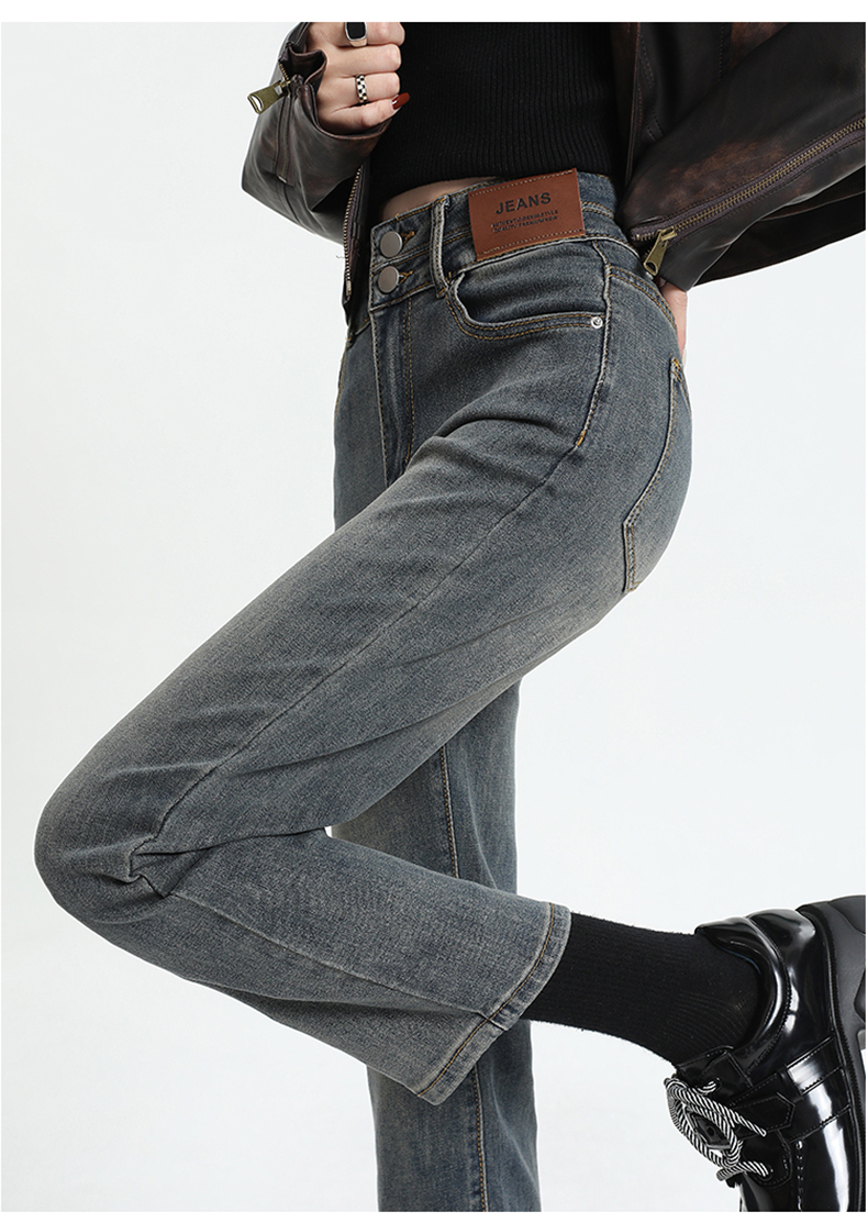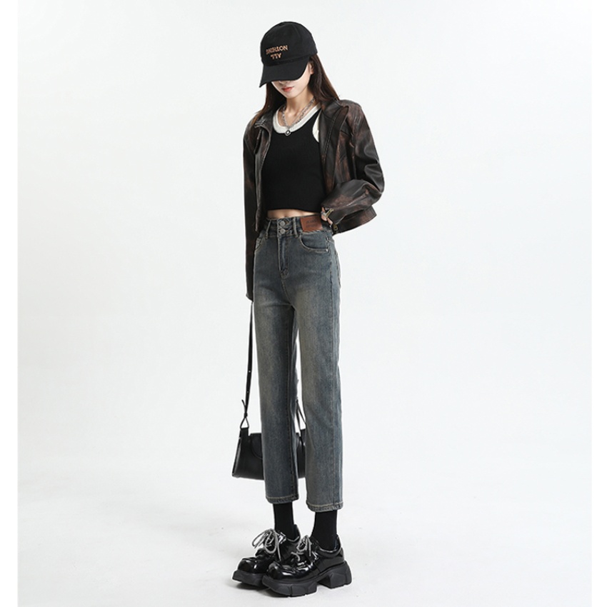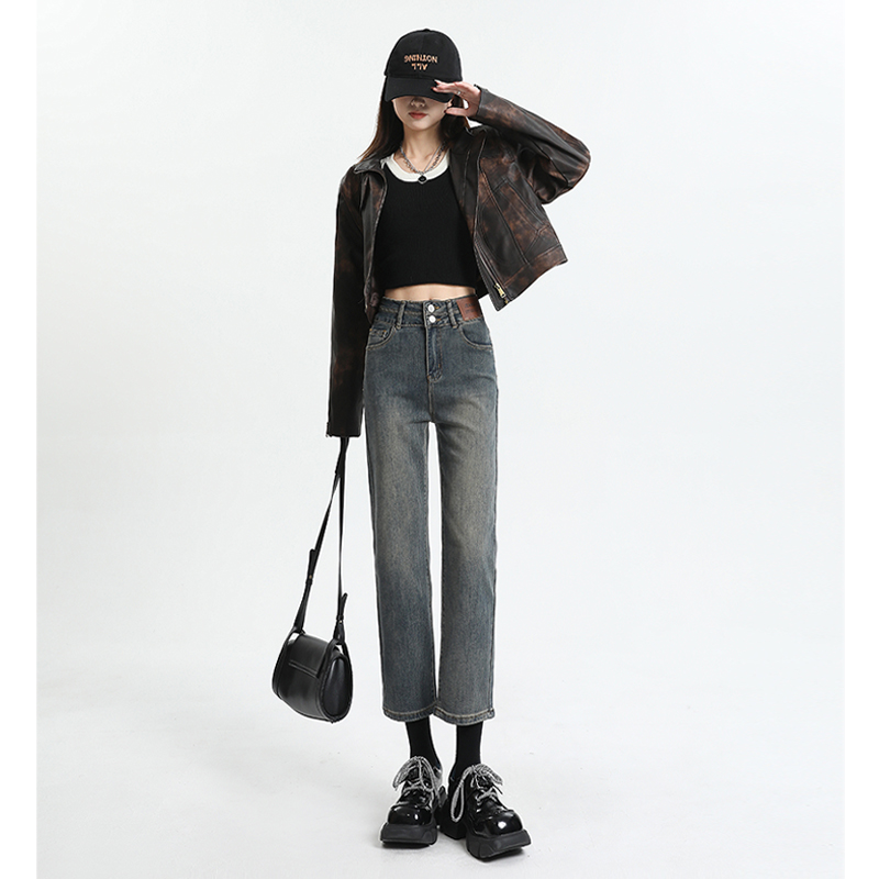 (鱼鳞)春秋设计感抽绳灰色直筒阔腿裤女装秋季新款高腰显瘦裤子