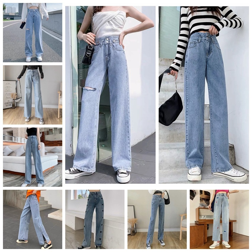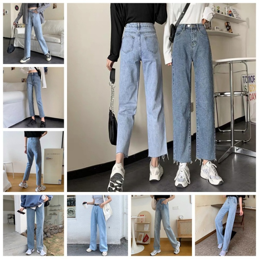 深蓝色复古牛仔裤女春秋季新款2023宽松百搭高腰显瘦直筒阔腿裤子