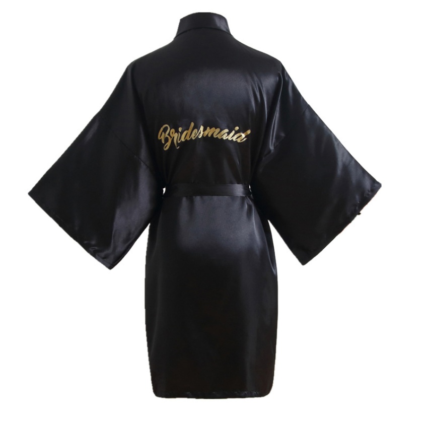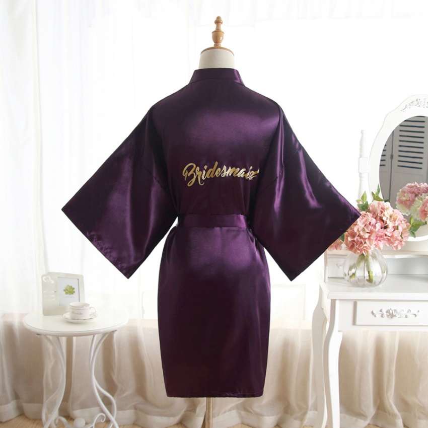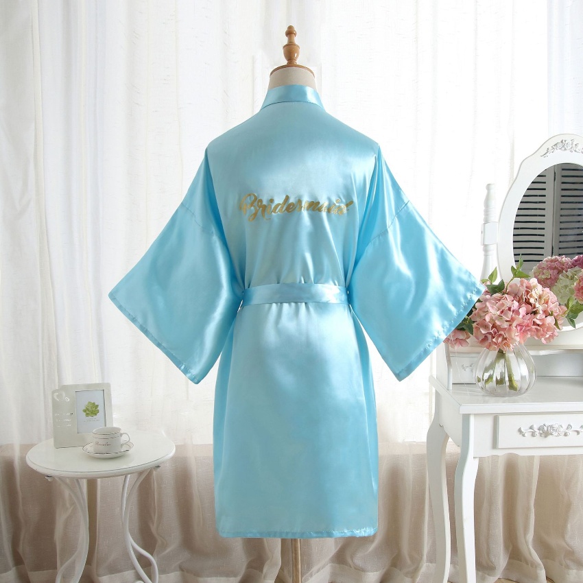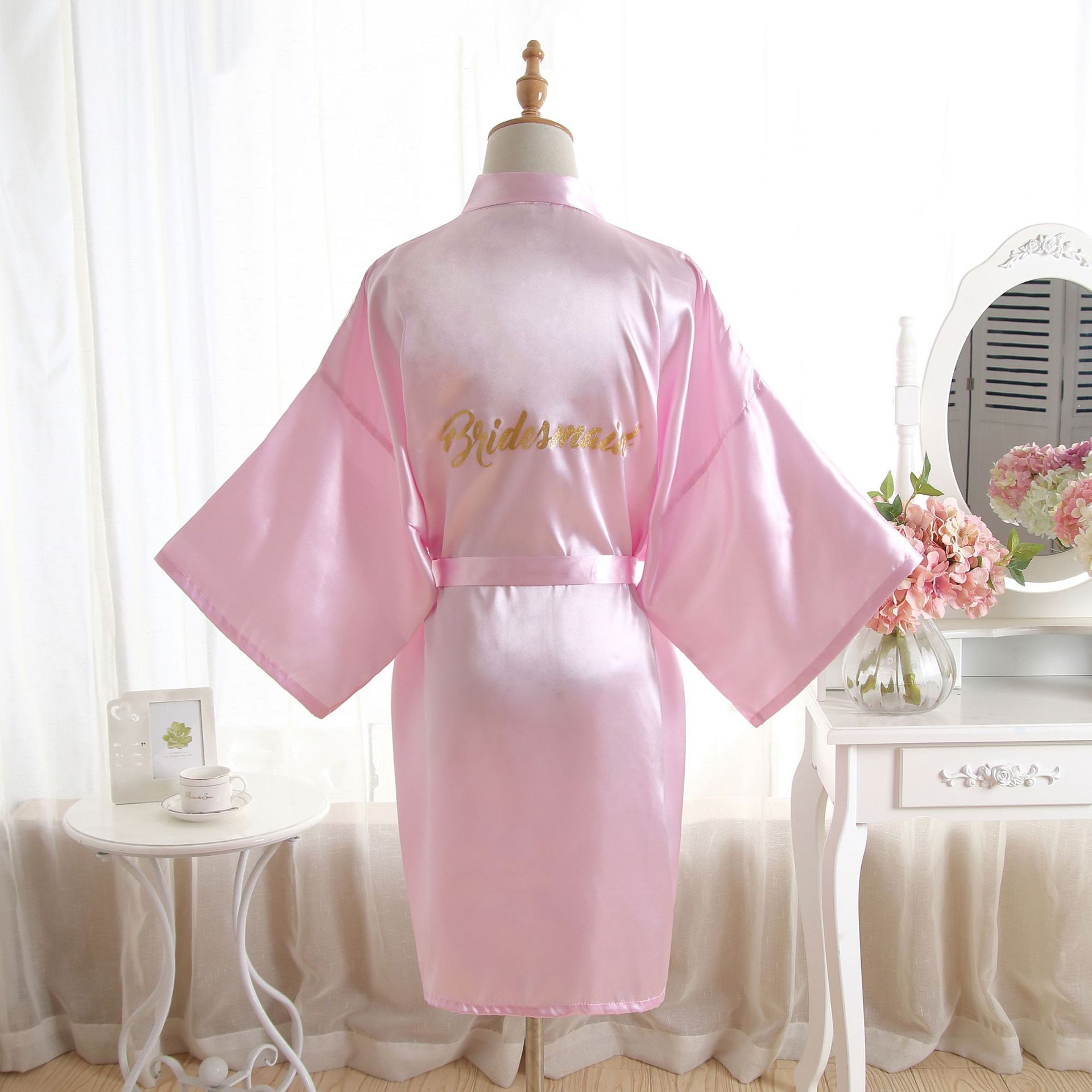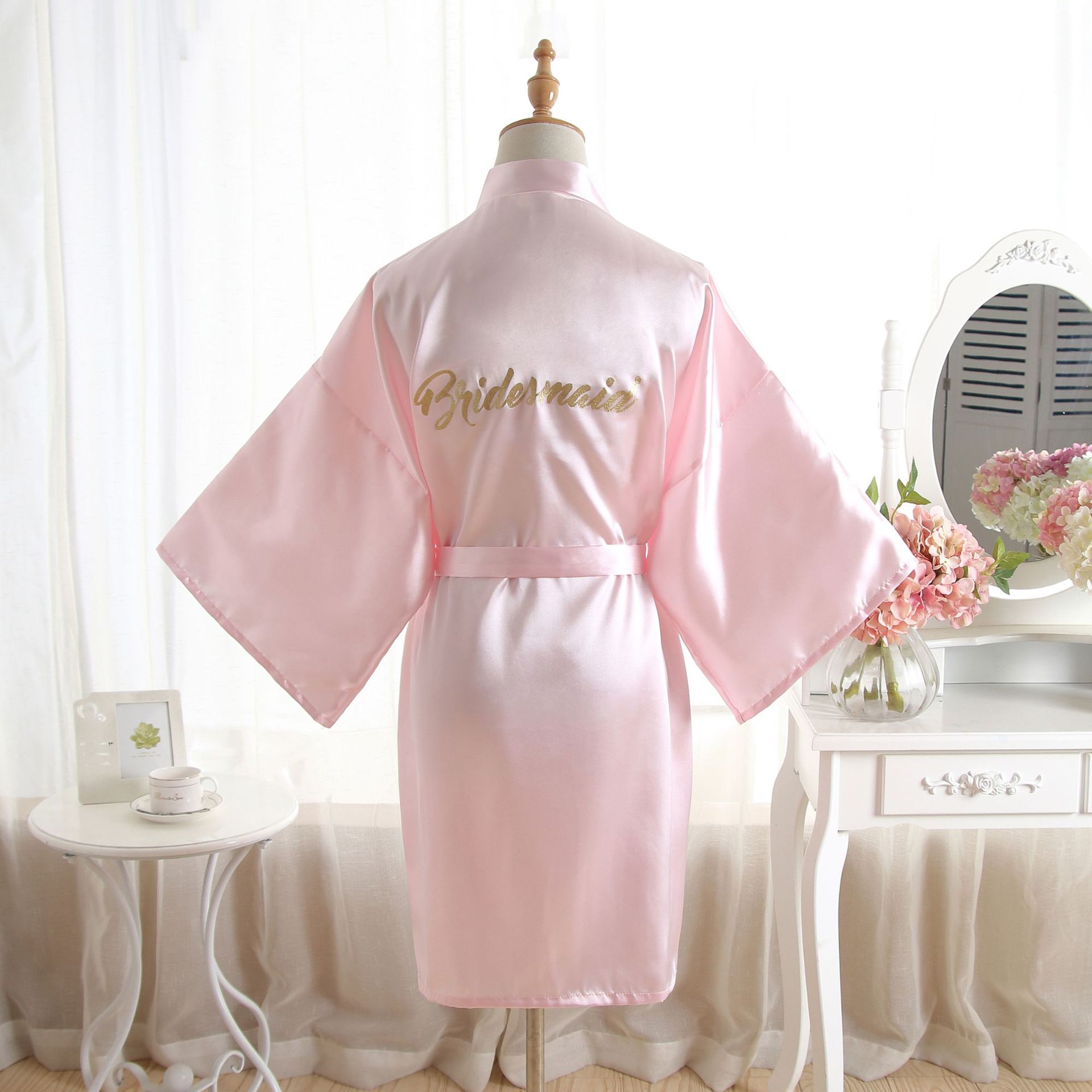 跨境纯色烫金粉伴娘Bridesmaid婚庆晨袍化妆袍睡袍女士新娘开衫