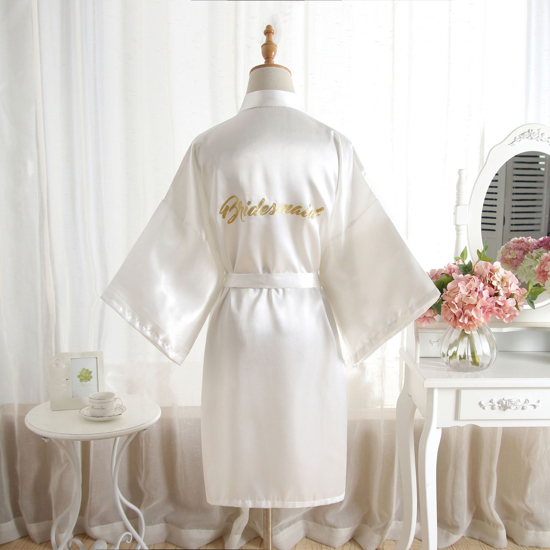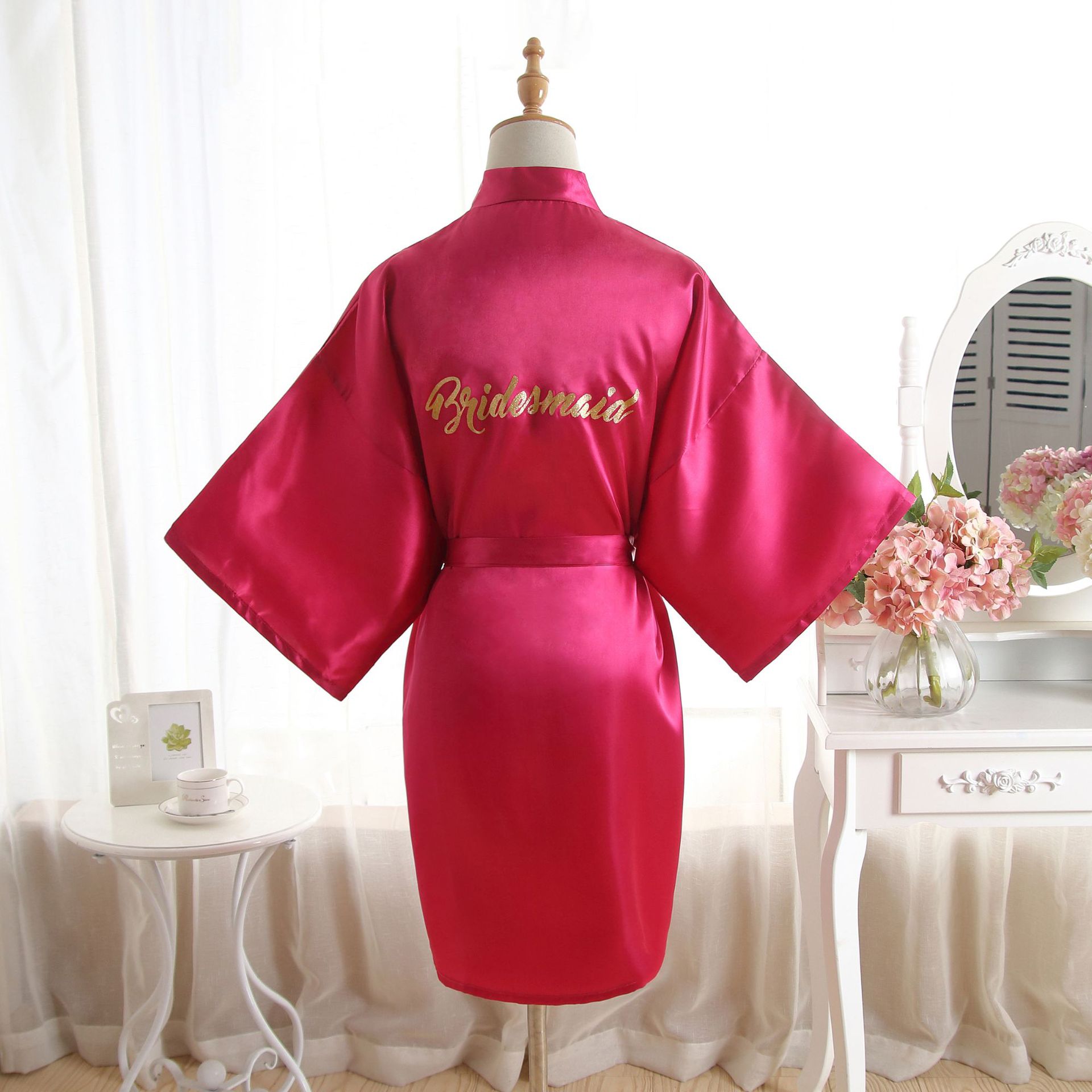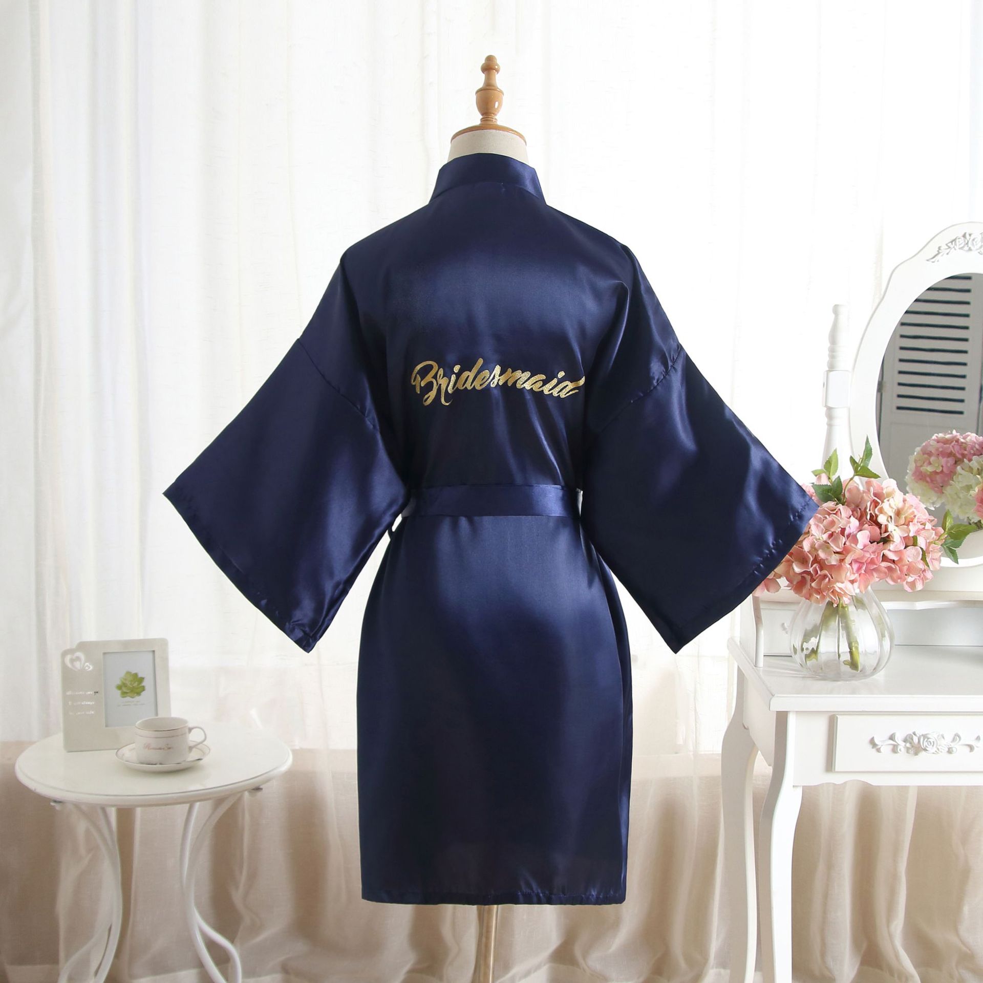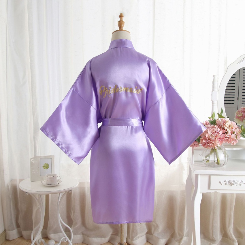 跨境纯色烫金粉伴娘Bridesmaid婚庆晨袍化妆袍睡袍女士新娘开衫