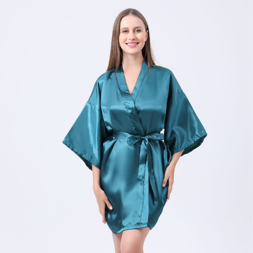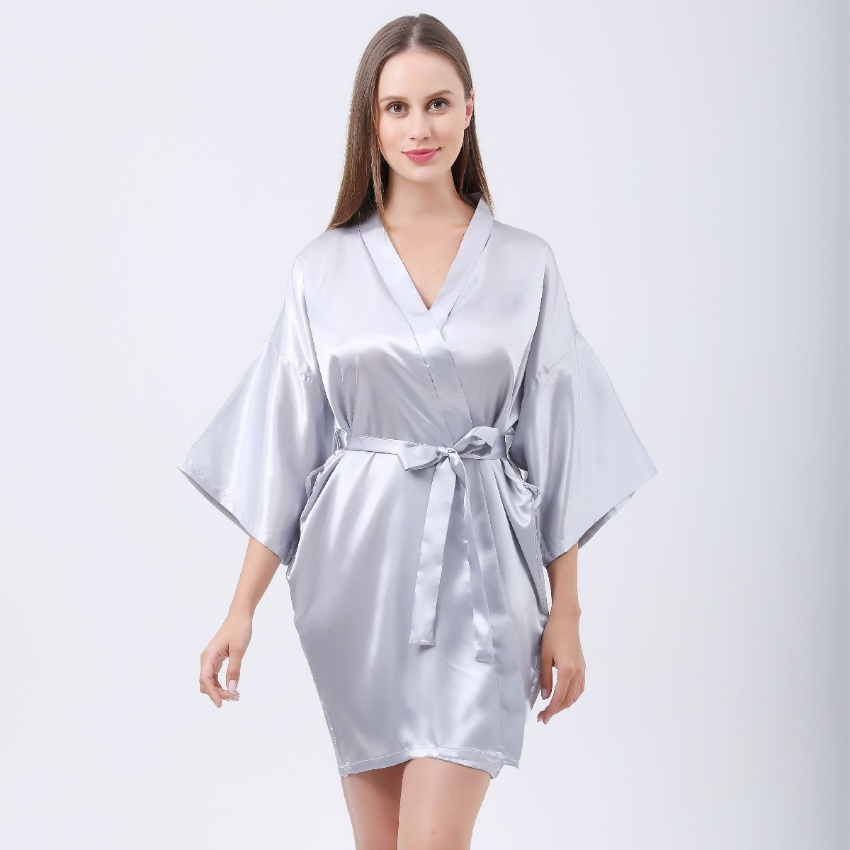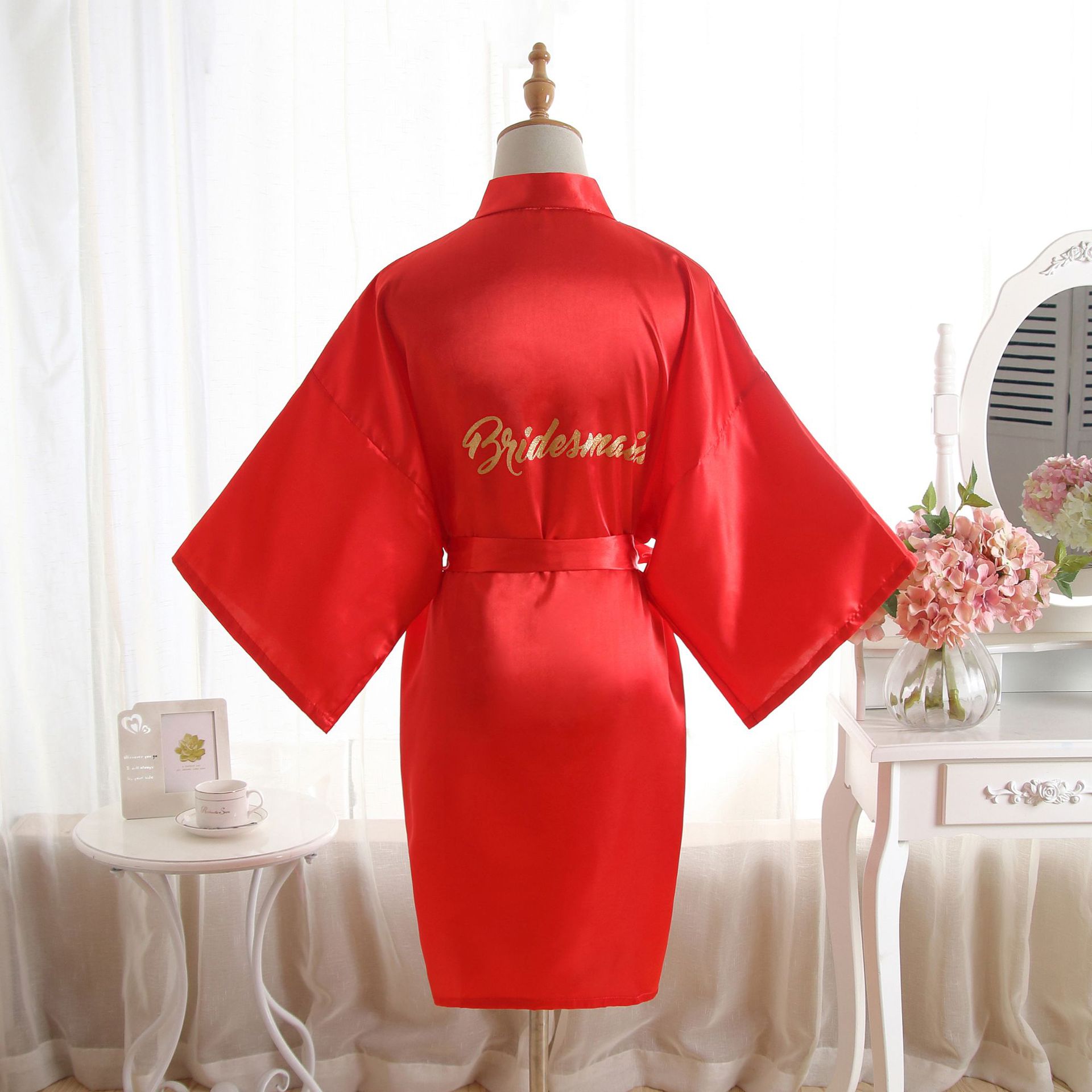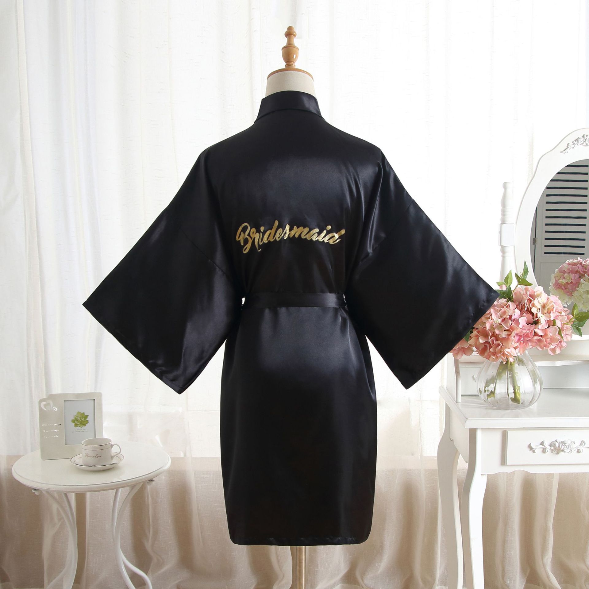 跨境纯色烫金粉伴娘Bridesmaid婚庆晨袍化妆袍睡袍女士新娘开衫