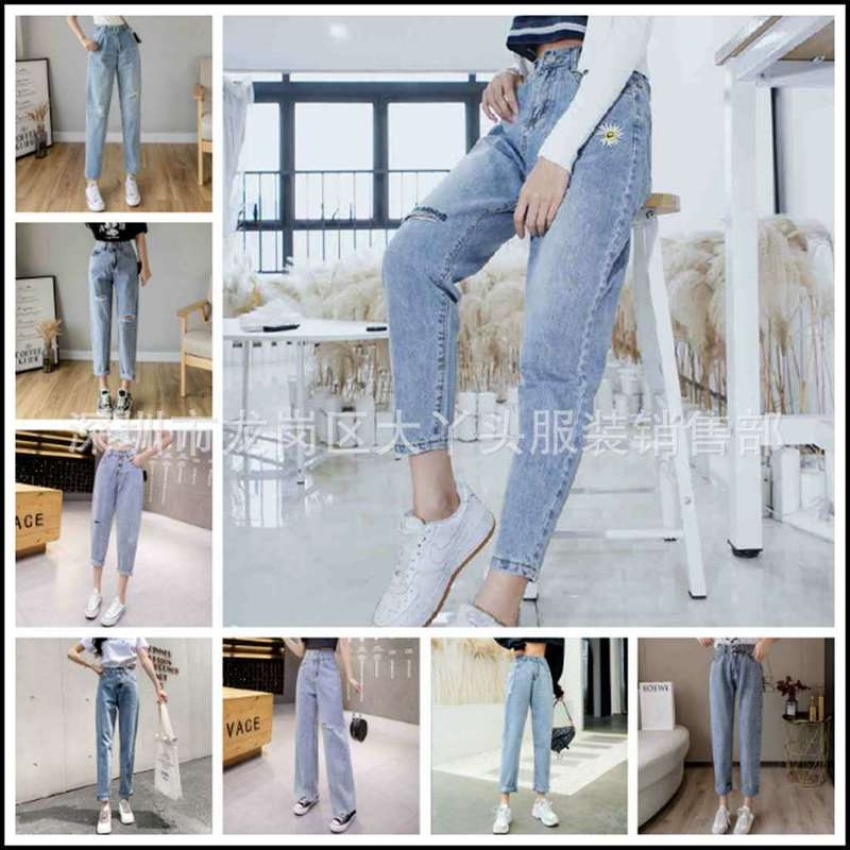 热销款女装牛仔长裤女四季老爹裤小脚宽松高腰阔腿裤杂款服装尾货地摊货源批发