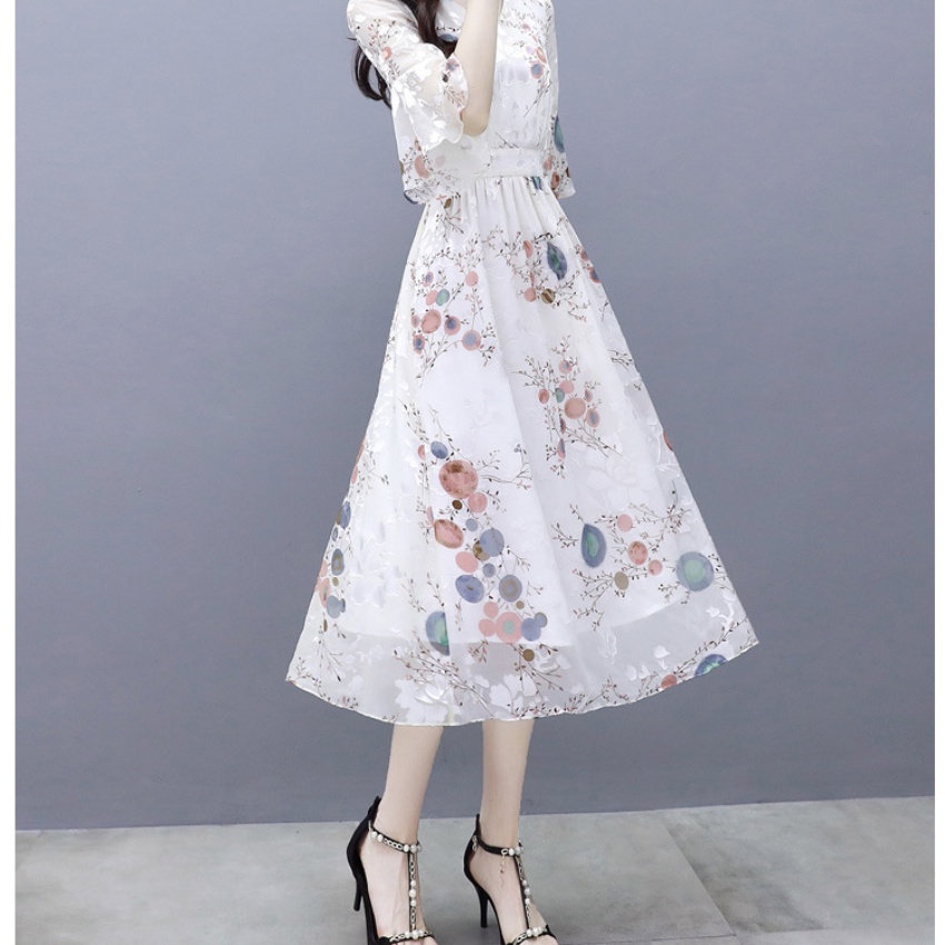 2023年新款夏季法式复古高级感长裙休闲气质仙女薄款碎花连衣裙子