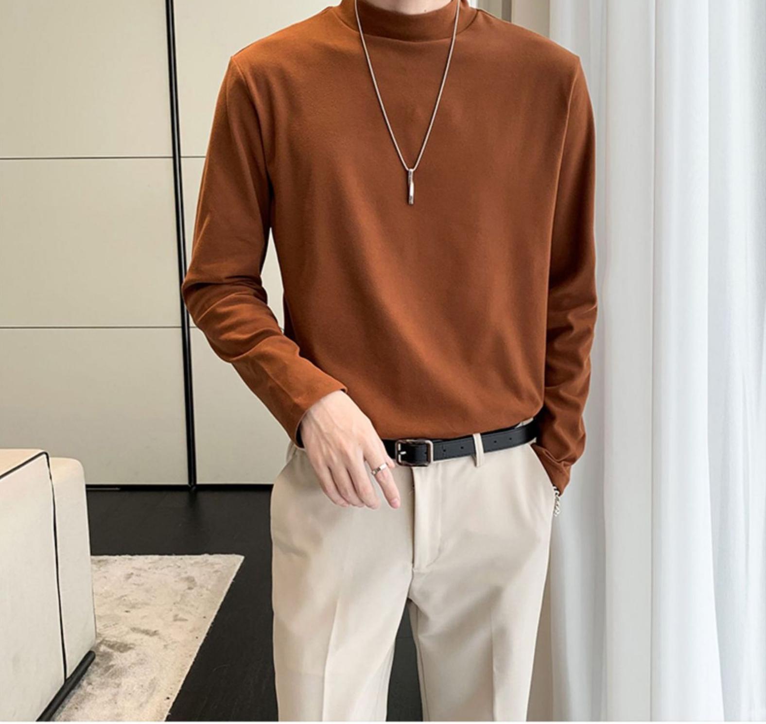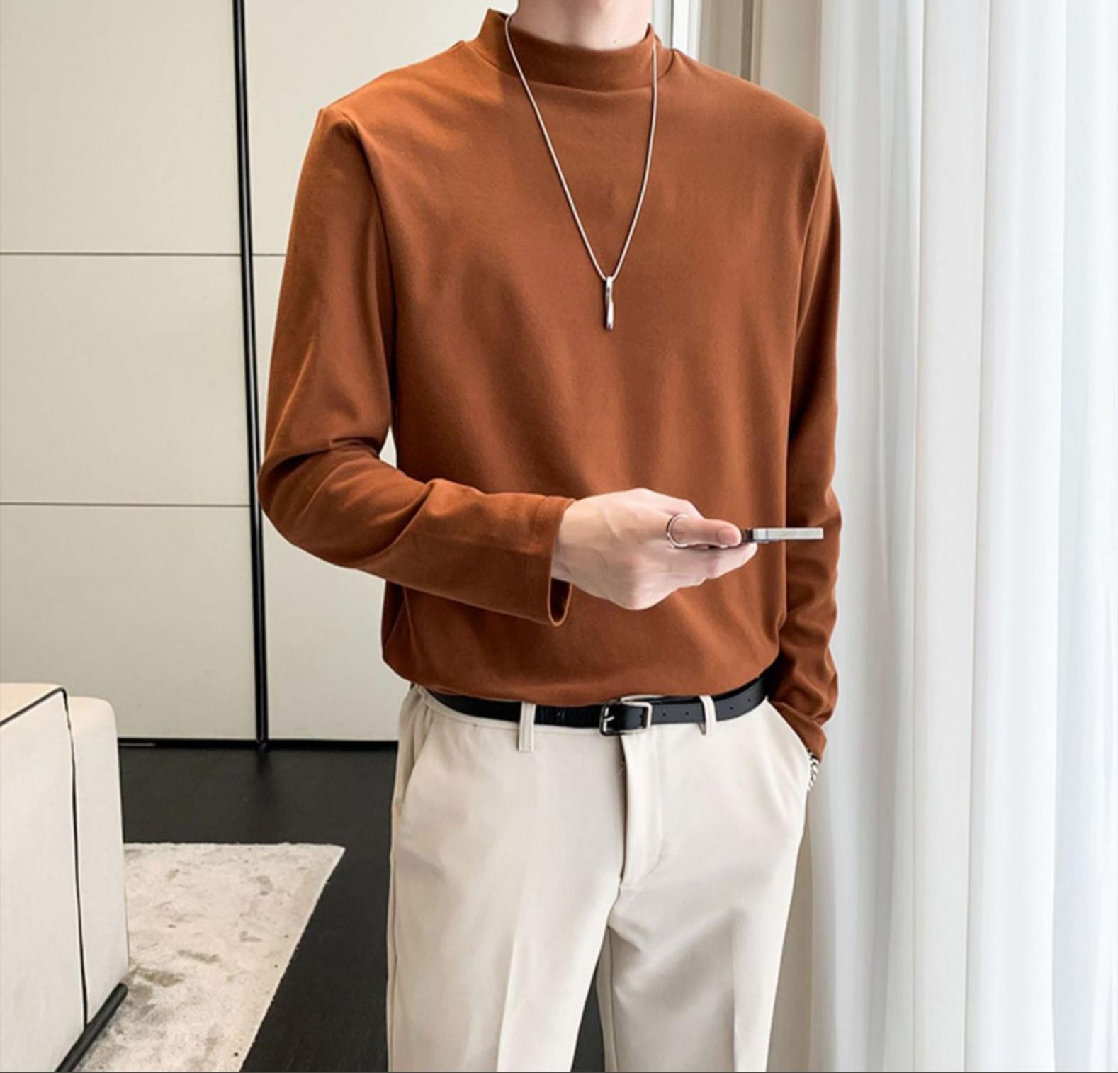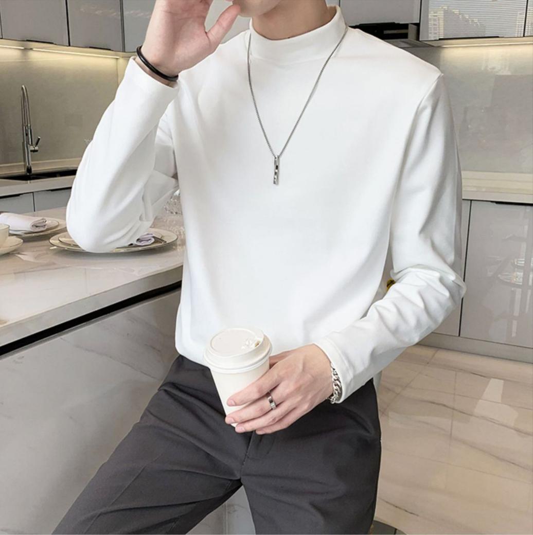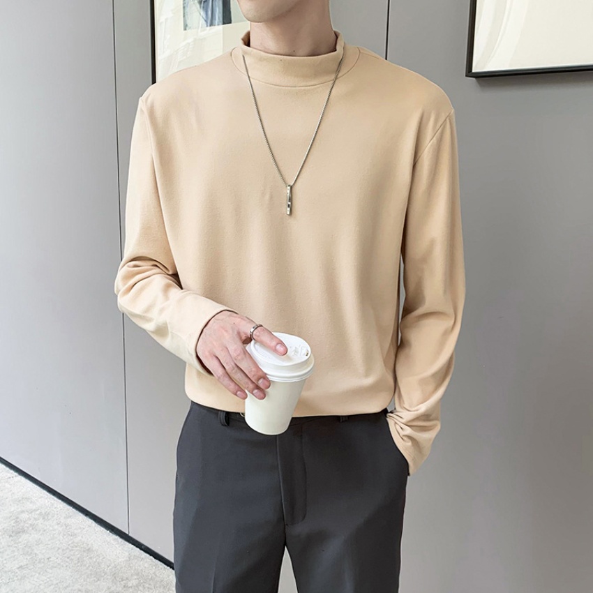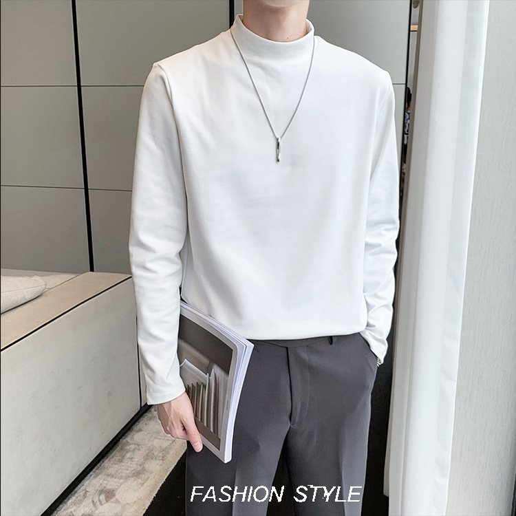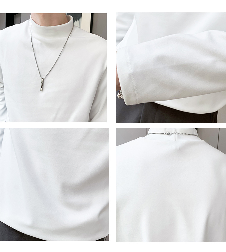 德绒男士长袖t恤秋冬季潮牌修身半高领打底衫保暖内搭纯色简约上衣男装