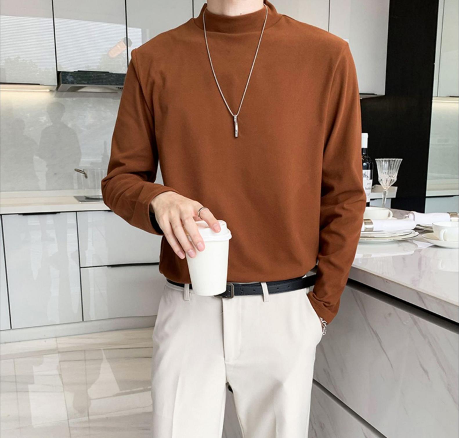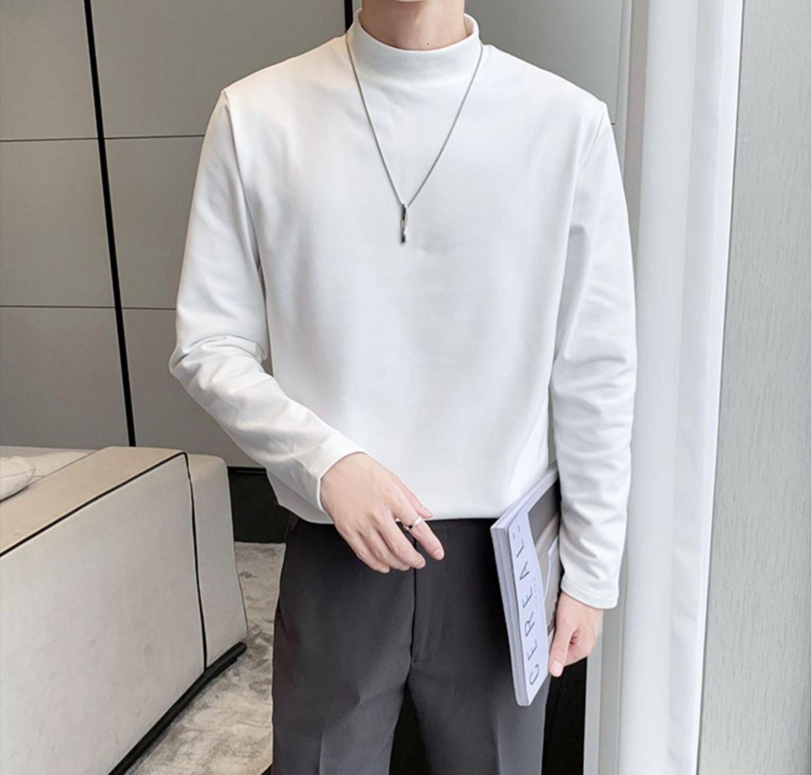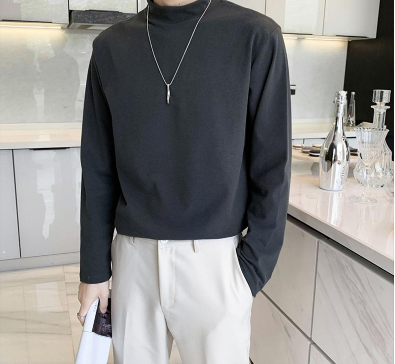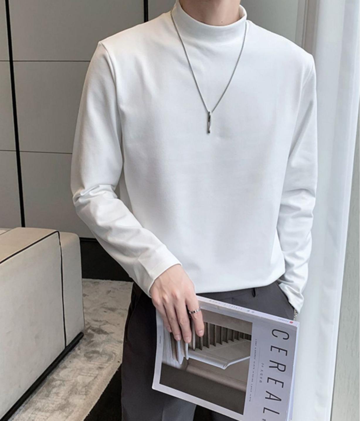 德绒男士长袖t恤秋冬季潮牌修身半高领打底衫保暖内搭纯色简约上衣男装