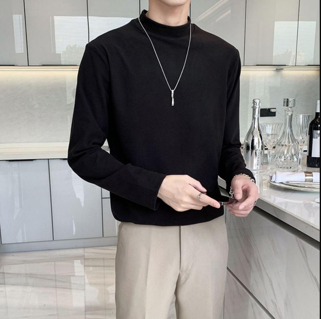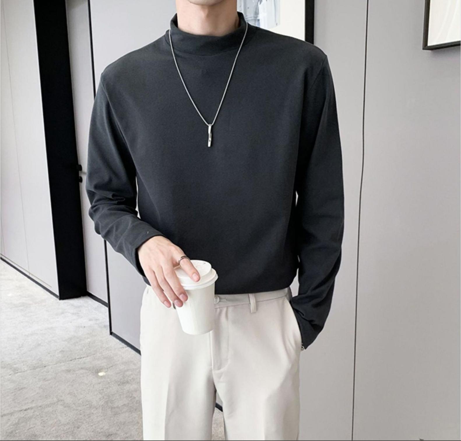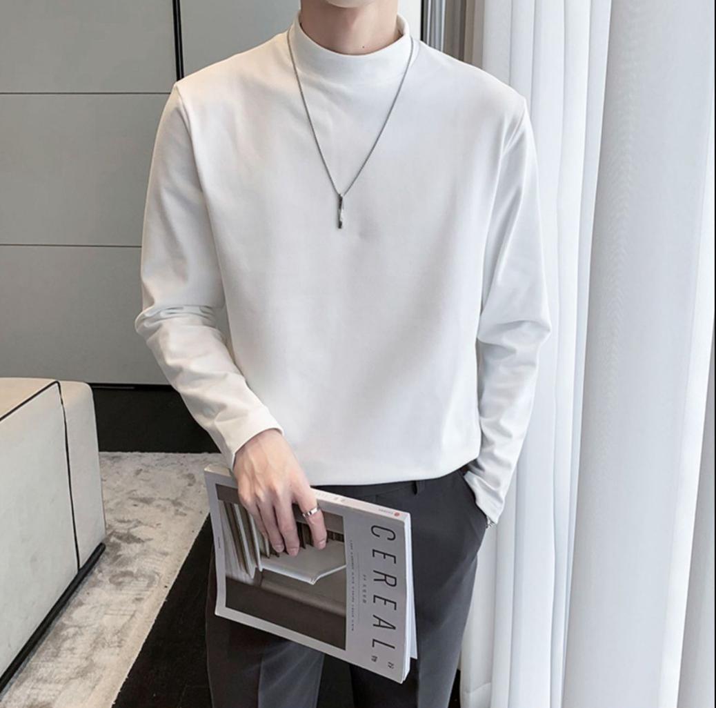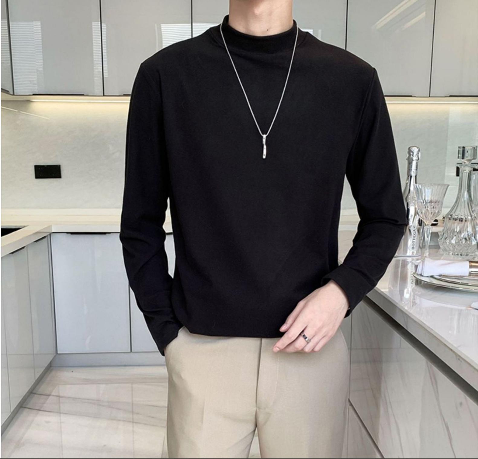 德绒男士长袖t恤秋冬季潮牌修身半高领打底衫保暖内搭纯色简约上衣男装