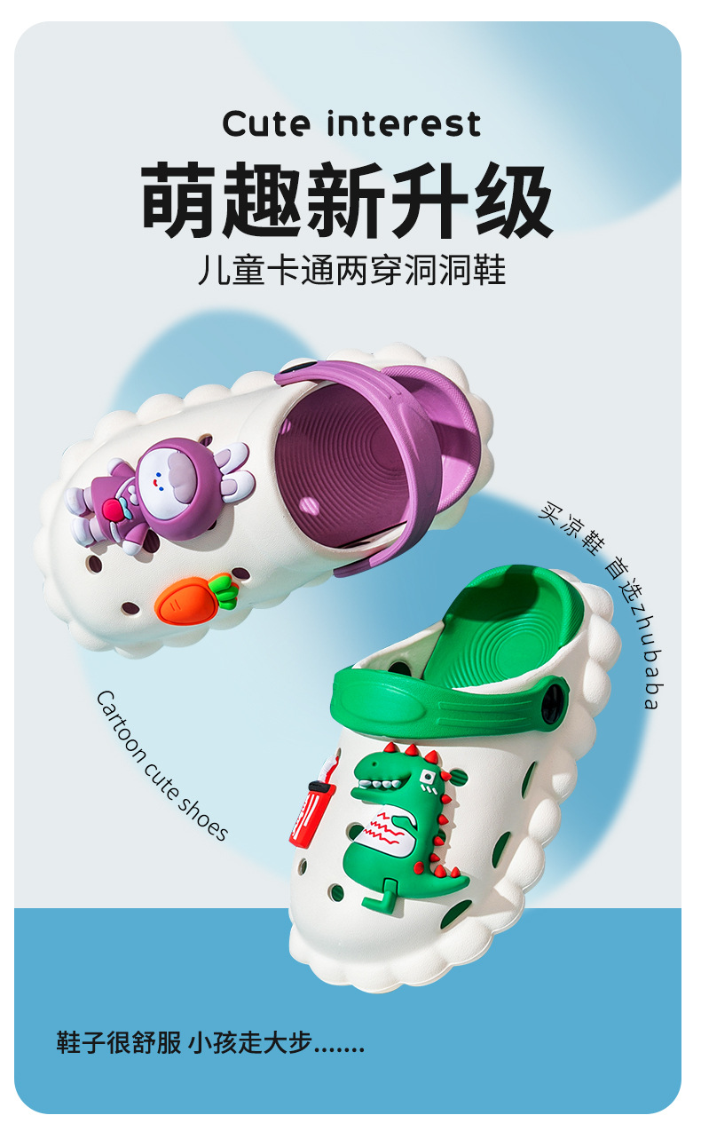 夏季新款卡通儿童拖鞋家居室内外鞋男童洞洞鞋宝宝防滑女童凉拖鞋