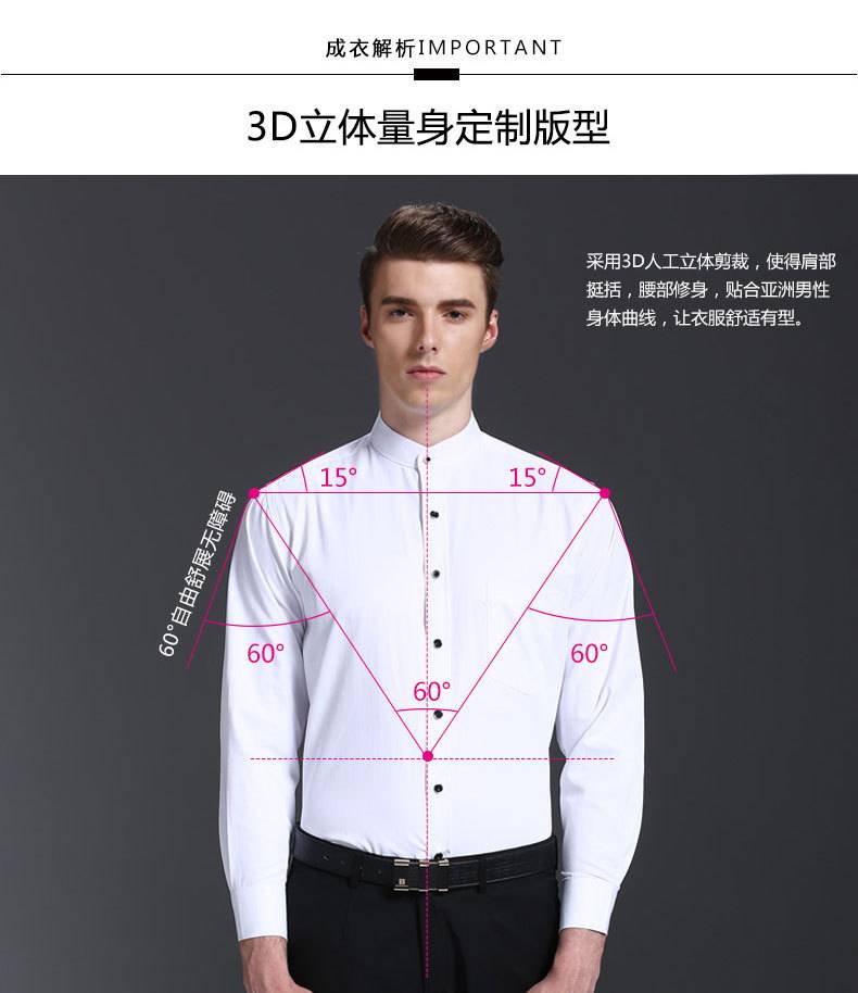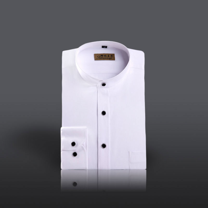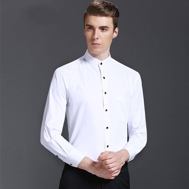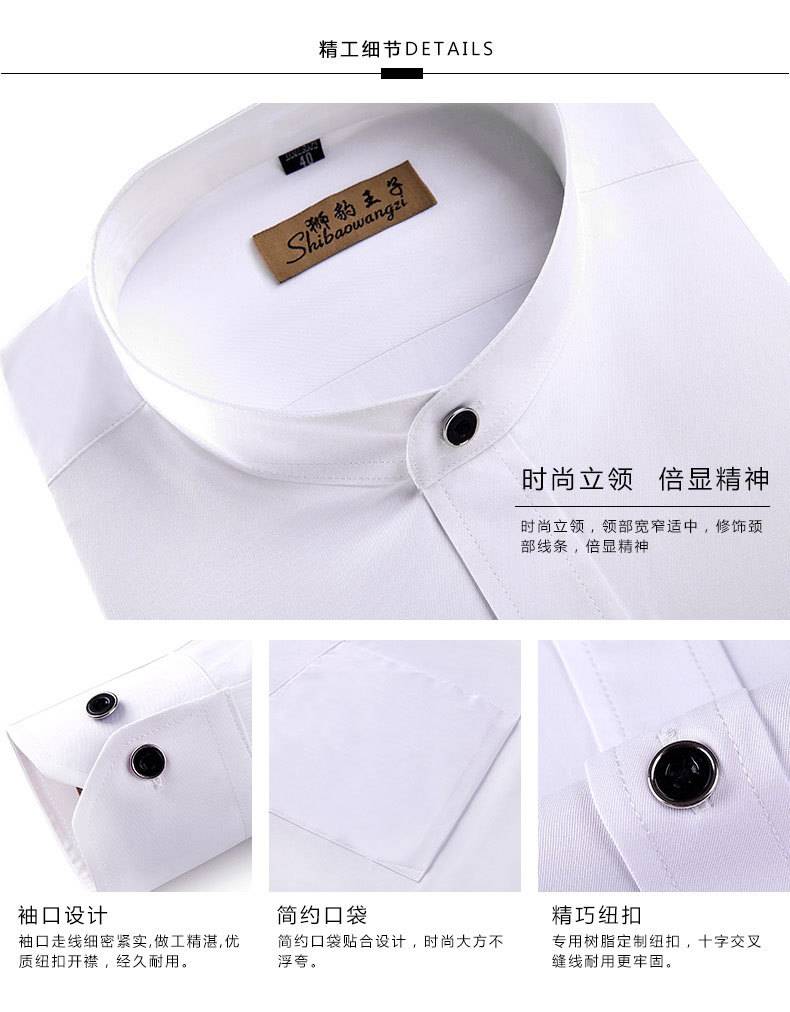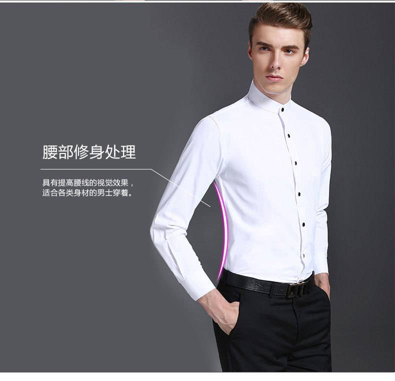 中华立领衬衫男圆领商务修身白色斜纹棉免烫衬衣中国风