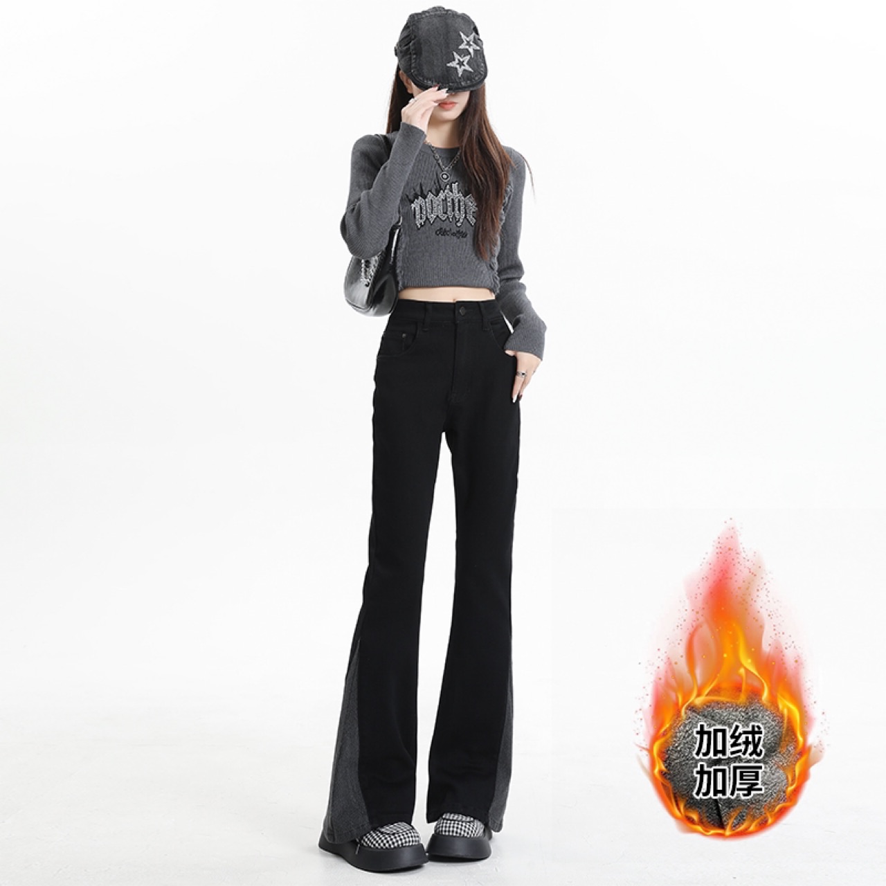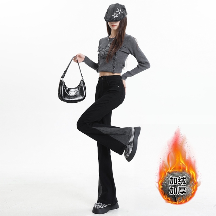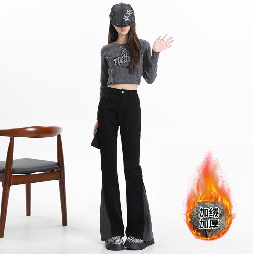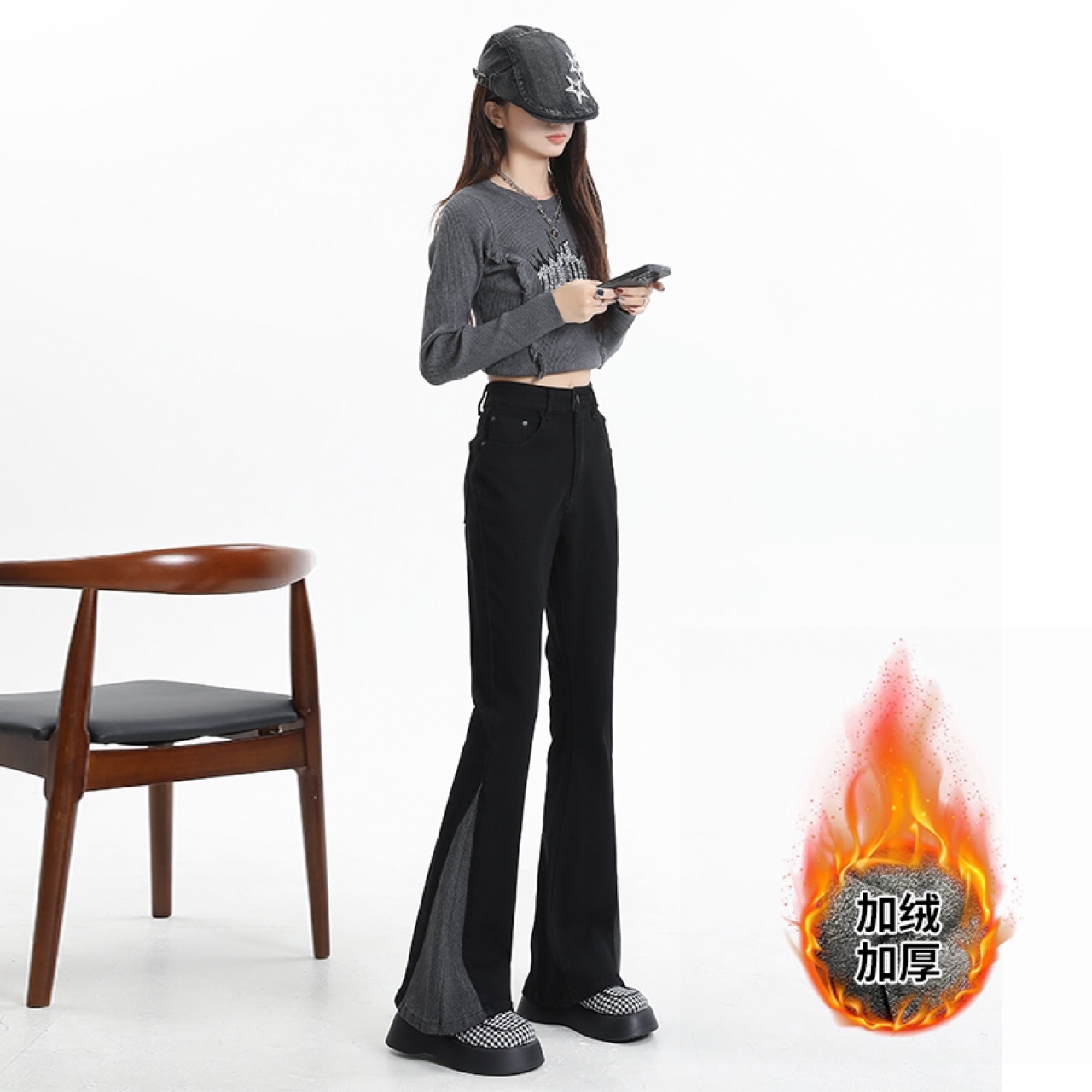 【拼接植绒】黑色火山绒 高品质加绒加厚喇叭裤辣妹长裤