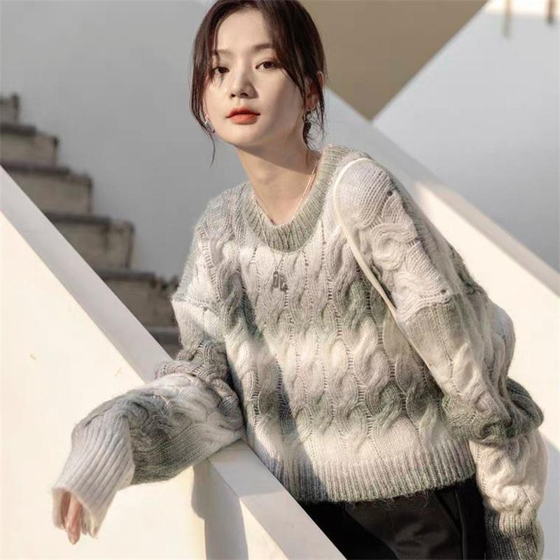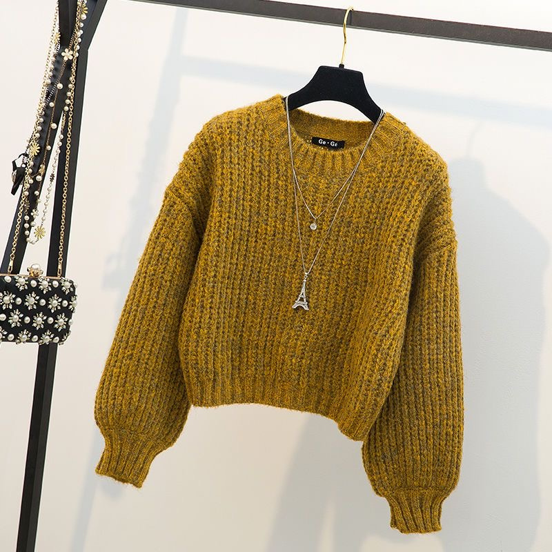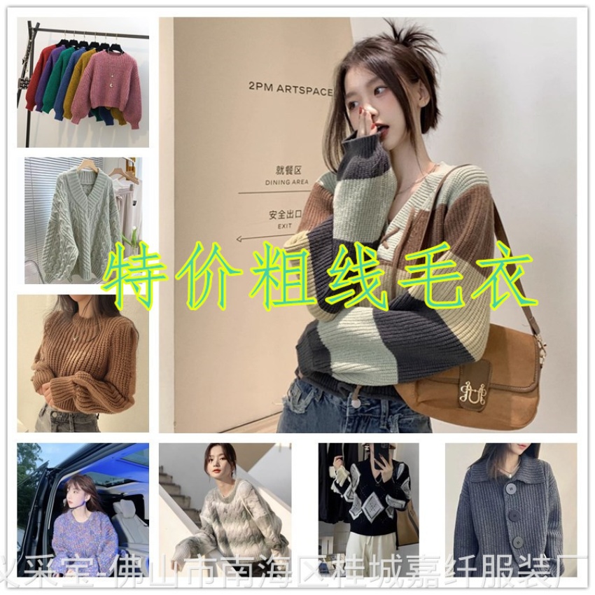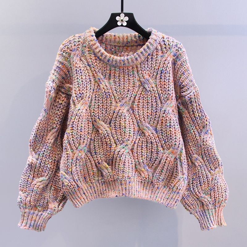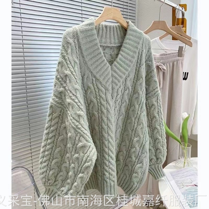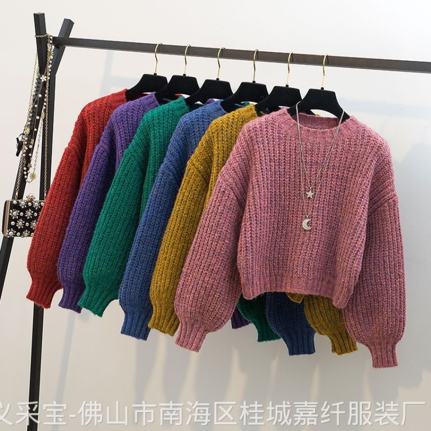 2026秋冬套头针织毛衣新款女装圆领毛衣宽松外穿慵懒风地摊批发网