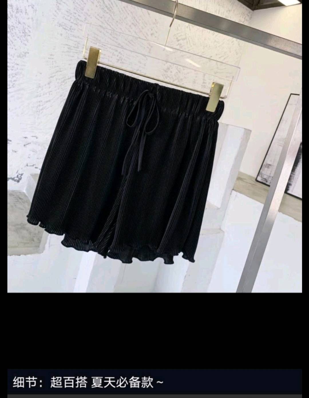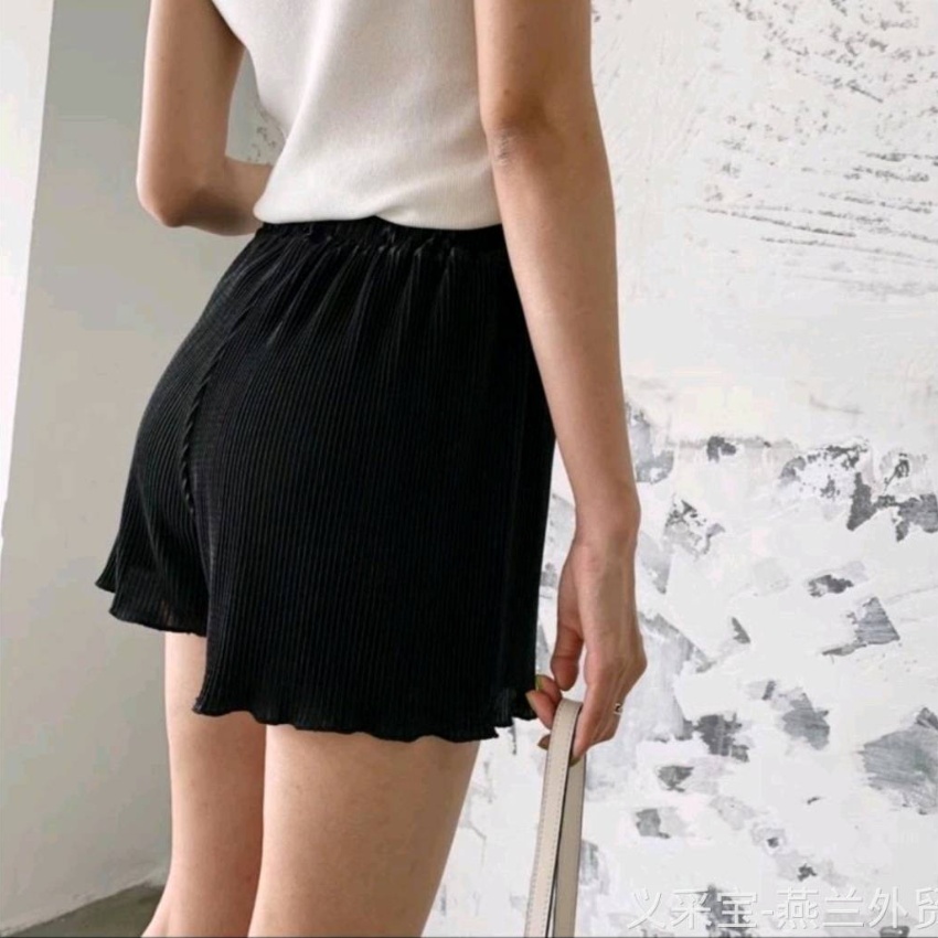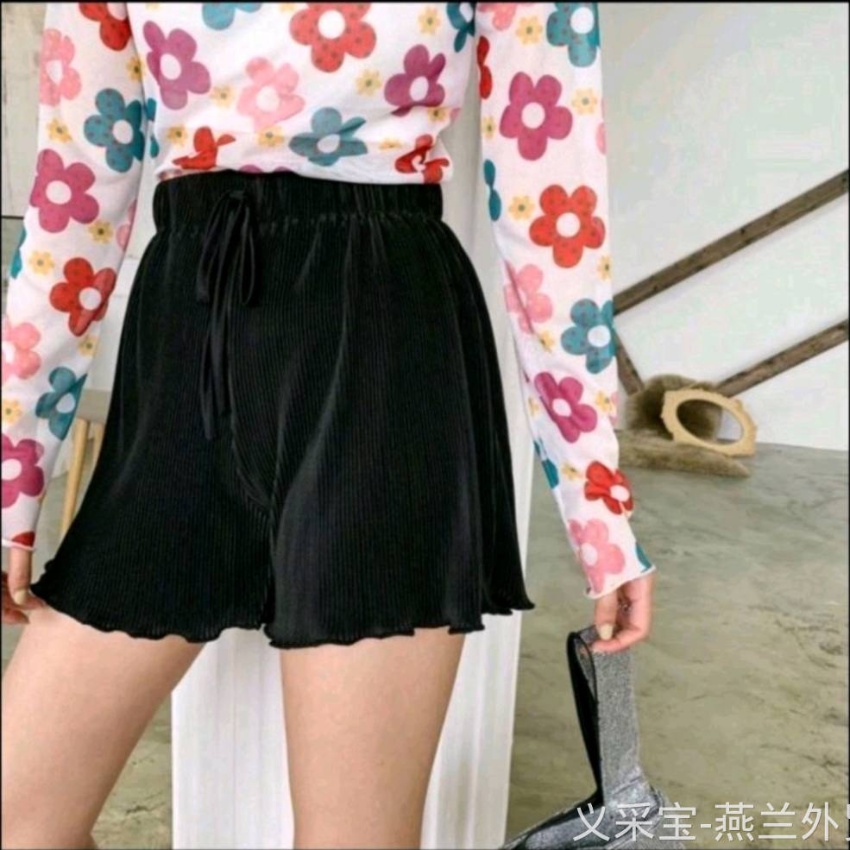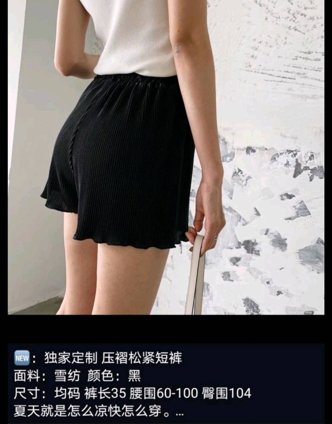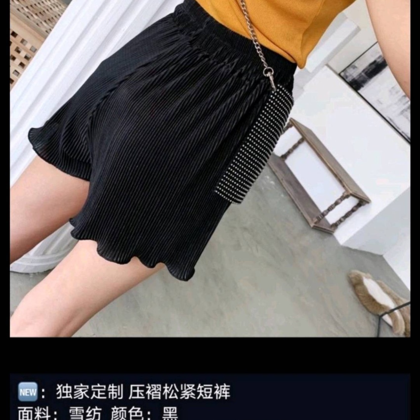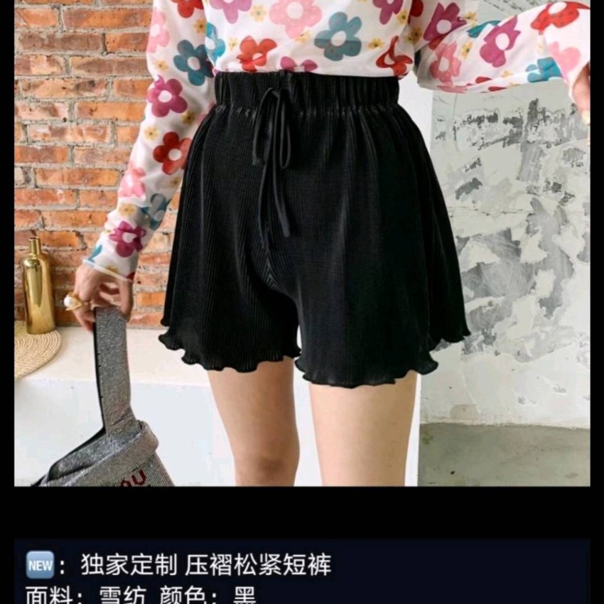 纸片人压褶松紧短裤