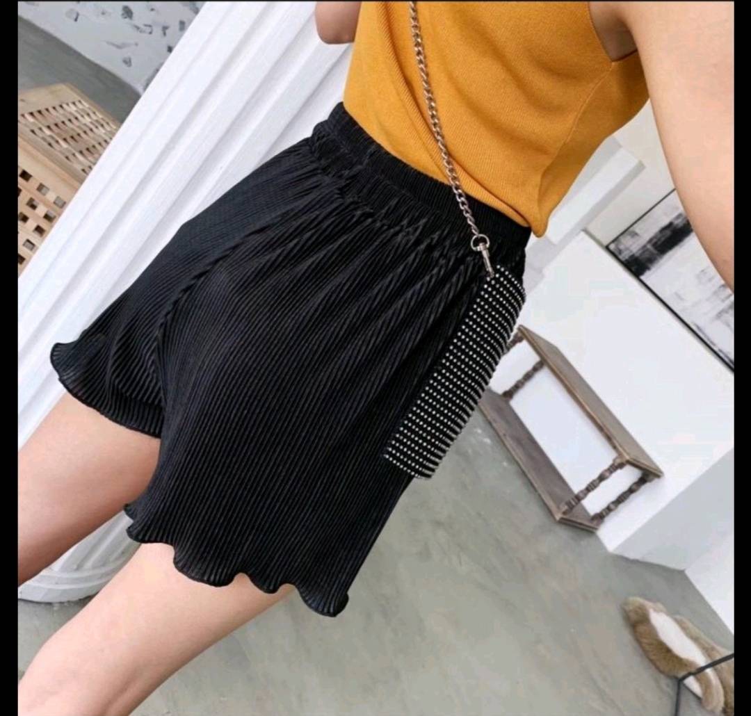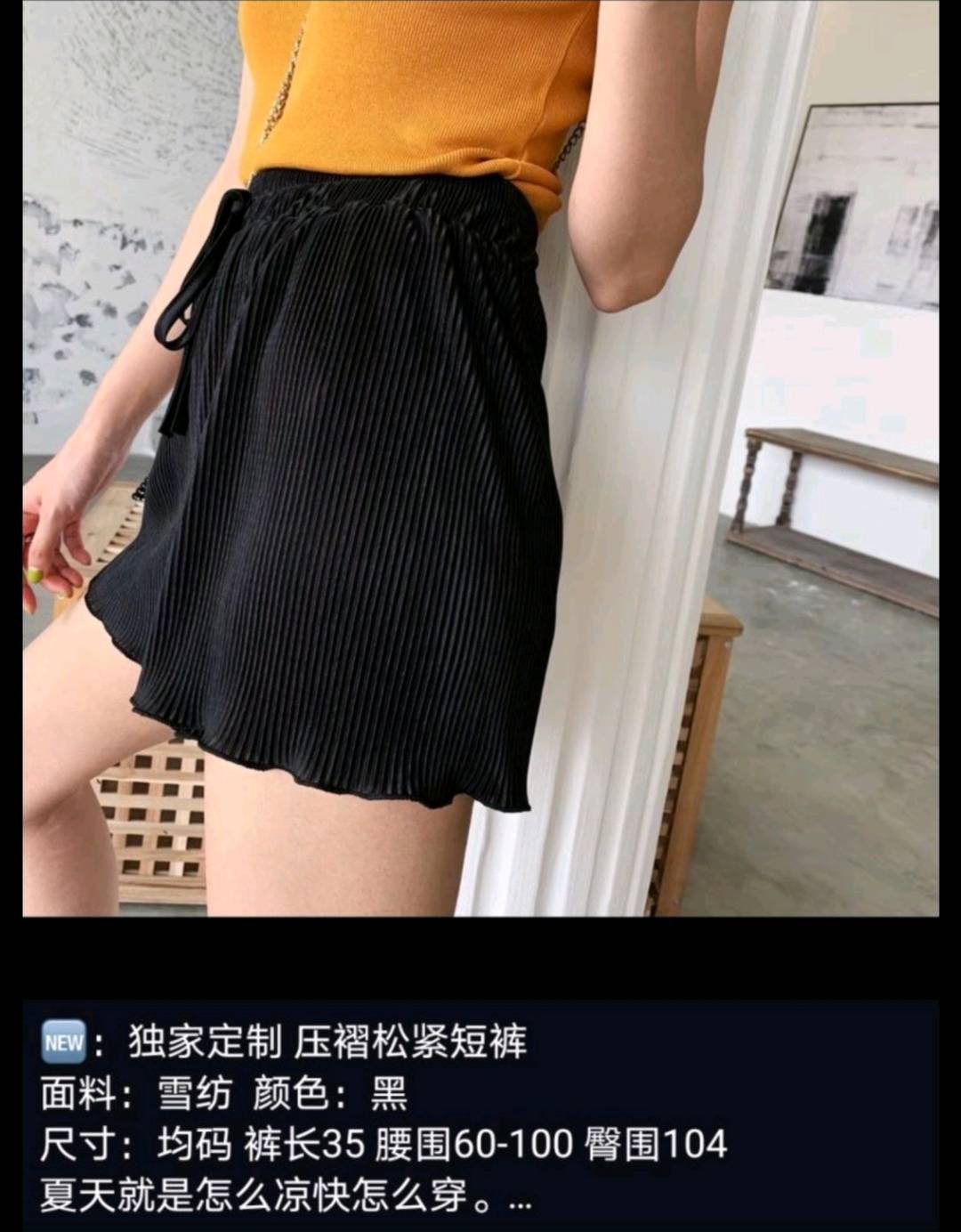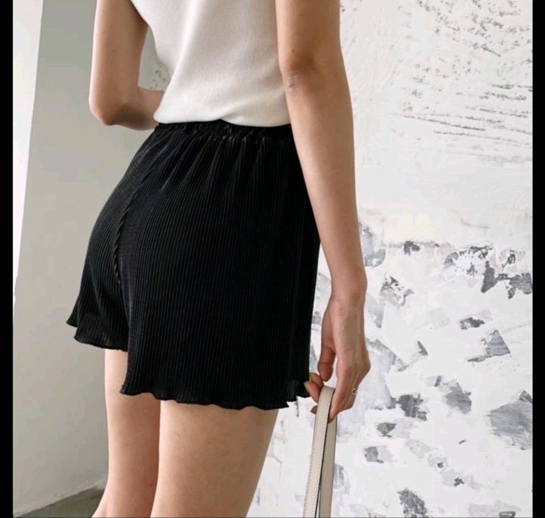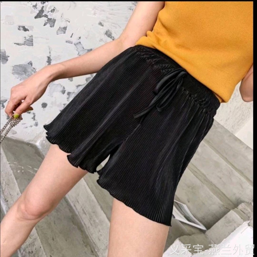 纸片人压褶松紧短裤