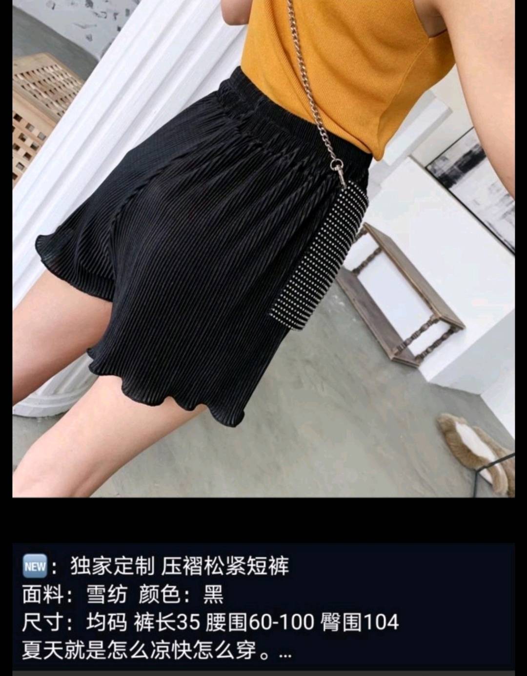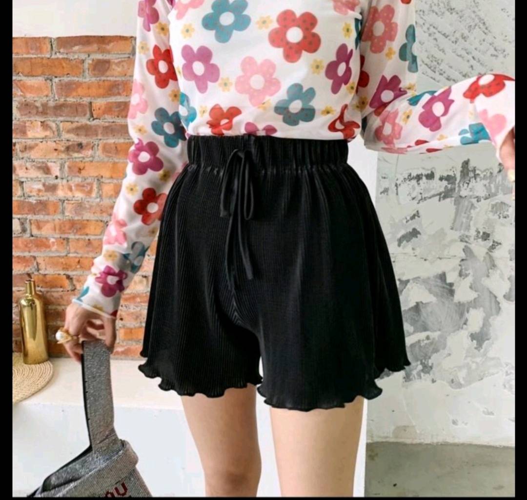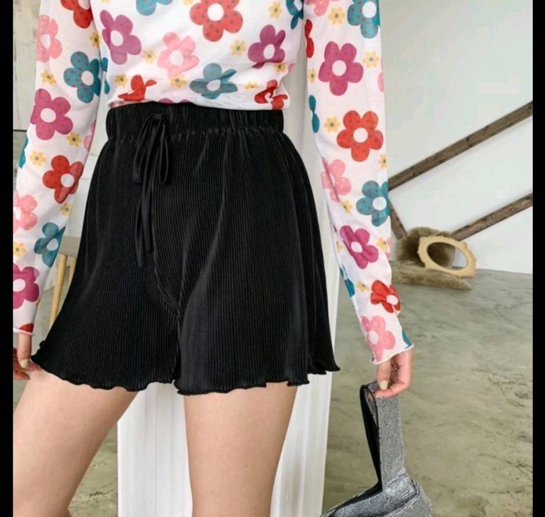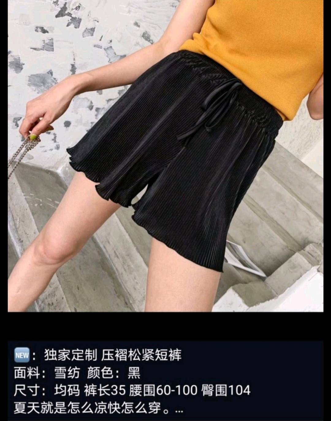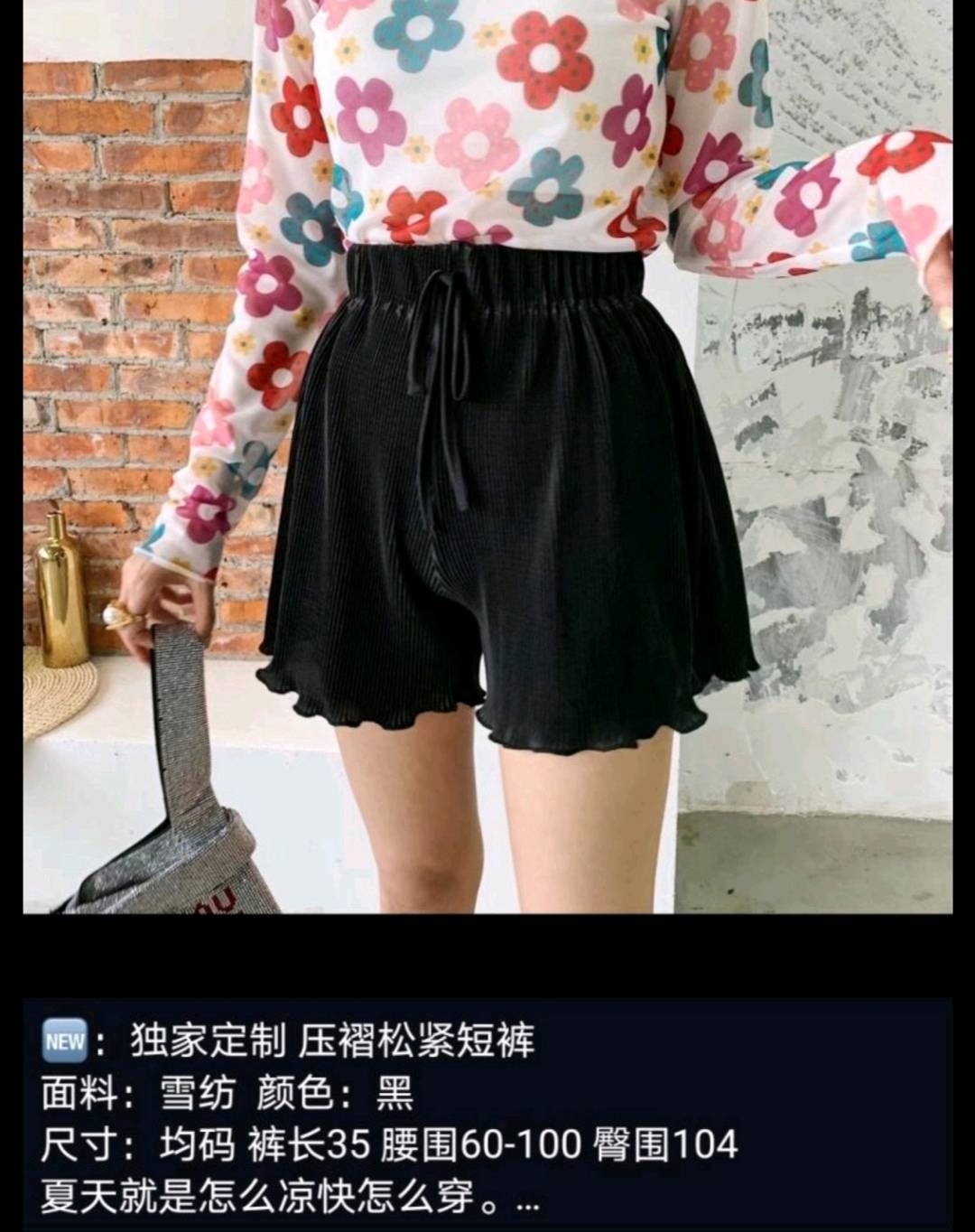 纸片人压褶松紧短裤