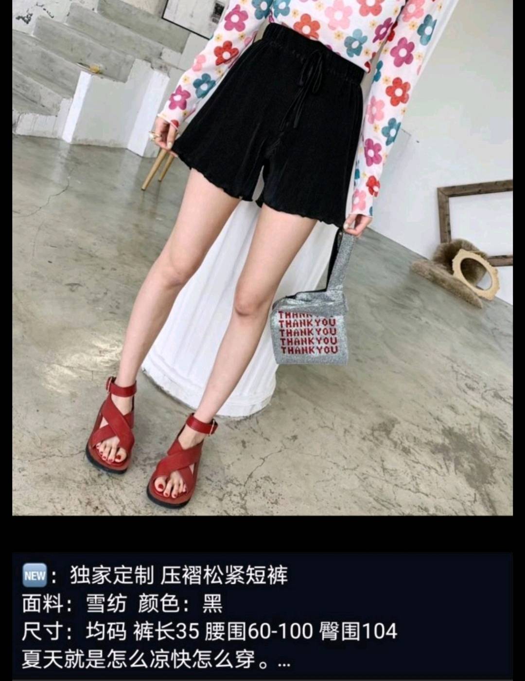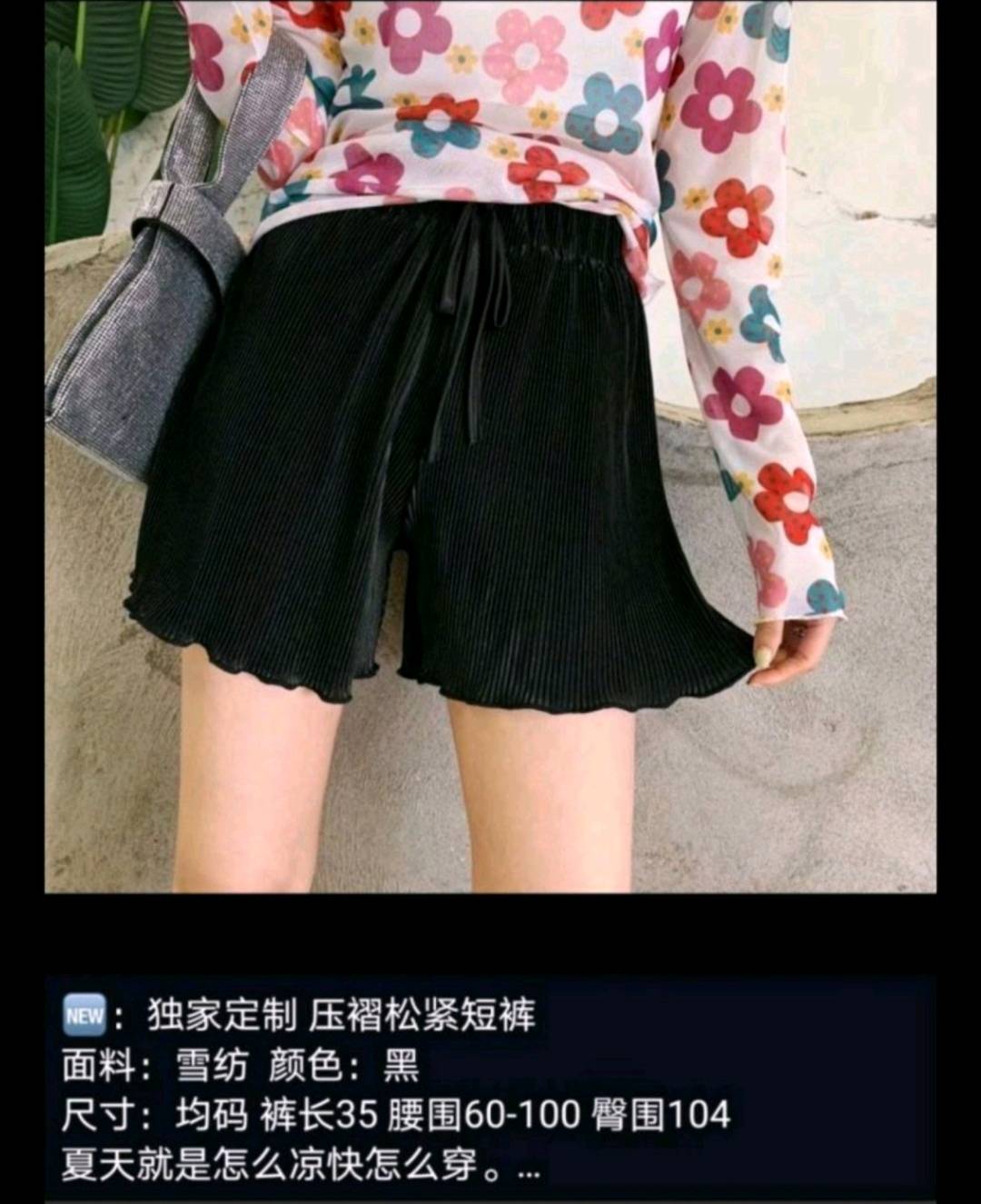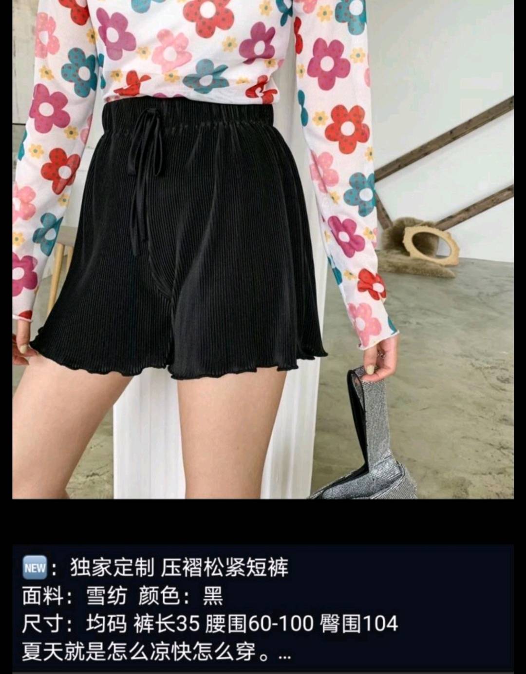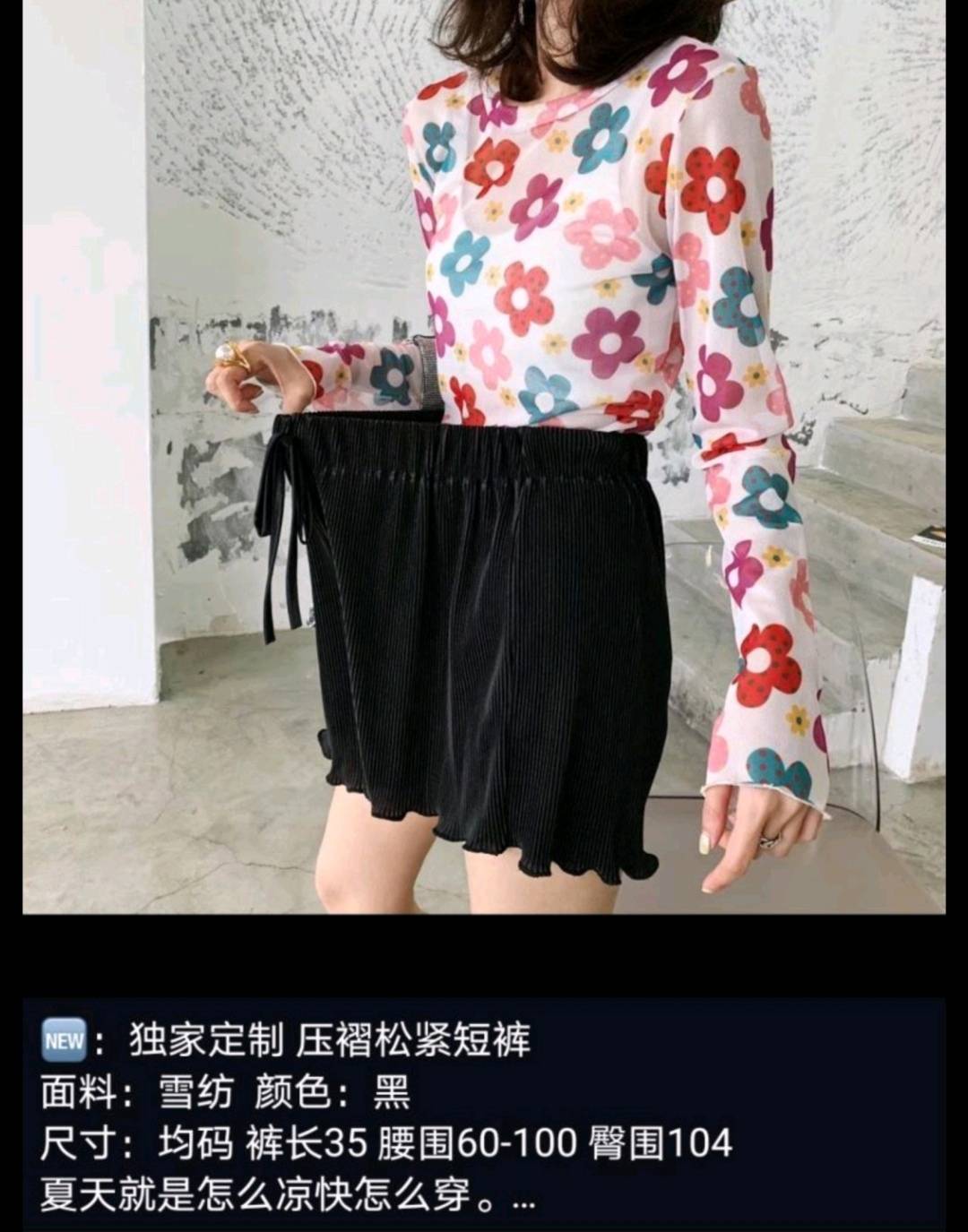 纸片人压褶松紧短裤