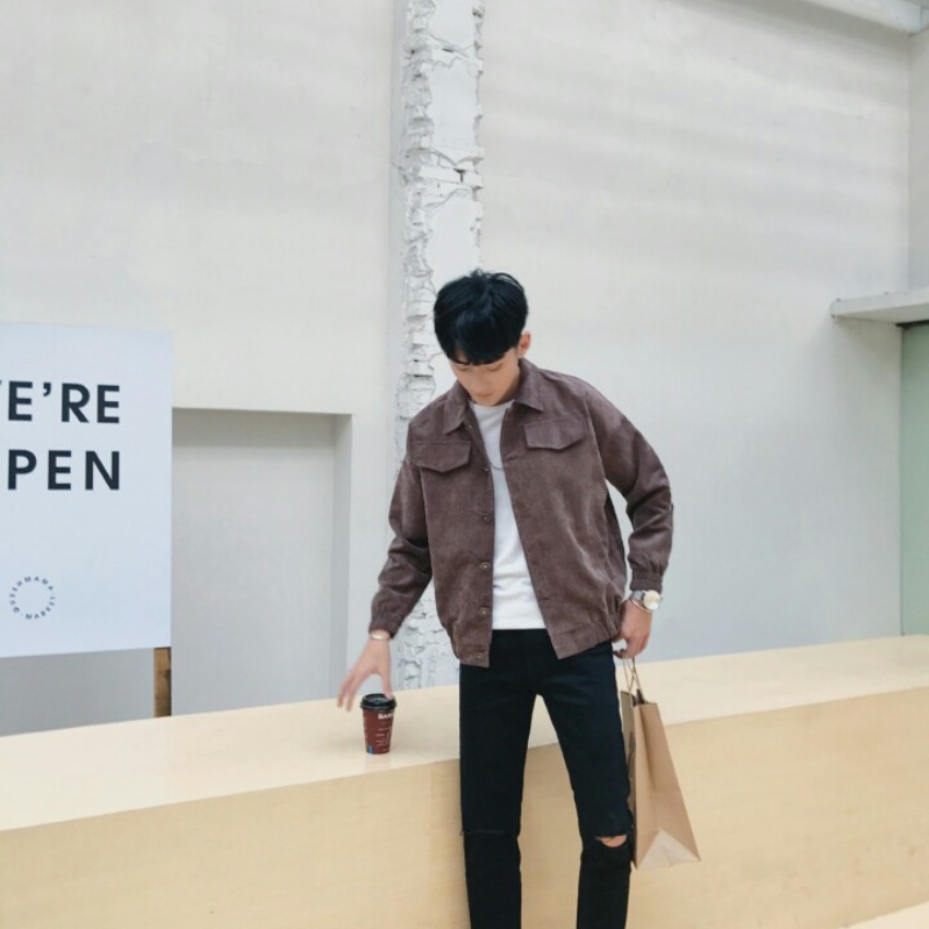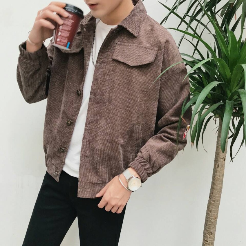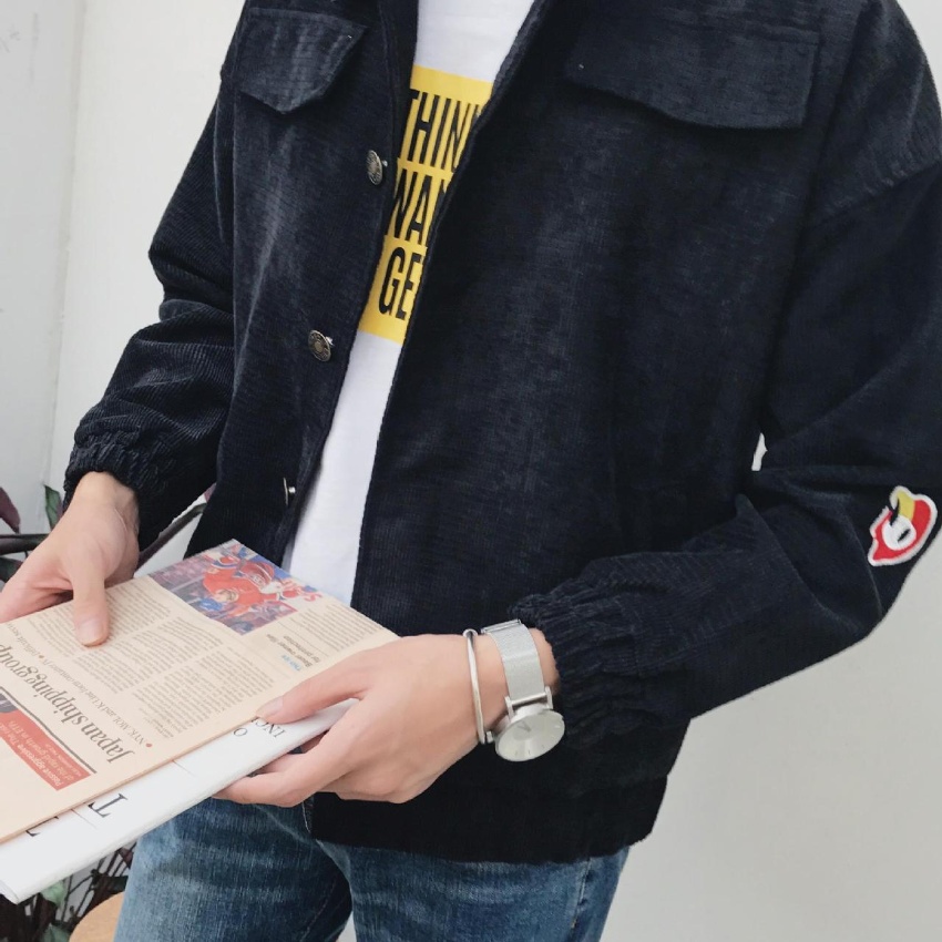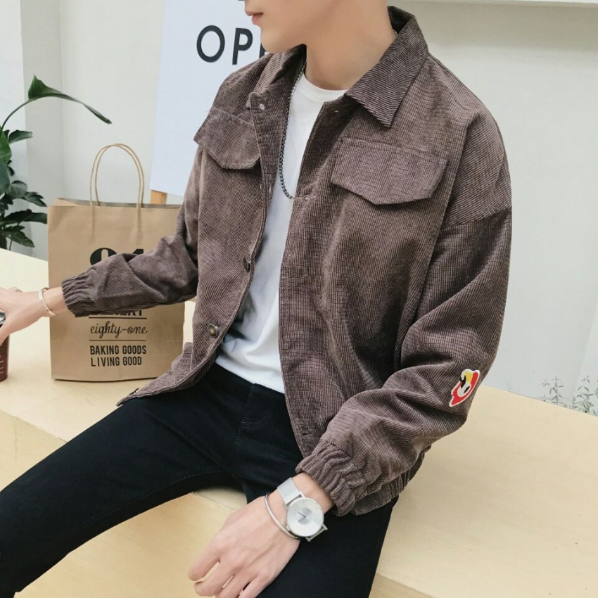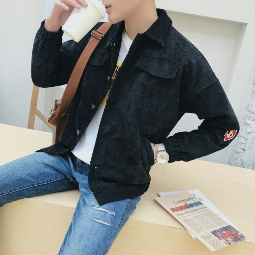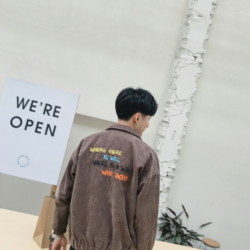 秋装新款港风国潮韩版字母款学生男神范灯芯绒夹克