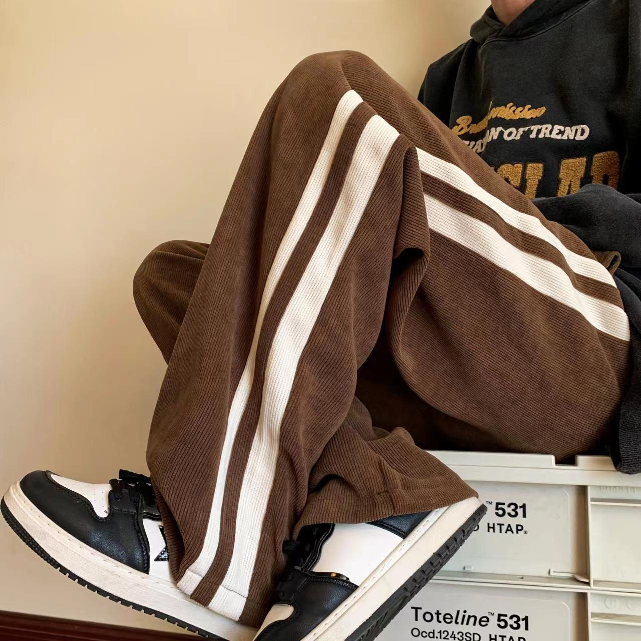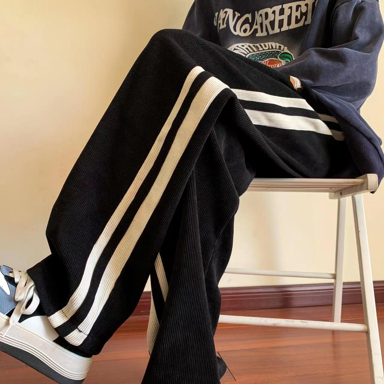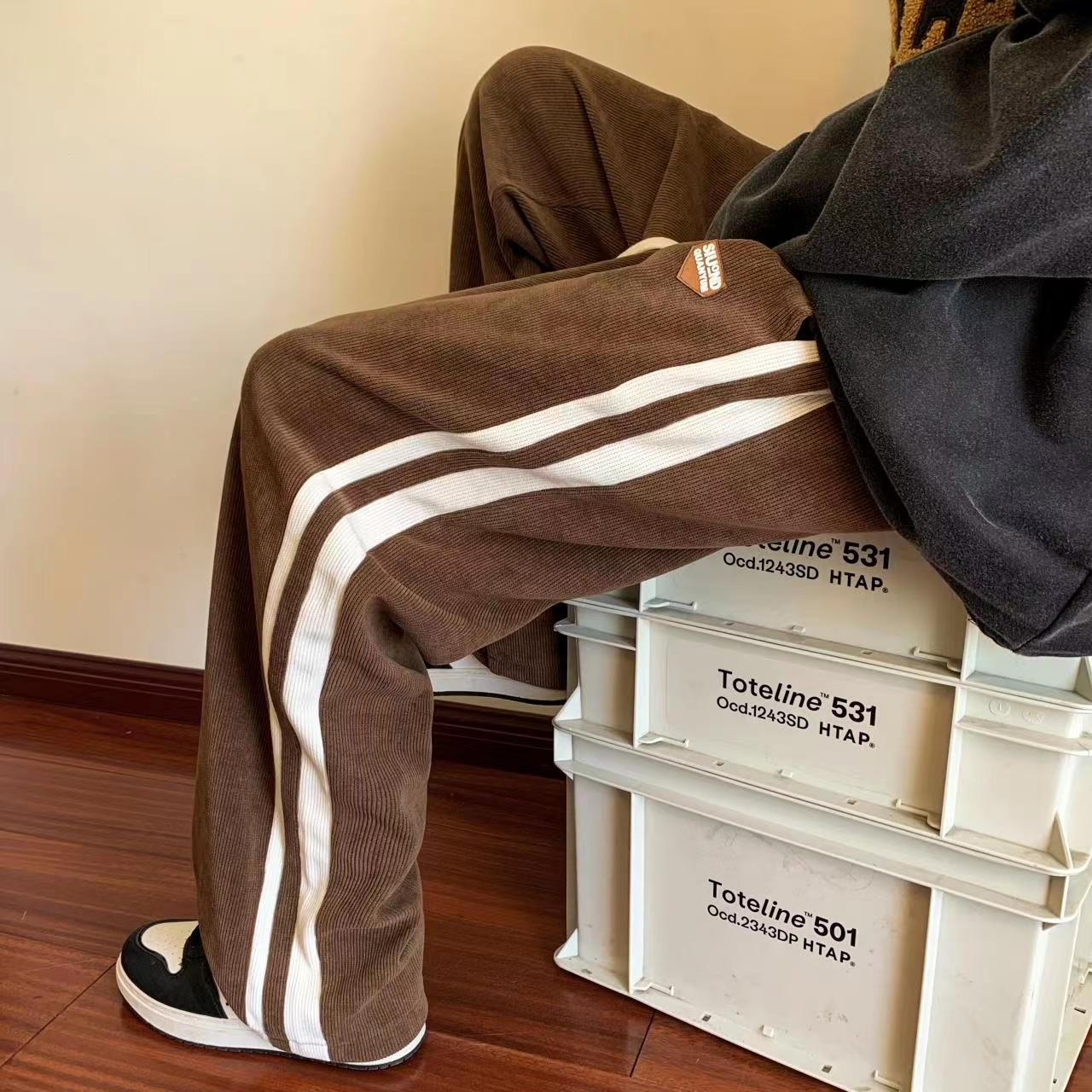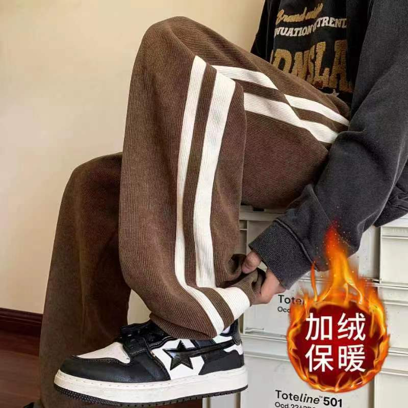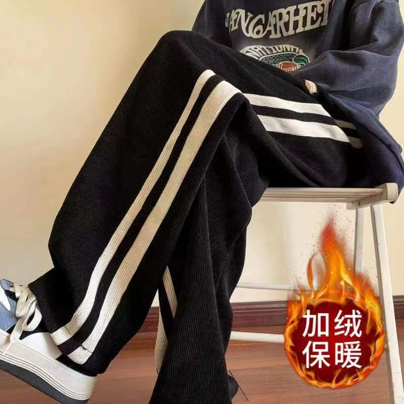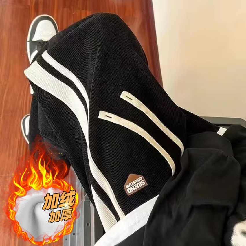灯芯绒裤子男士春秋冬季款加绒阔腿宽松直筒运动卫裤男生休闲长裤